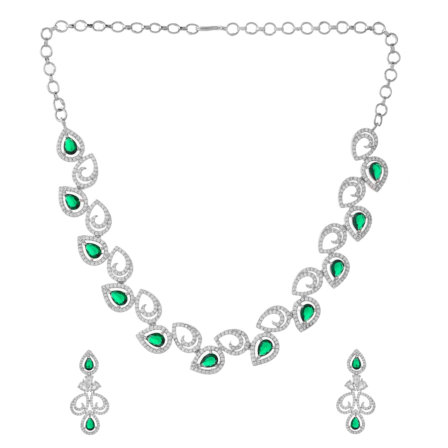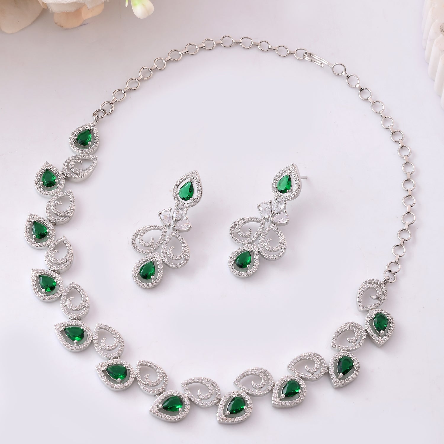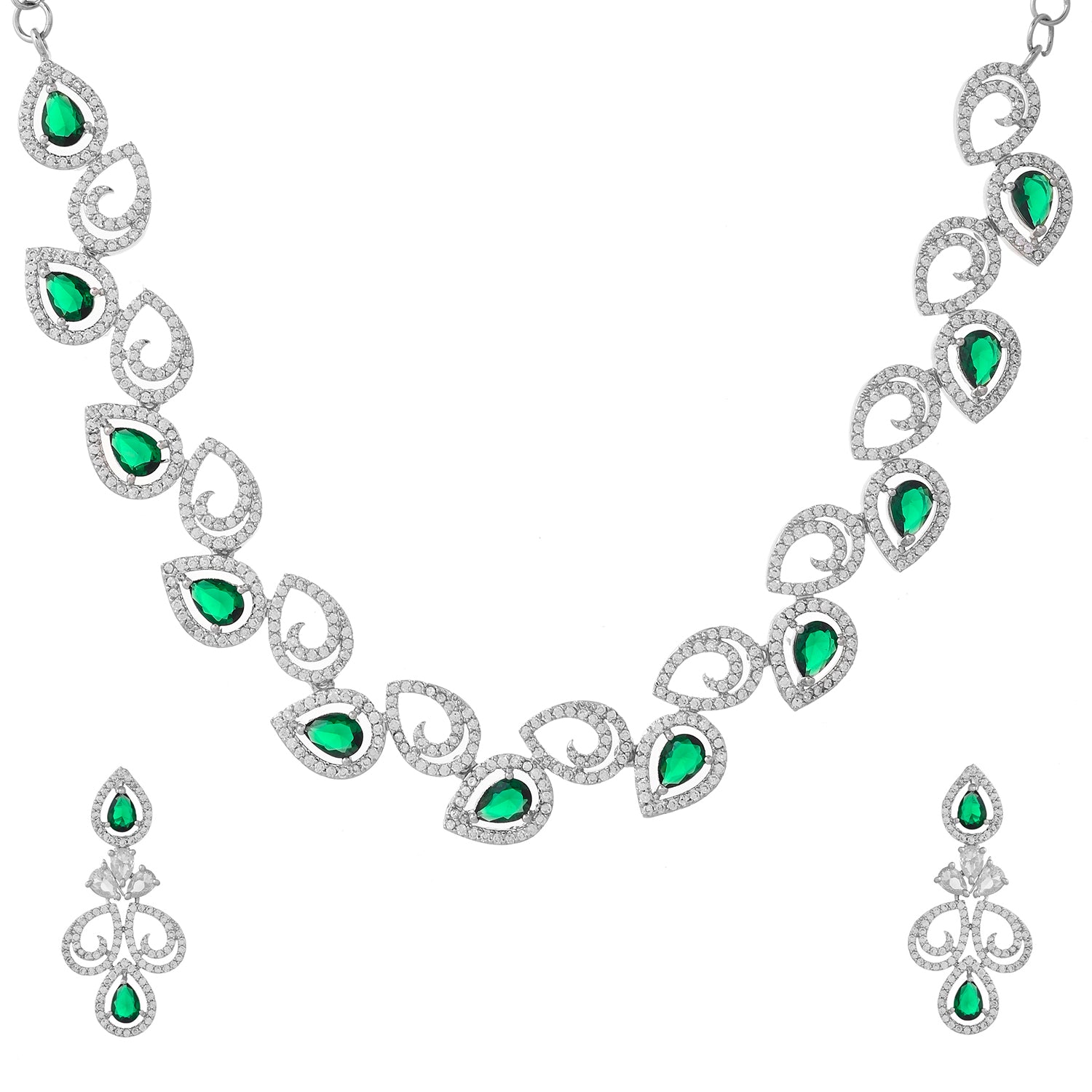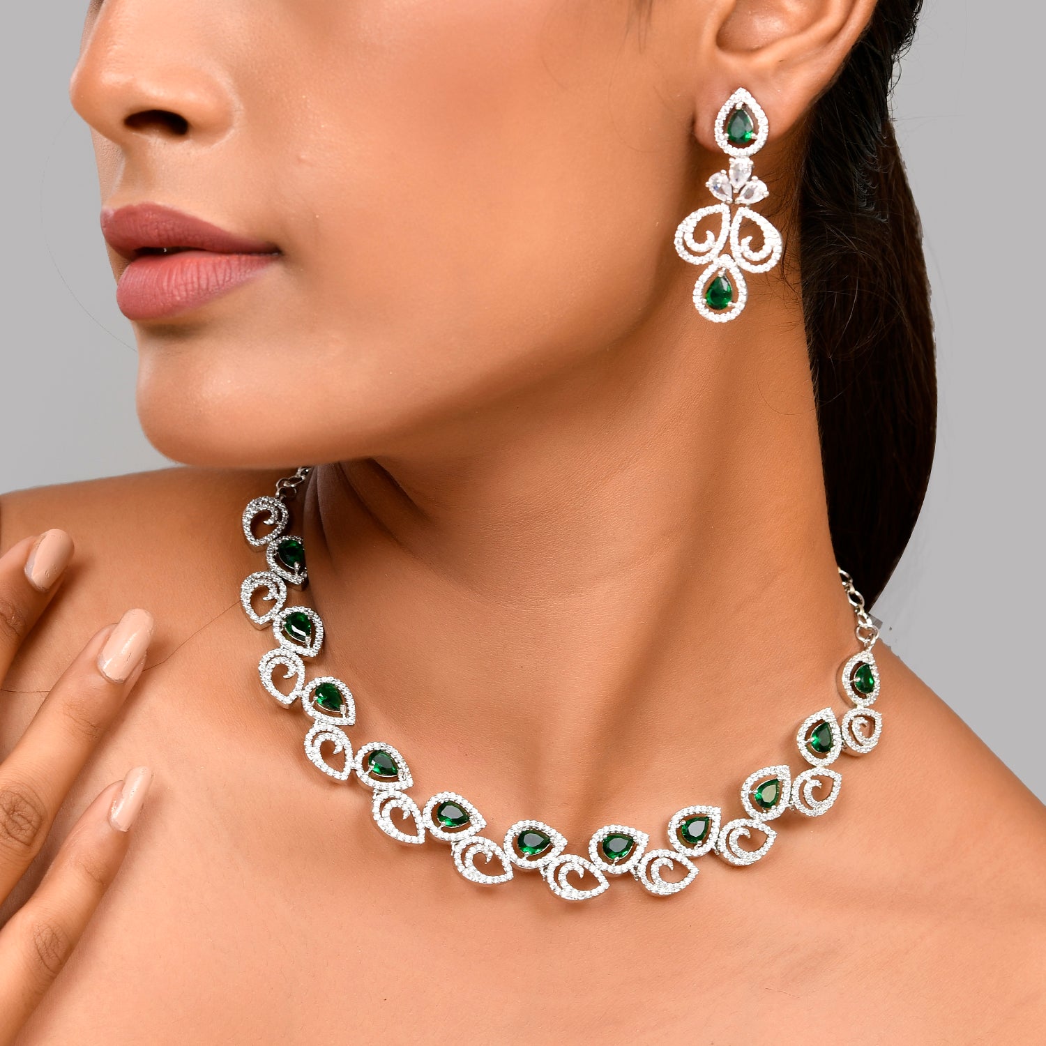 Sparkling Elegance Majestic Green American Diamond Necklace Set