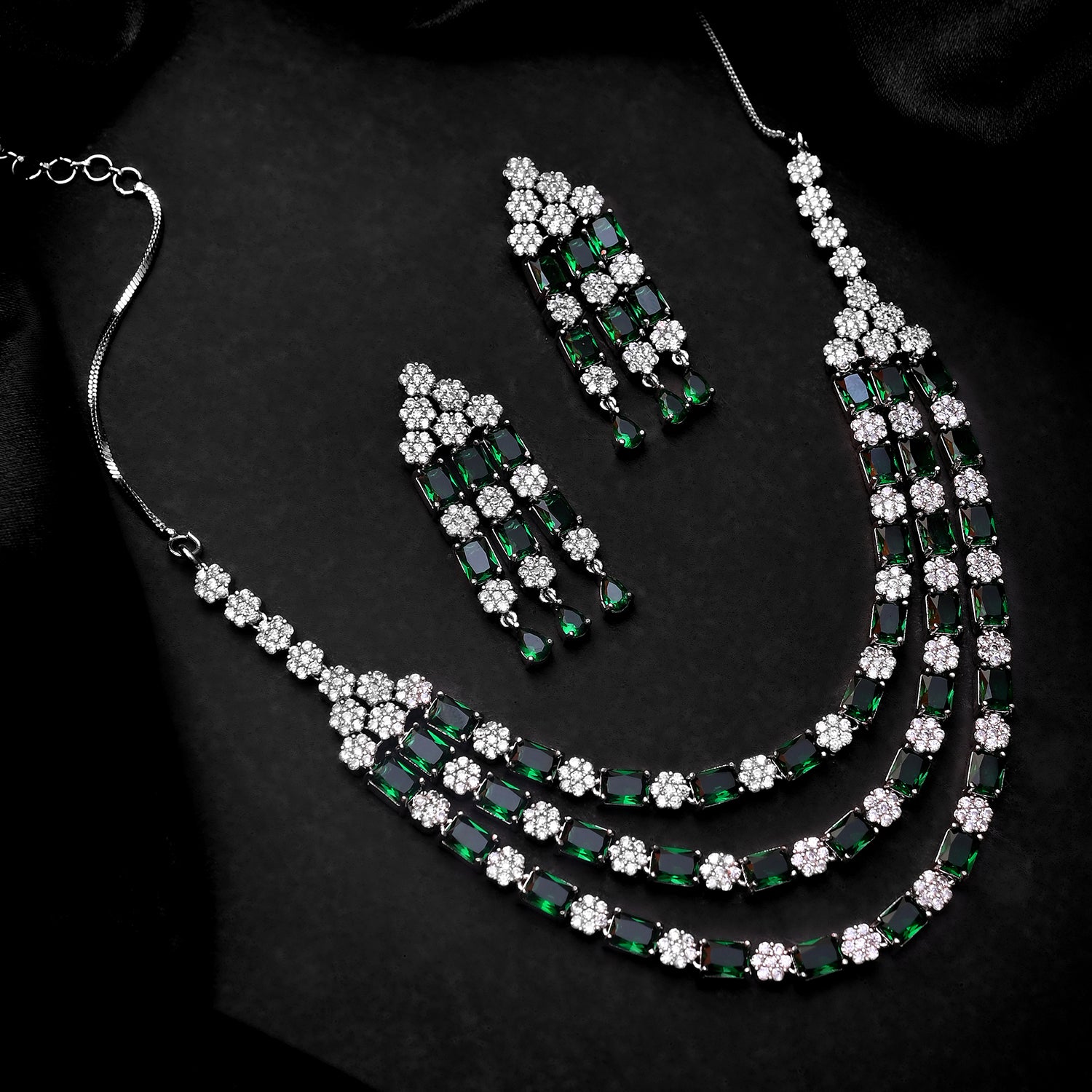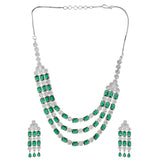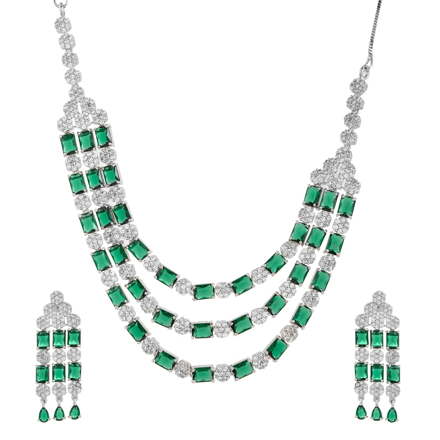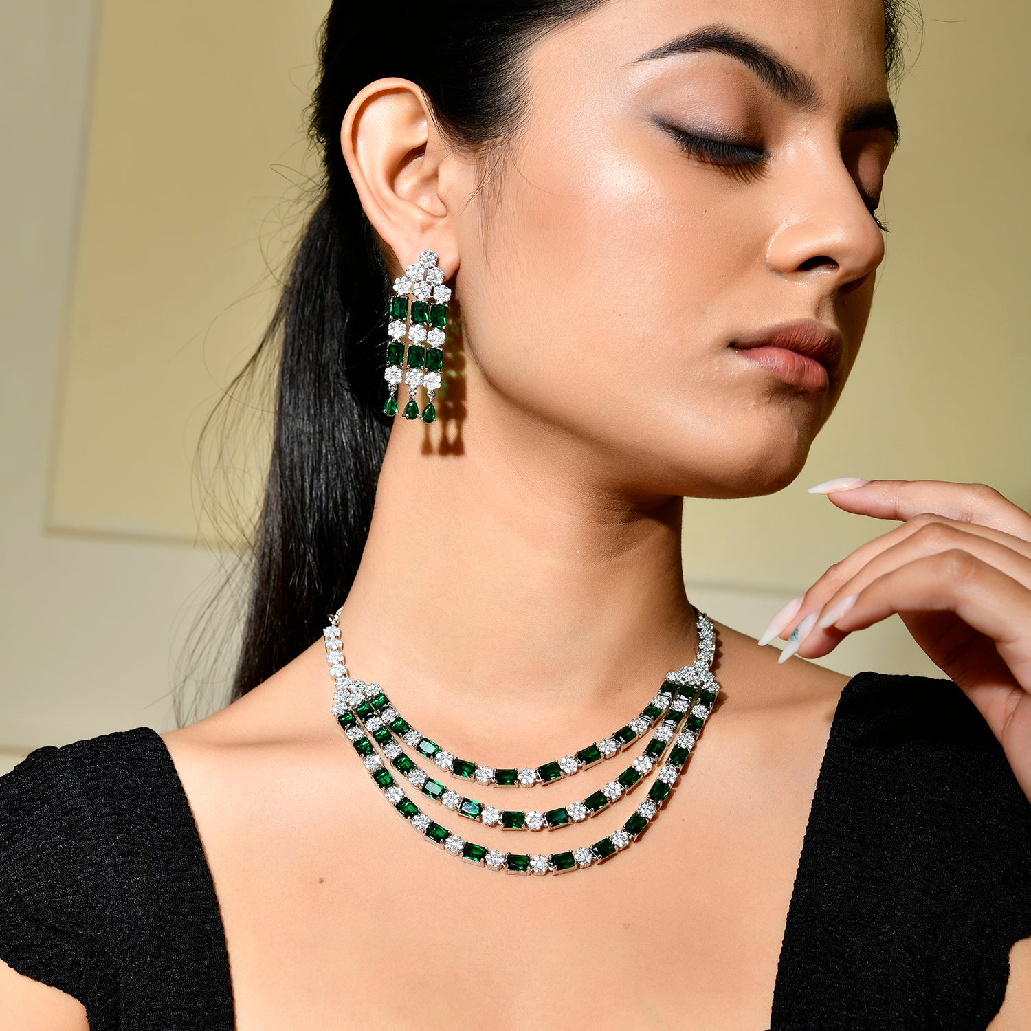 Sparkling Elegance Majestic Layers Green American Diamond Necklace Set