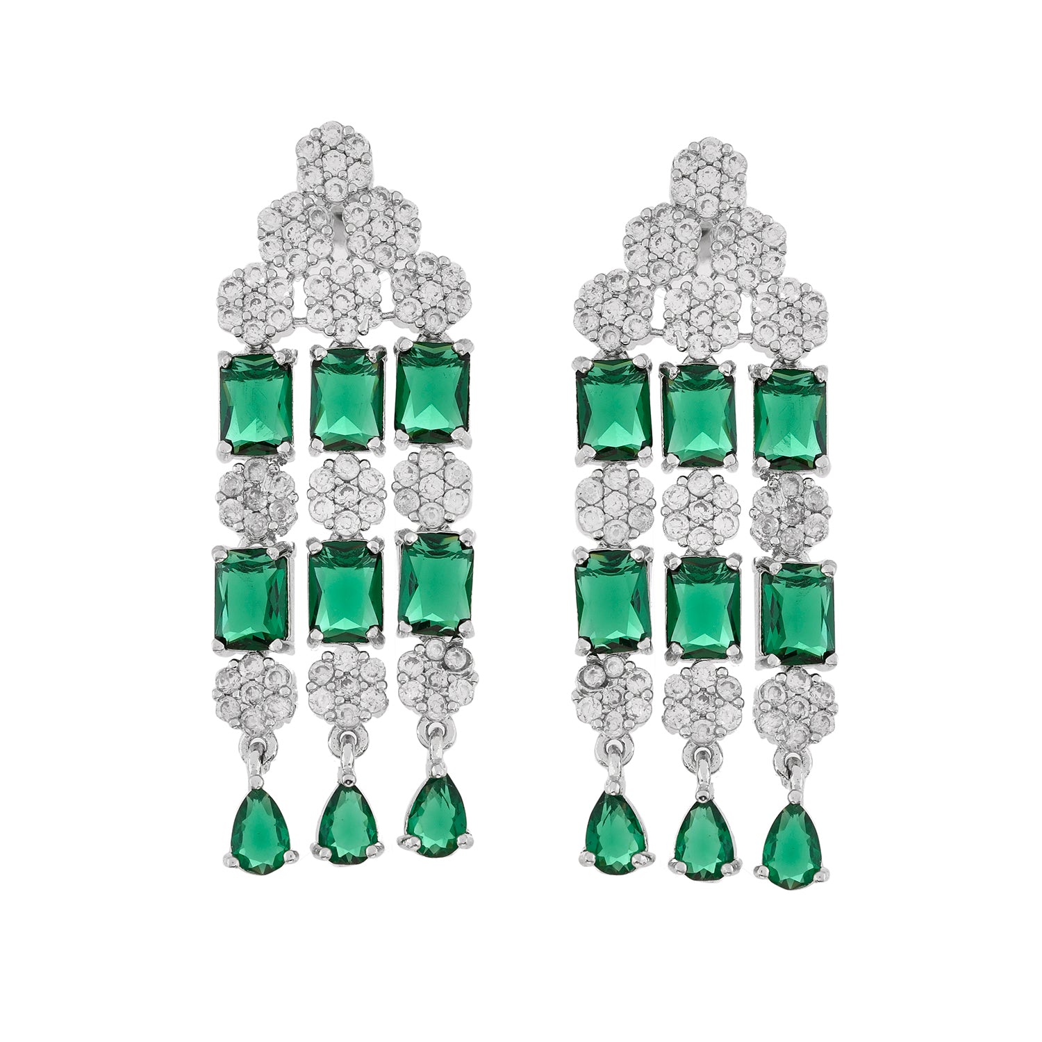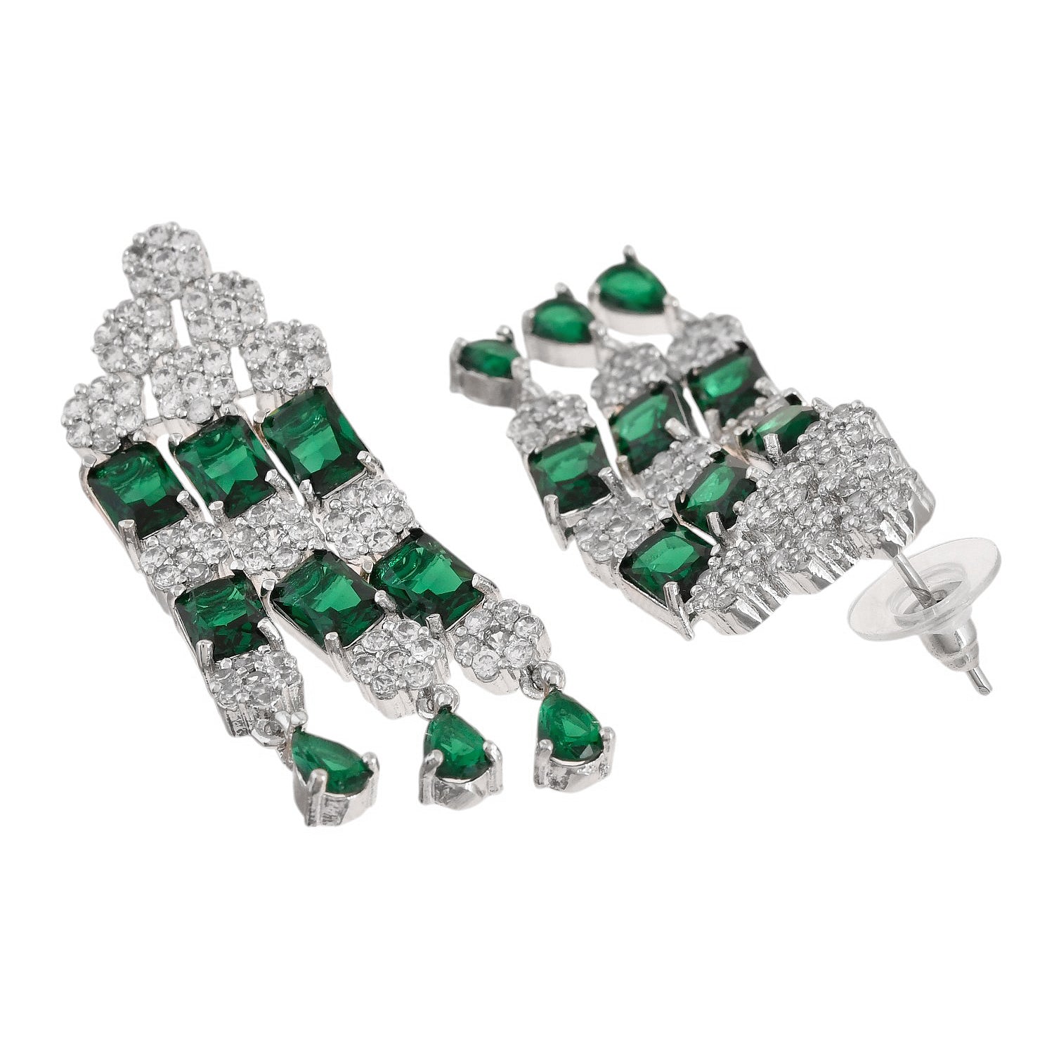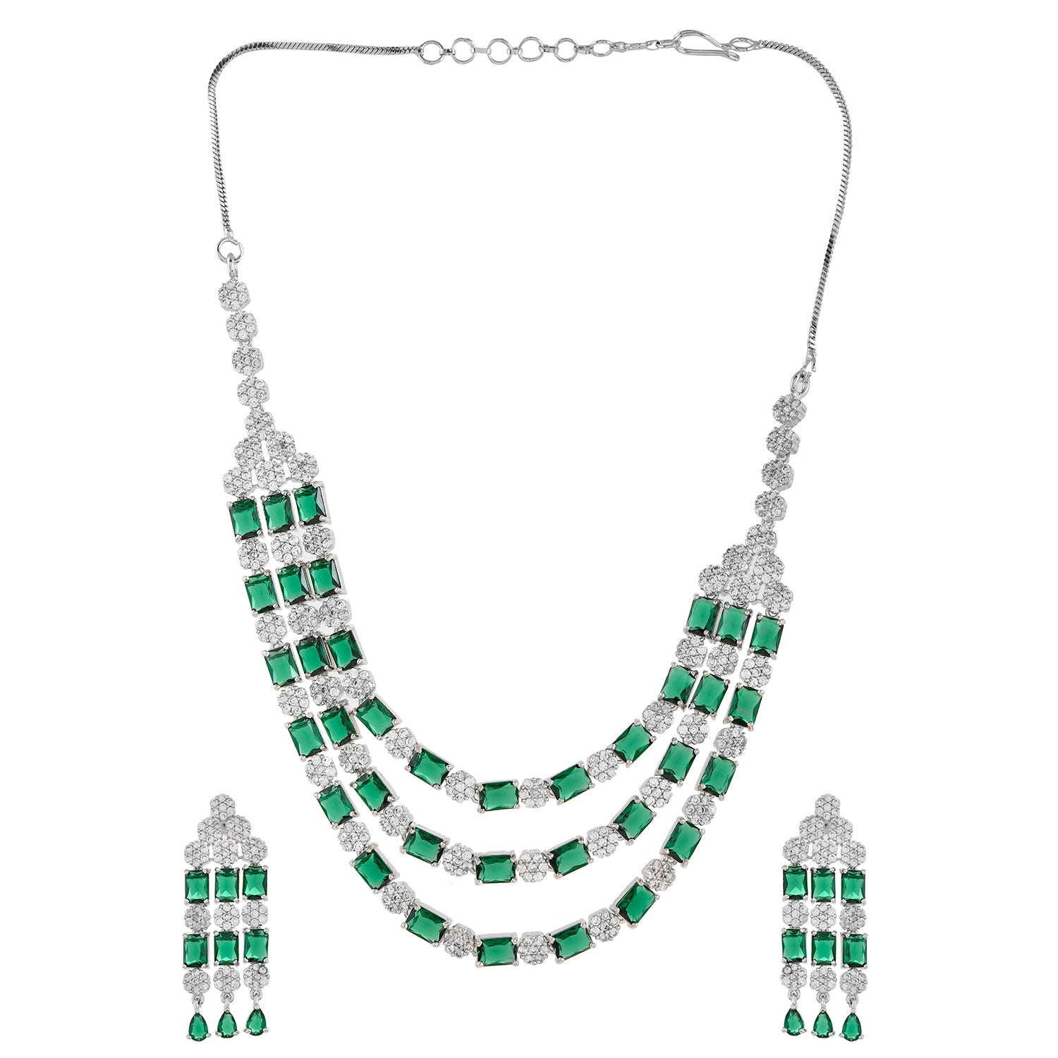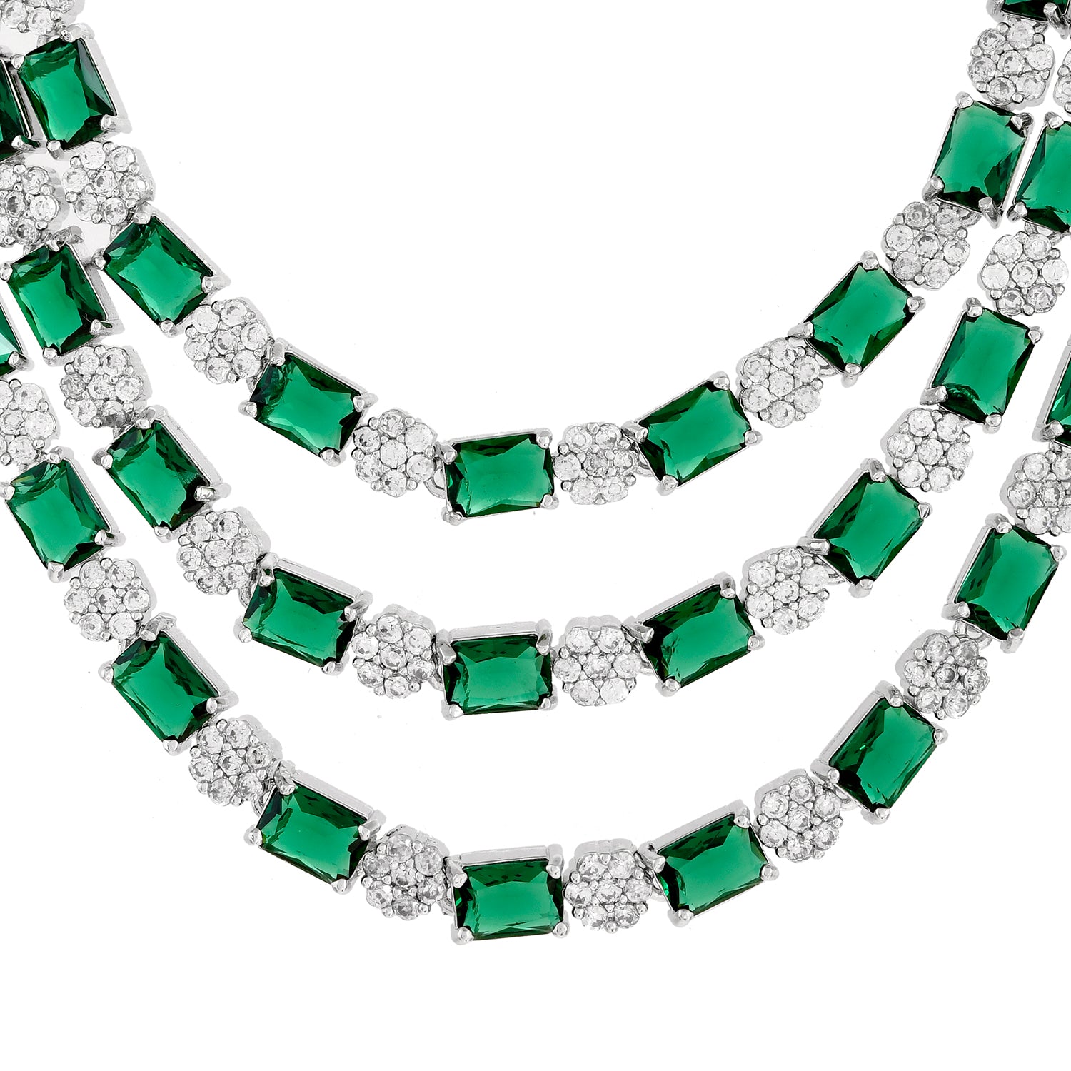 Sparkling Elegance Majestic Layers Green American Diamond Necklace Set