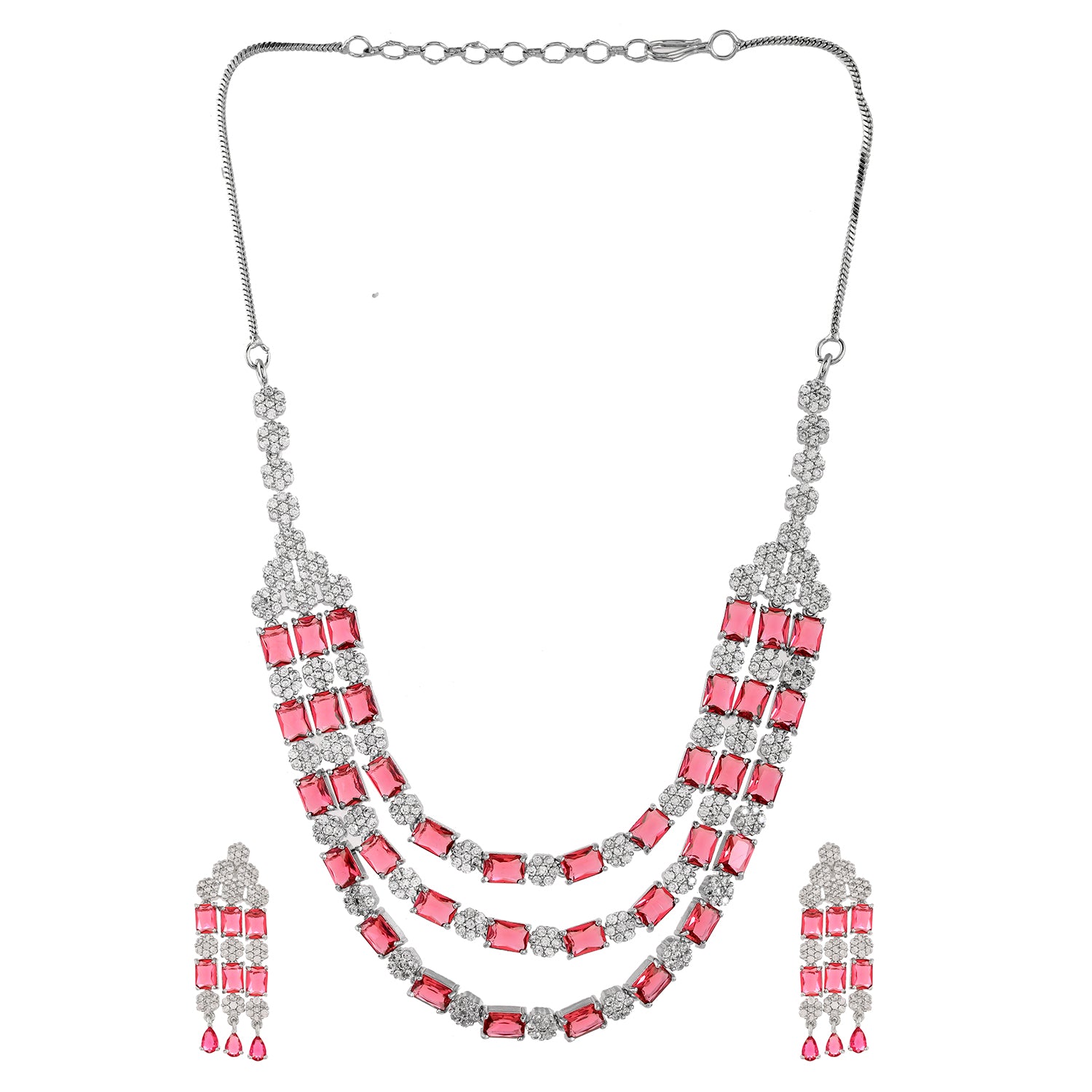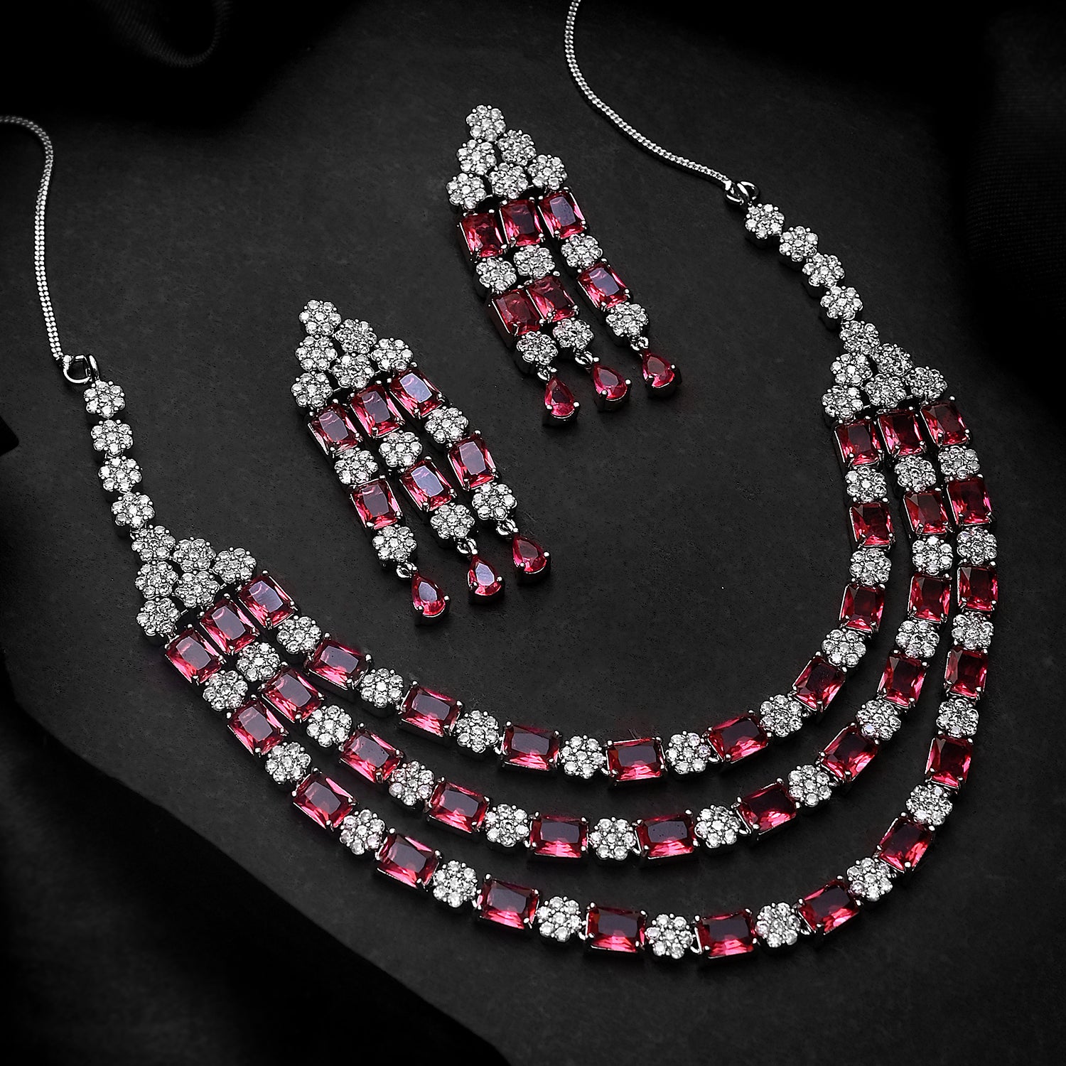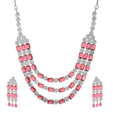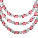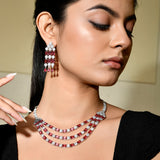 Sparkling Elegance Majestic Layers Red American Diamond Necklace Set