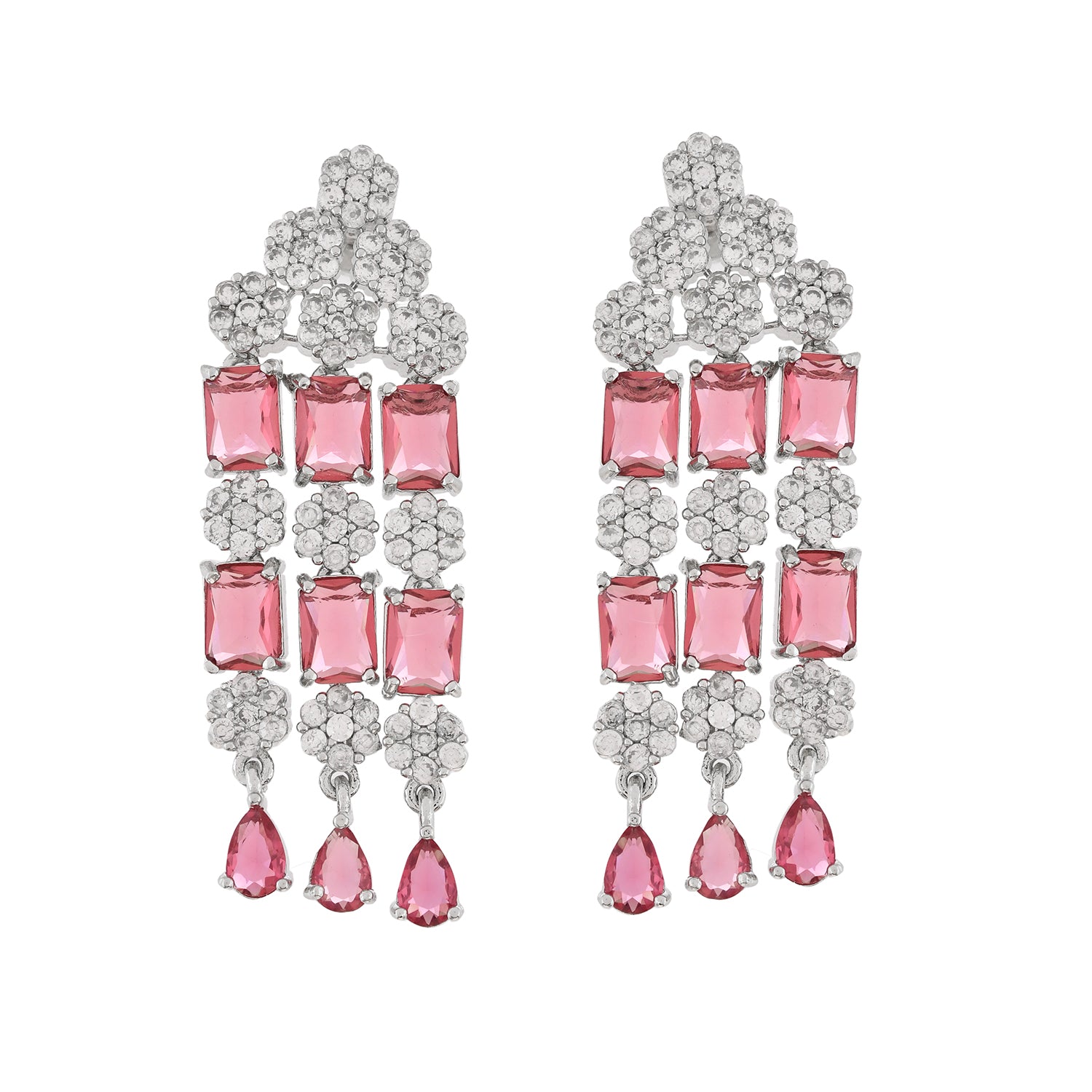 Elevate your elegance with the Voylla Layered Necklace Set, a stunning piece crafted from high-quality brass and adorned with a lustrous white rhodium plating. This exquisite set features a beautifully designed necklace and matching earrings, perfect for adding a touch of sophistication to any outfit. The necklace showcases three layers of sparkling American diamonds, interspersed with vibrant red gemstones, creating a captivating contrast that is sure to turn heads. The intricate floral motifs and delicate craftsmanship make this set an ideal choice for festive occasions, weddings, and parties. Whether you're looking for a thoughtful gift for a loved one or a statement piece for yourself, this necklace set is perfect for Valentine's Day, Diwali, Raksha Bandhan, Christmas, New Year, or any special celebration. Surprise your sister, girlfriend, wife, mother, or any special woman in your life with this timeless piece that exudes grace and charm.