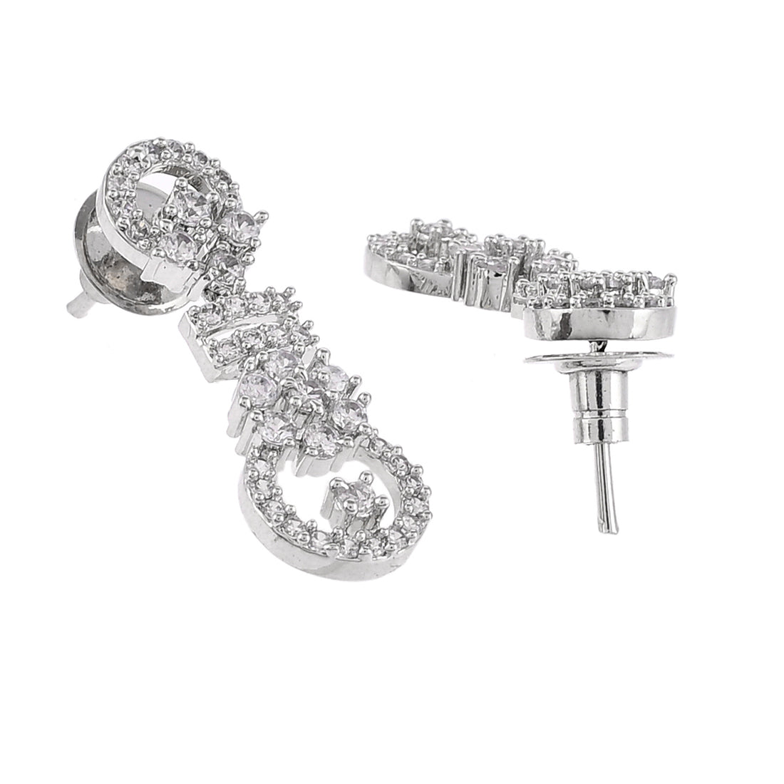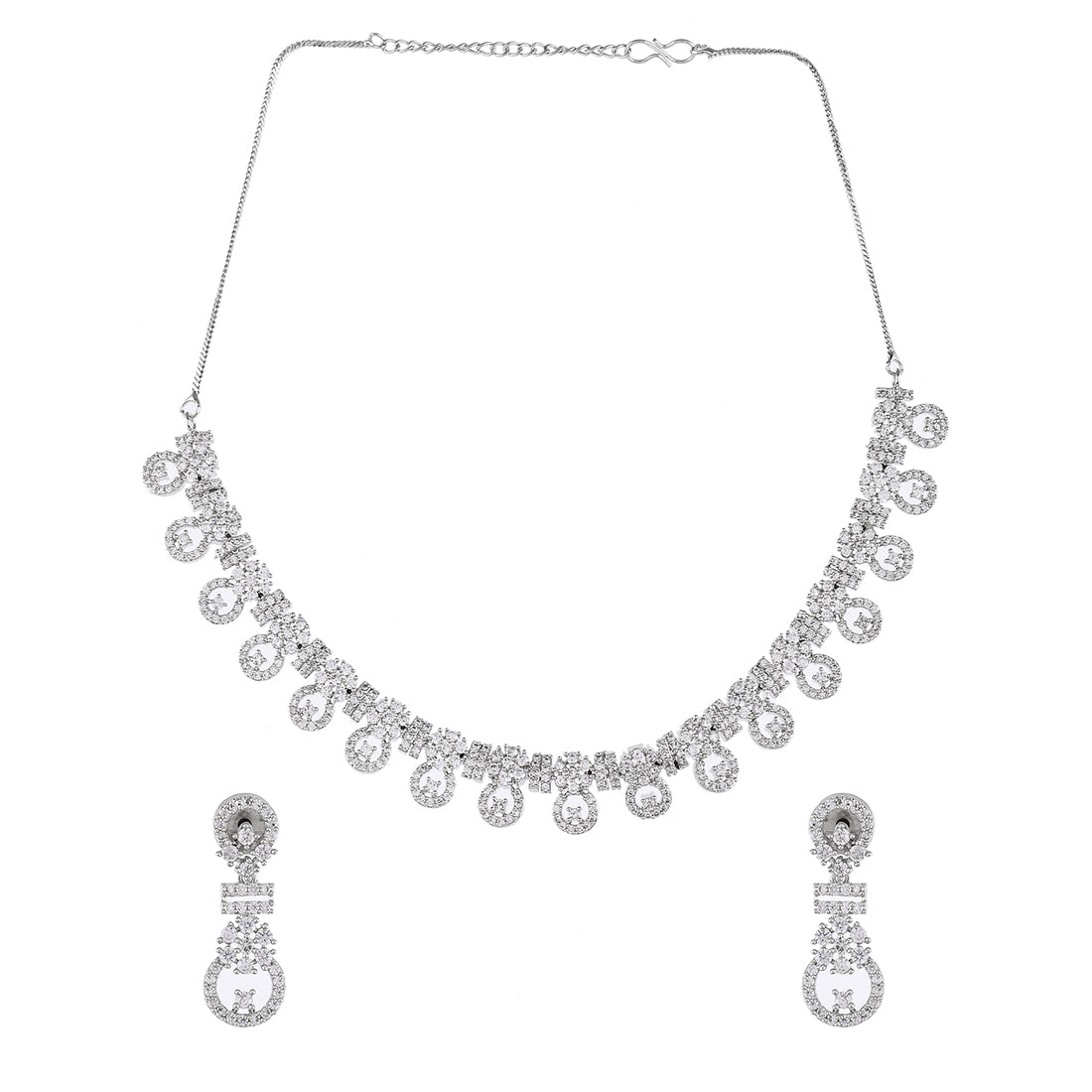 Brass jewellery set with zirconia gemstones, fashioned into a minimalist design. Silver plating adds to the charm of this versatile set.