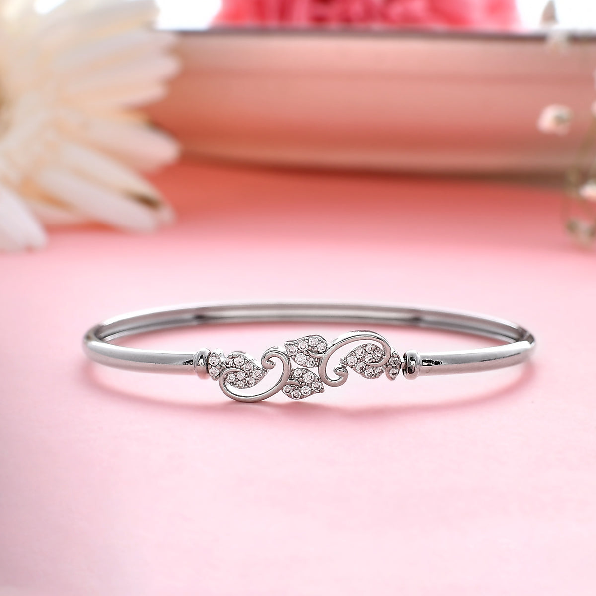 An elegant brass bracelet with lovely silver plating. Adorned with cubic zirconia gemstones, the adjustable bracelet is versatile and promises to be a comfortable wear at all times.