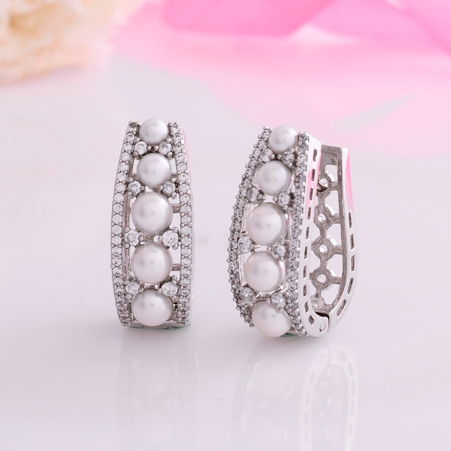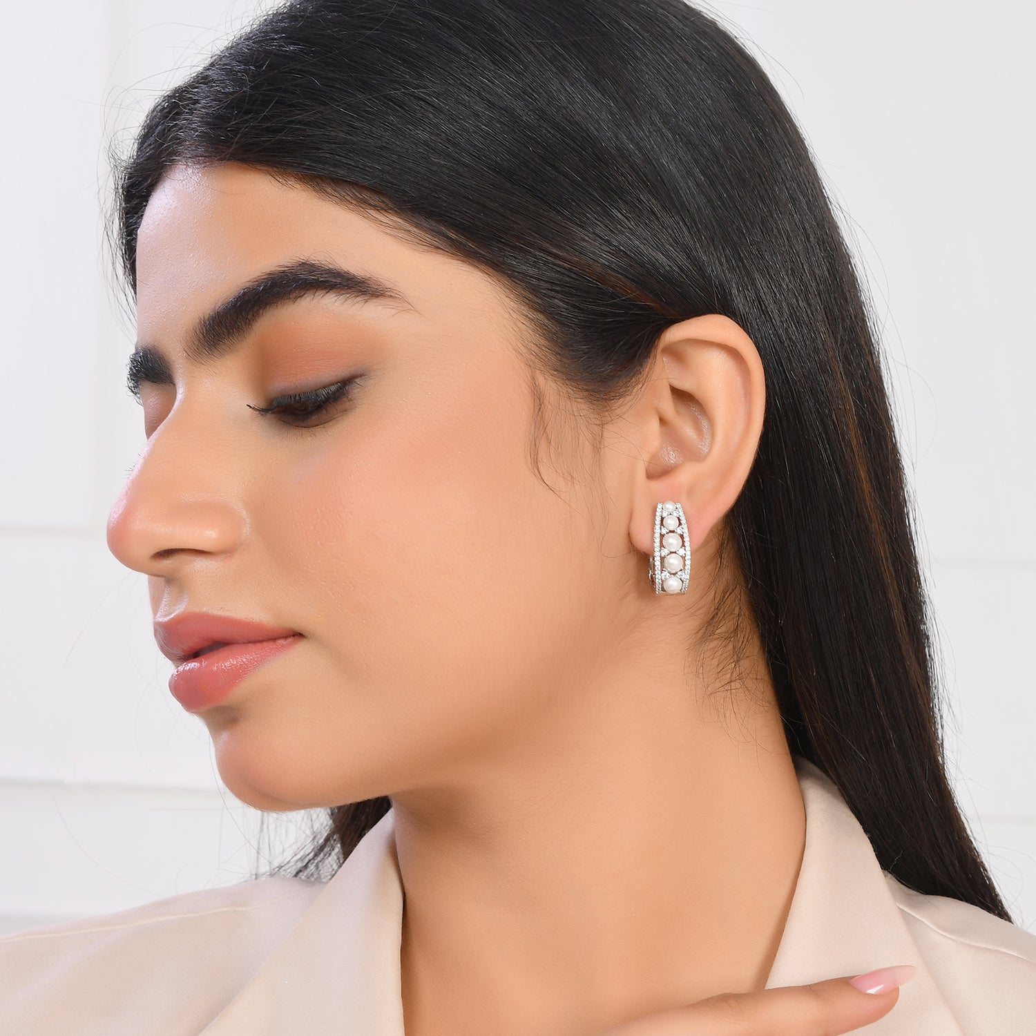 These hoops are beautifully crafted from high-quality brass, ensuring durability and a lasting shine. Adorned with a series of lustrous pearls, these earrings exude a classic charm while the interspersed sparkling accents add a contemporary twist. Ideal for both casual and formal occasions.