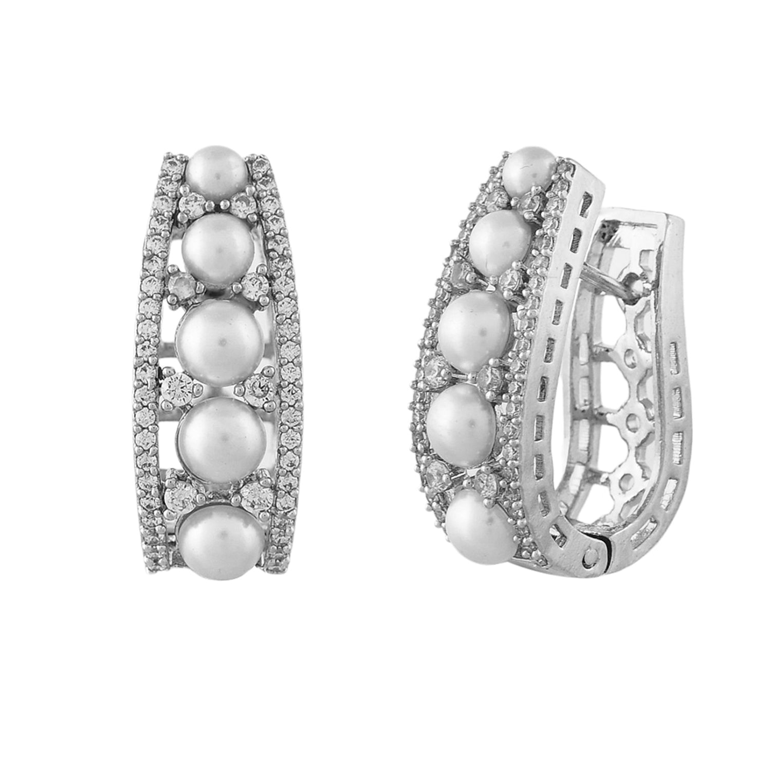 Sparkling Elegance Pearl Accents Classic Gold Hoop Stud Earrings