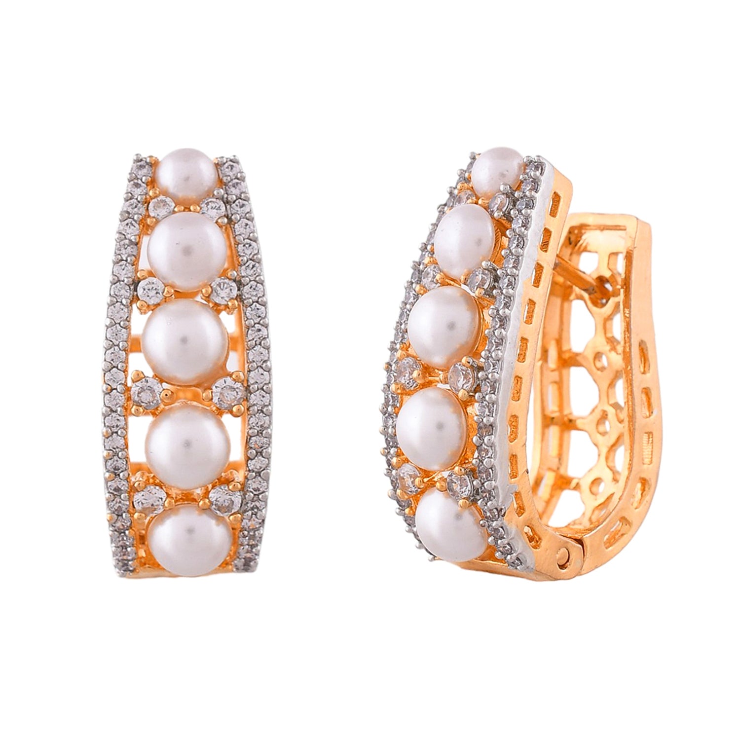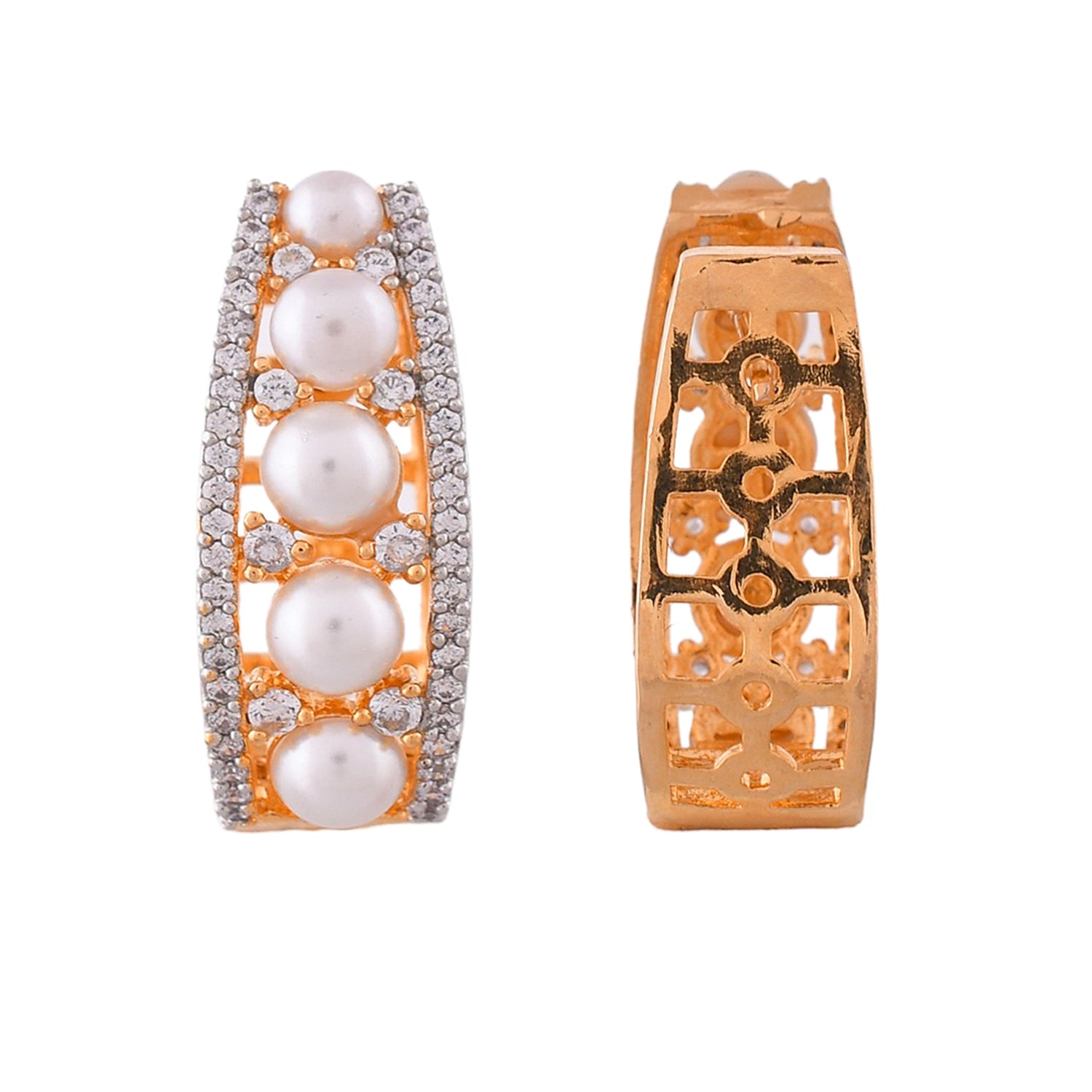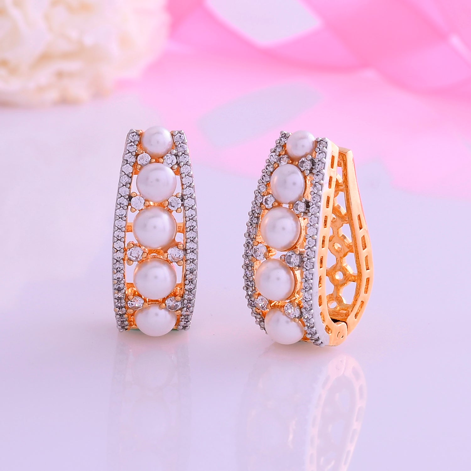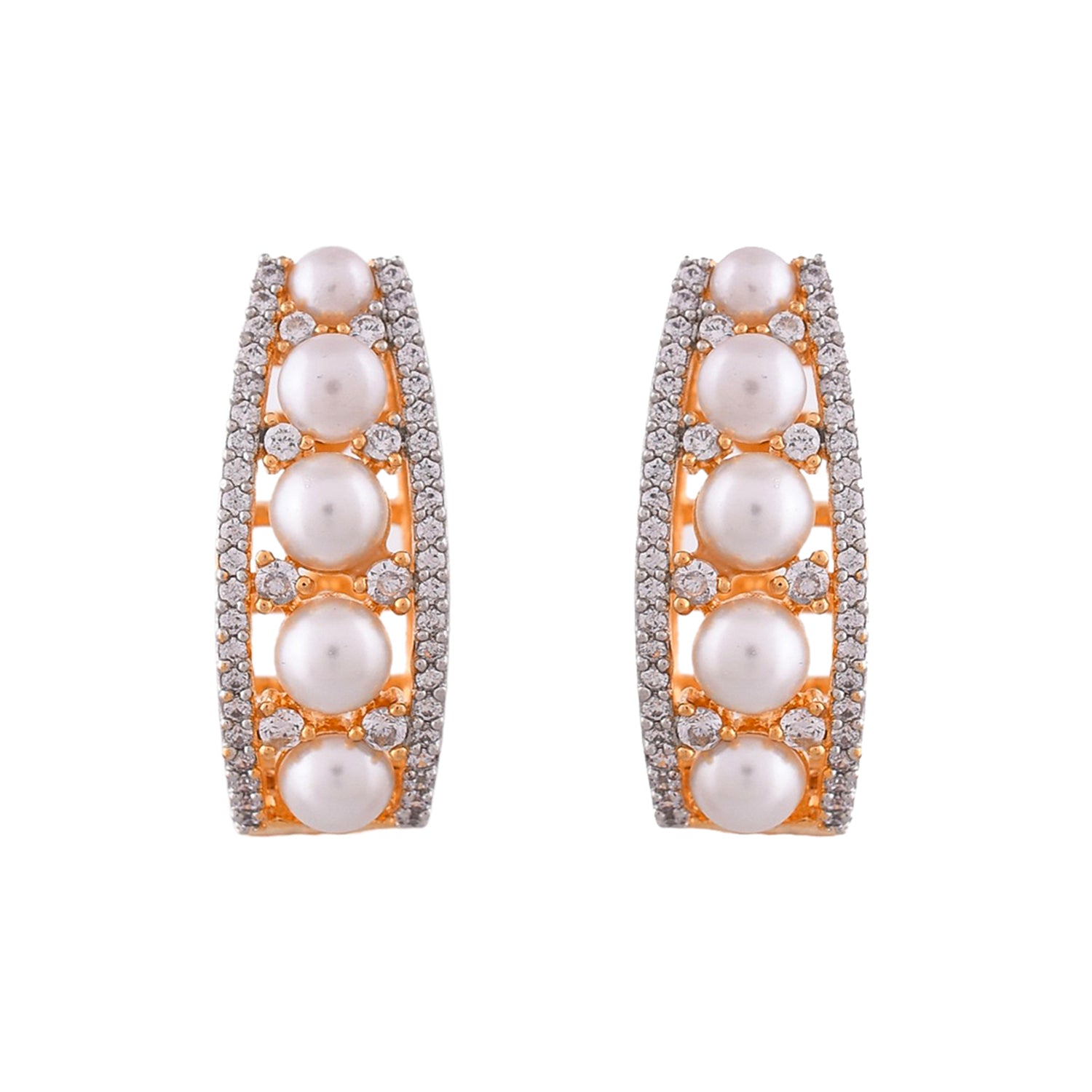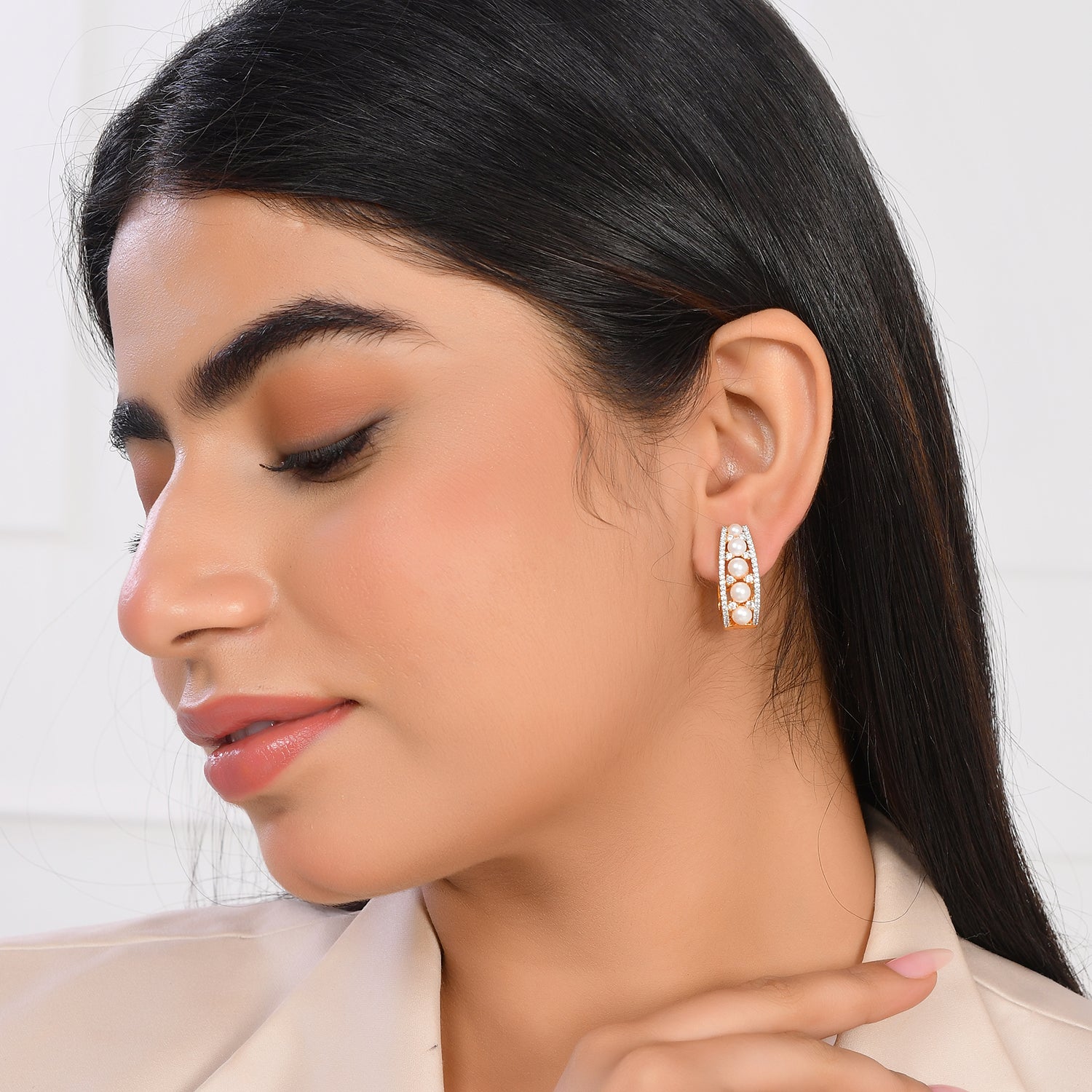 These hoops are beautifully crafted from high-quality brass, ensuring durability and a lasting shine. Adorned with a series of lustrous pearls, these earrings exude a classic charm while the interspersed sparkling accents add a contemporary twist. Ideal for both casual and formal occasions.