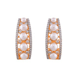 Sparkling Elegance Pearl Accents Classic Silver Hoop Stud Earrings