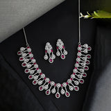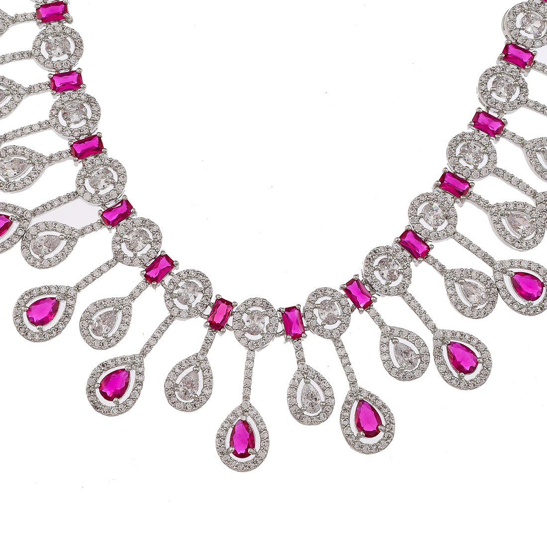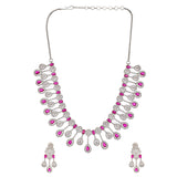 Sparkling Elegance Pink Silver-Plated Necklace Set