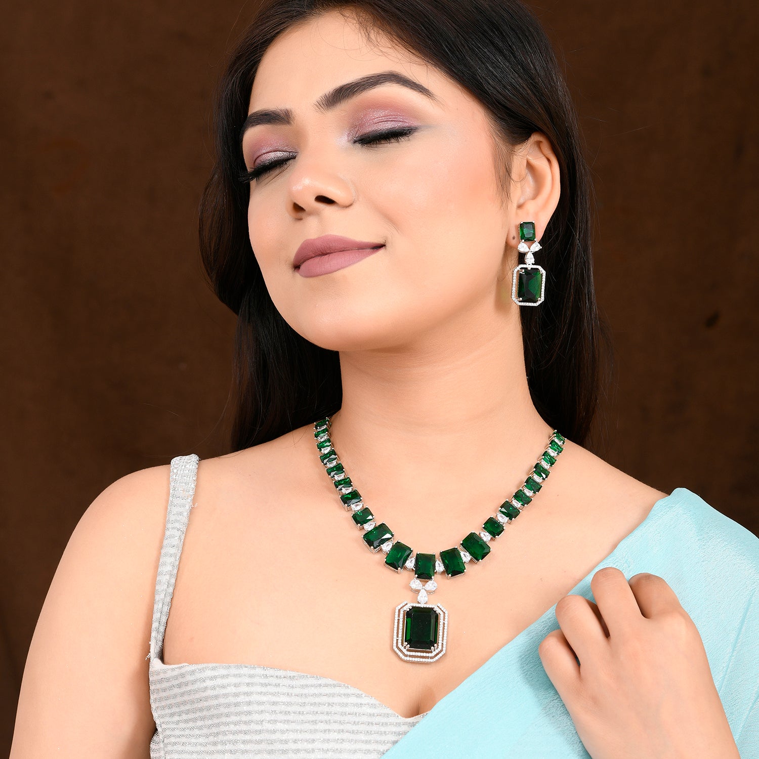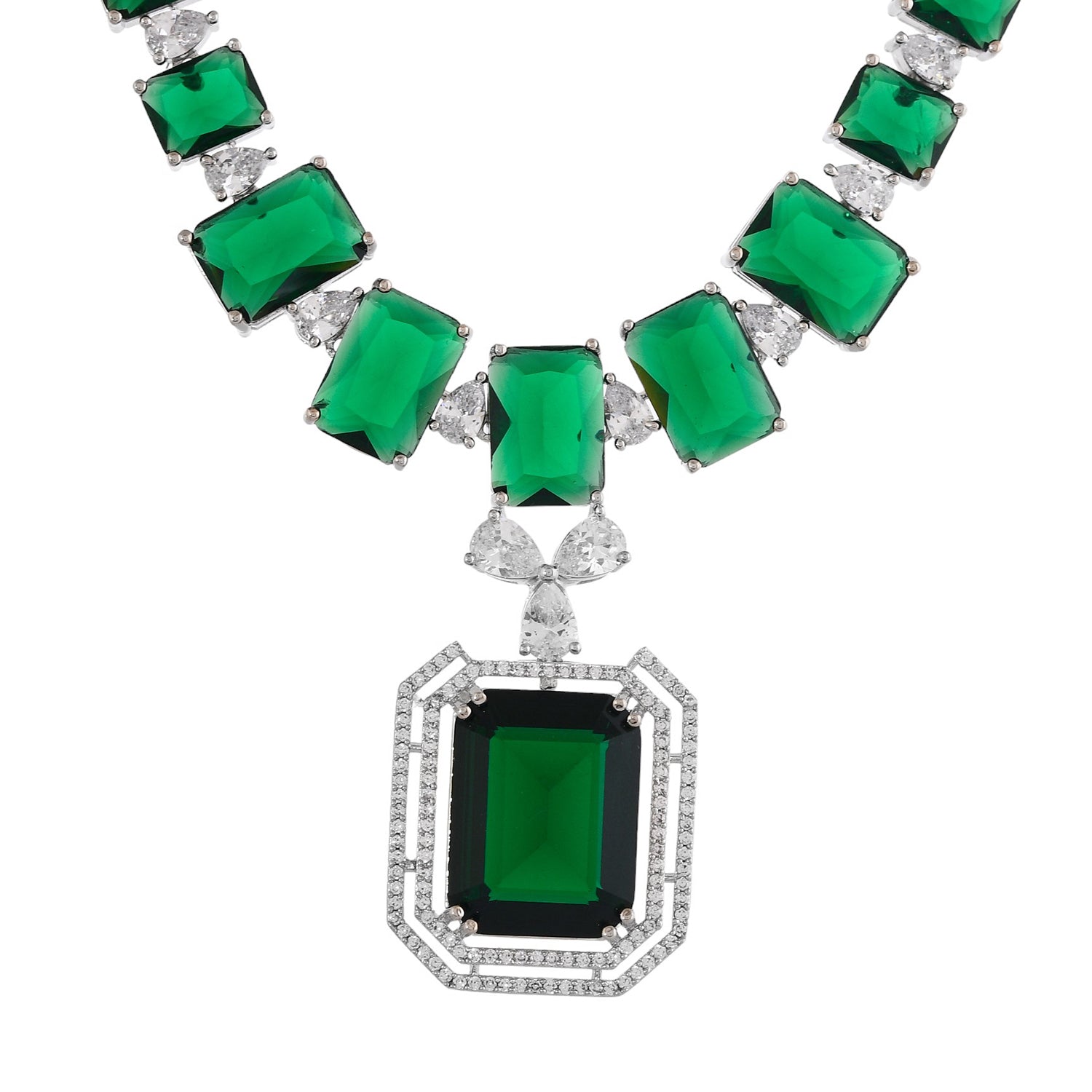 Radiant Emerald Green American Diamond Necklace Set – VOYLLA
