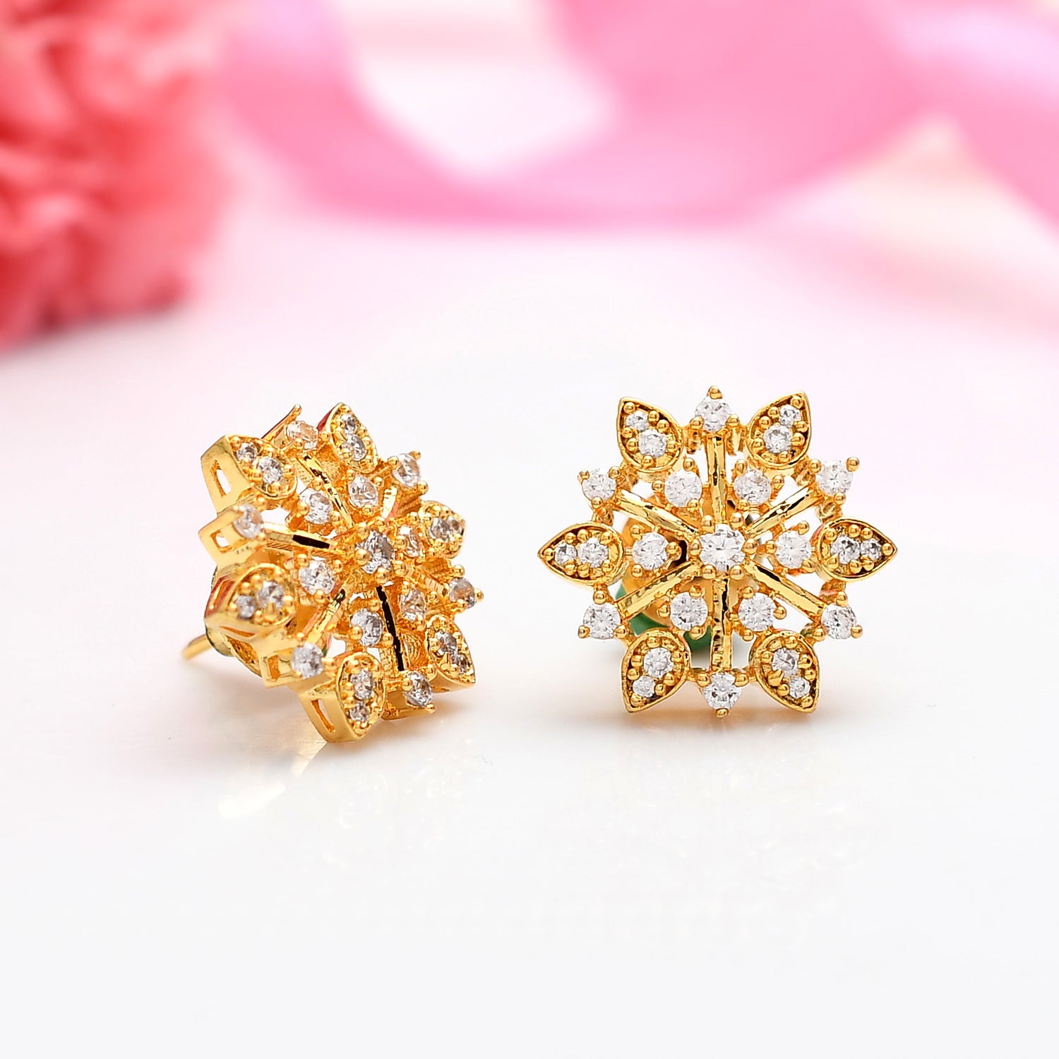 Sparkling Elegance Radiant Floral American Diamond Studs Earrings