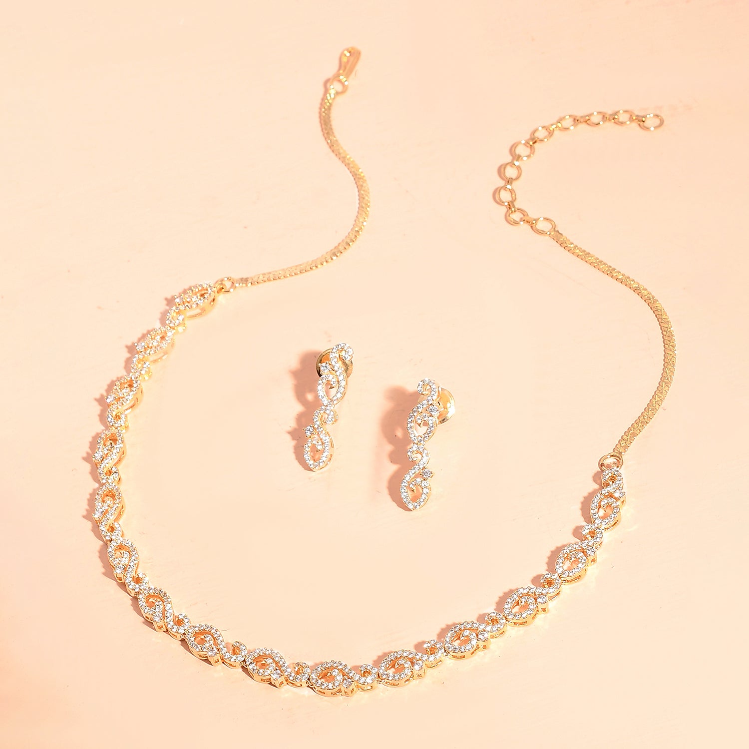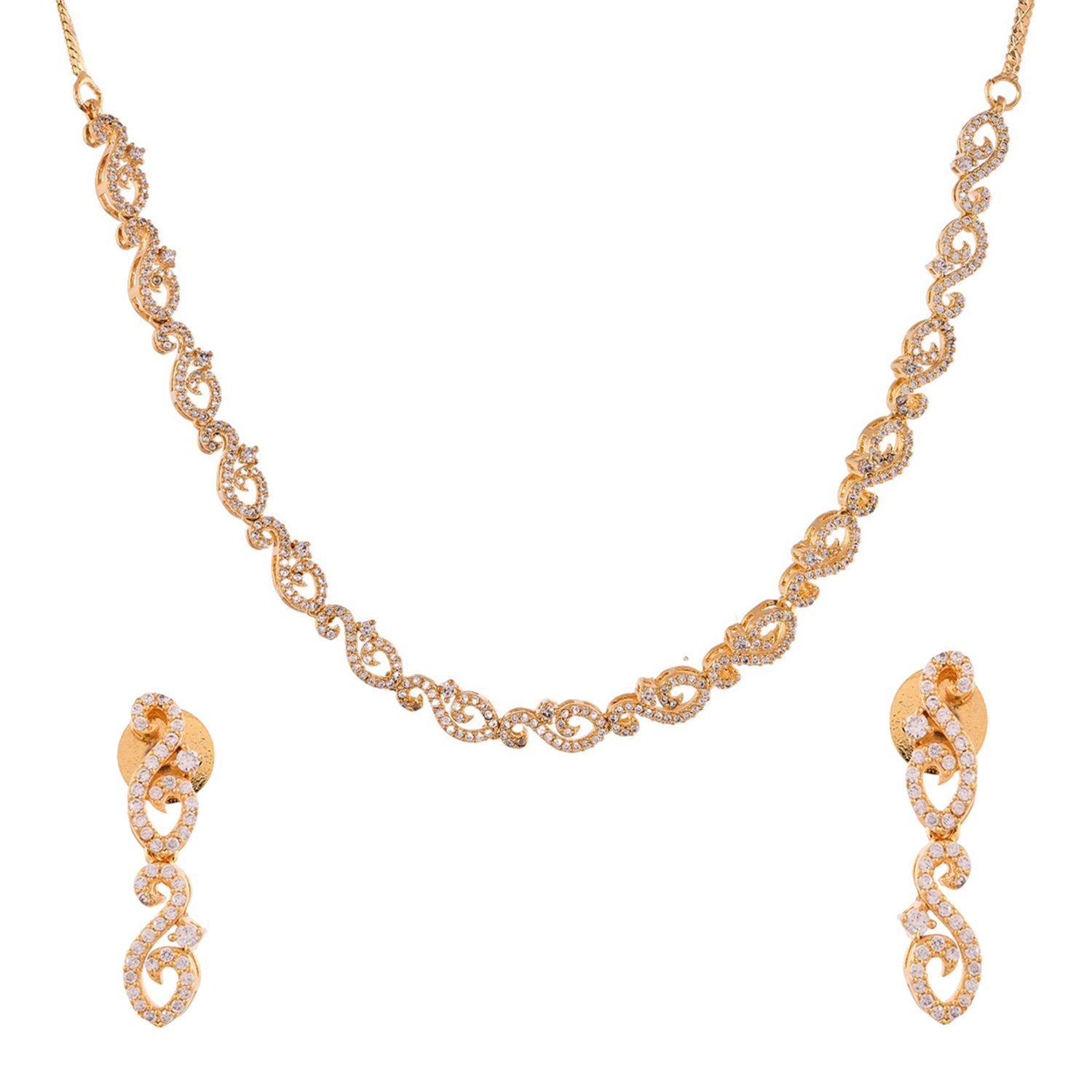 Sparkling Elegance Radiant Gold American Diamond Necklace Set