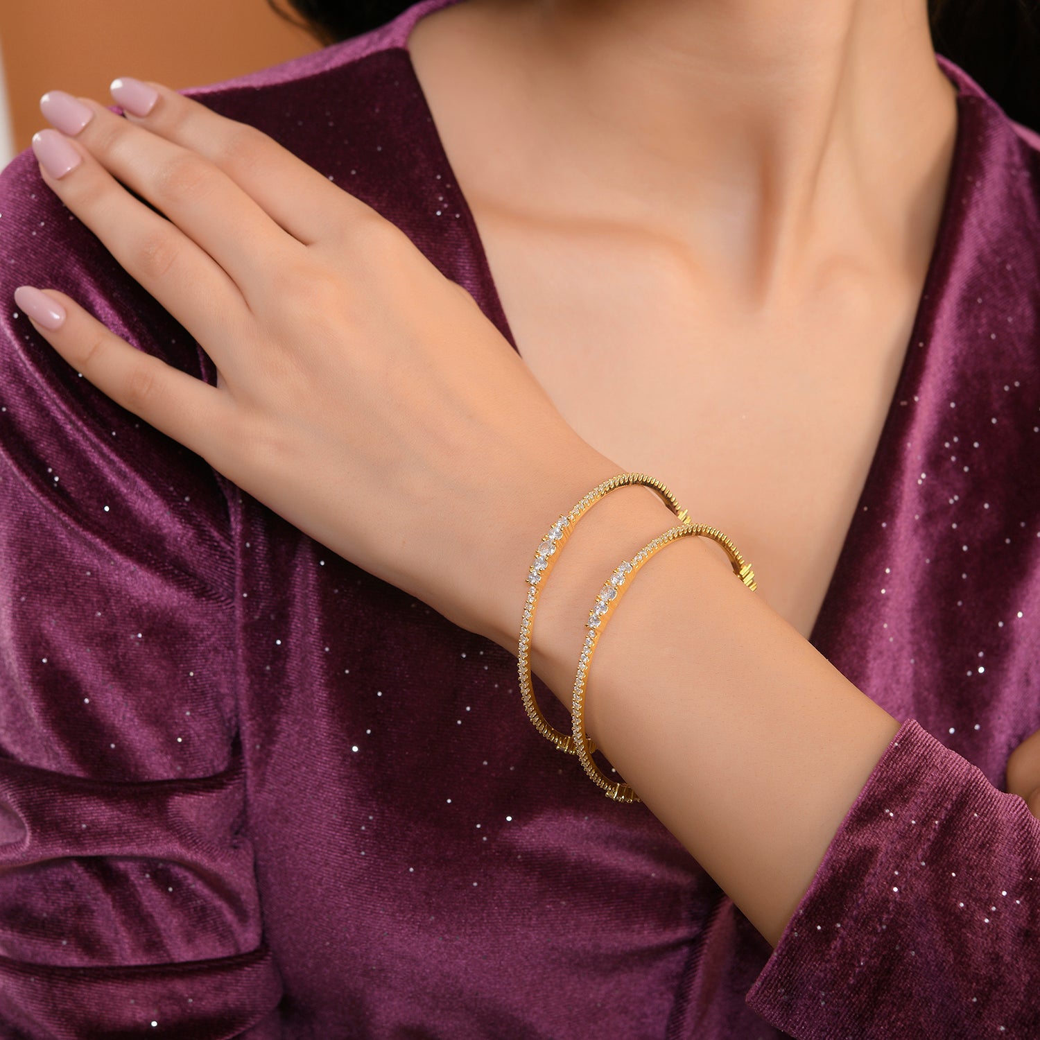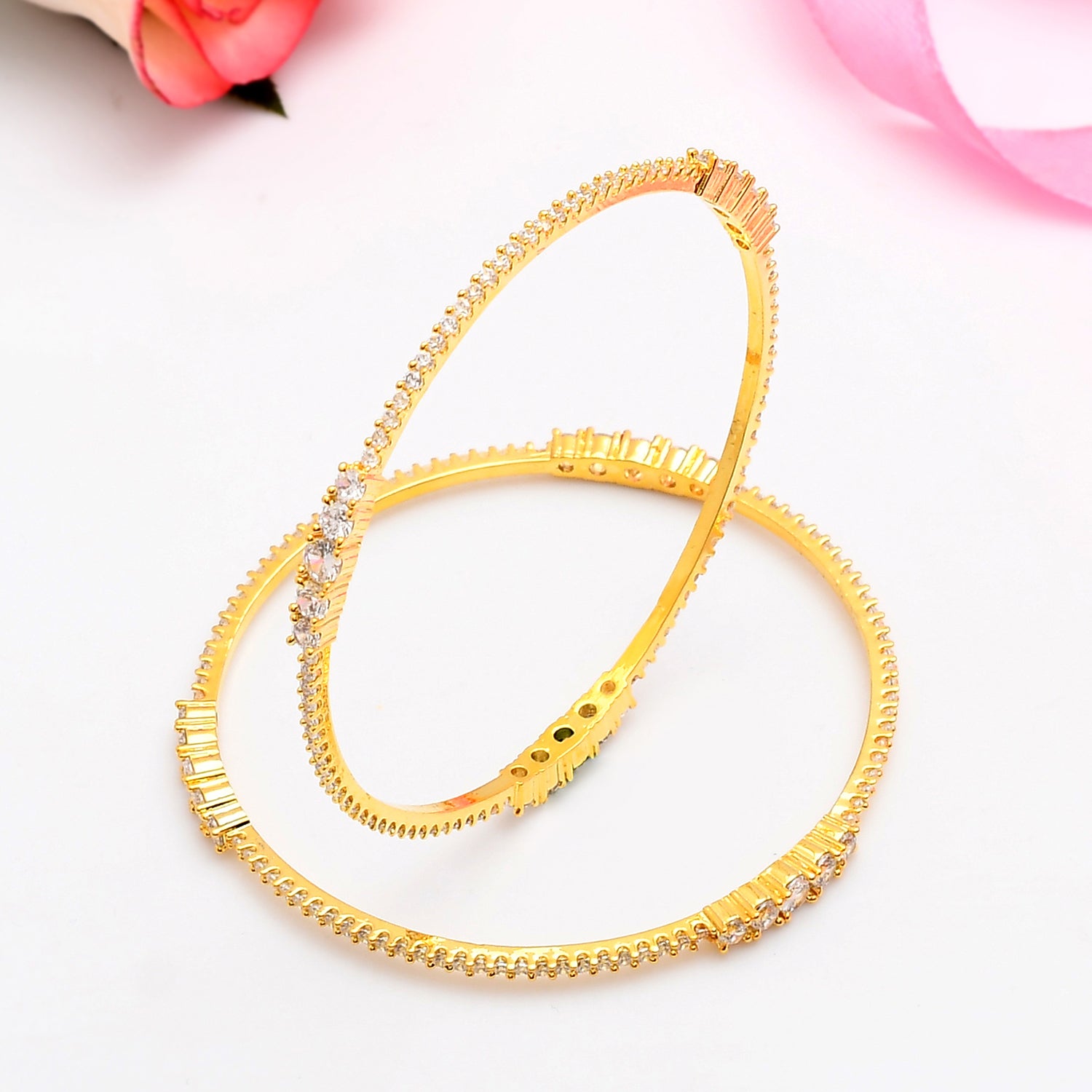 Sparkling Elegance Radiant Gold-Plated American Diamond Bangles