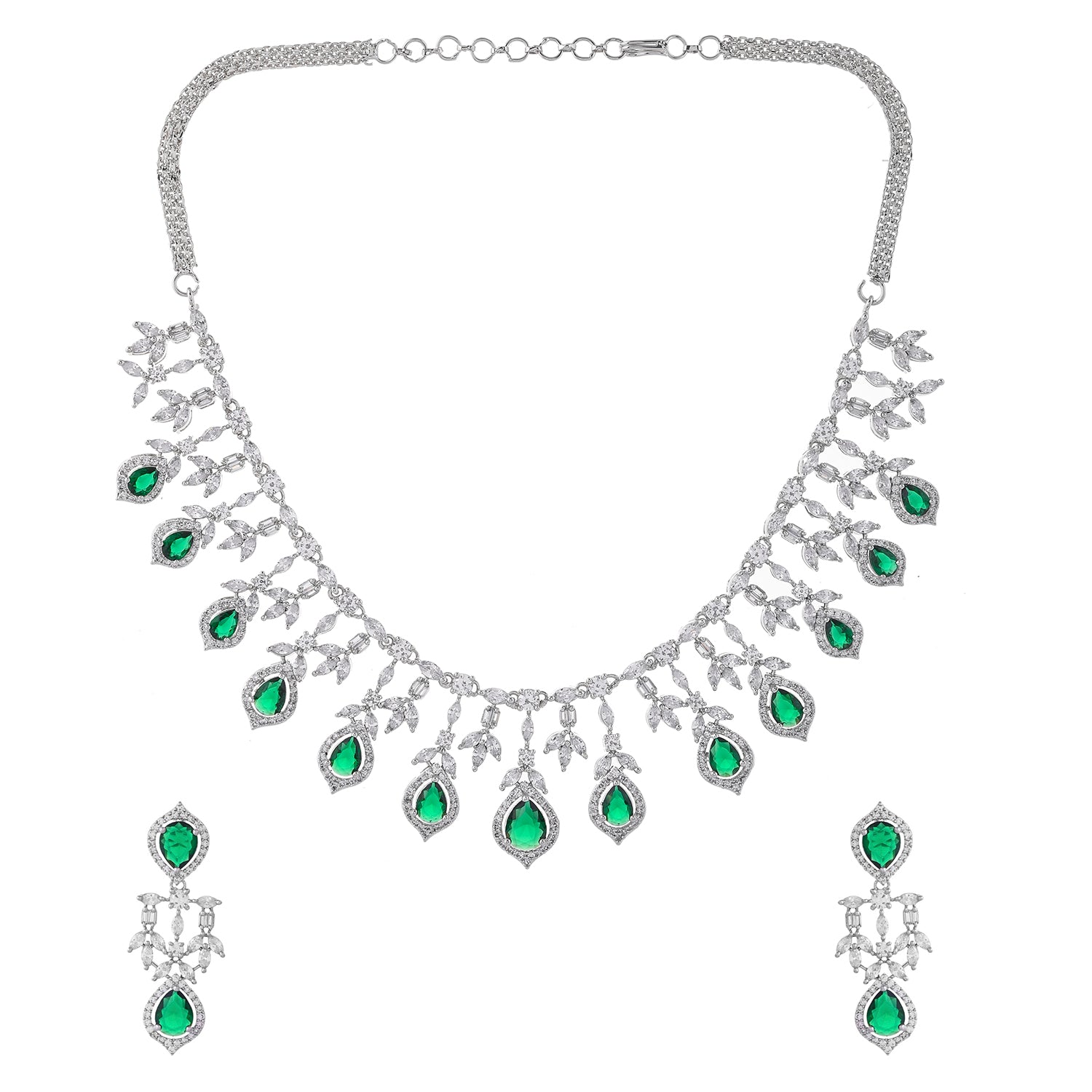 Sparkling Elegance Radiant Green American Diamond Necklace Set