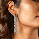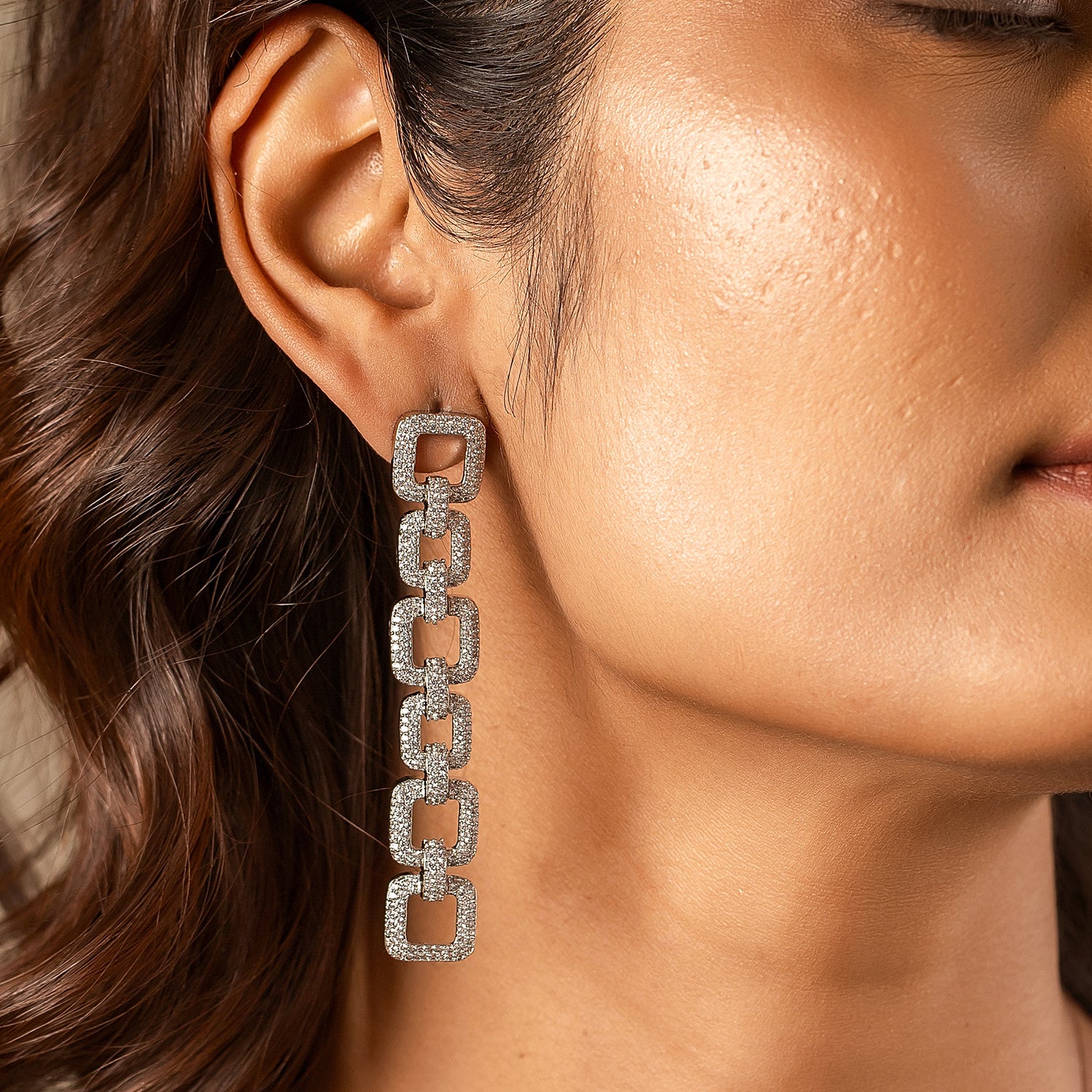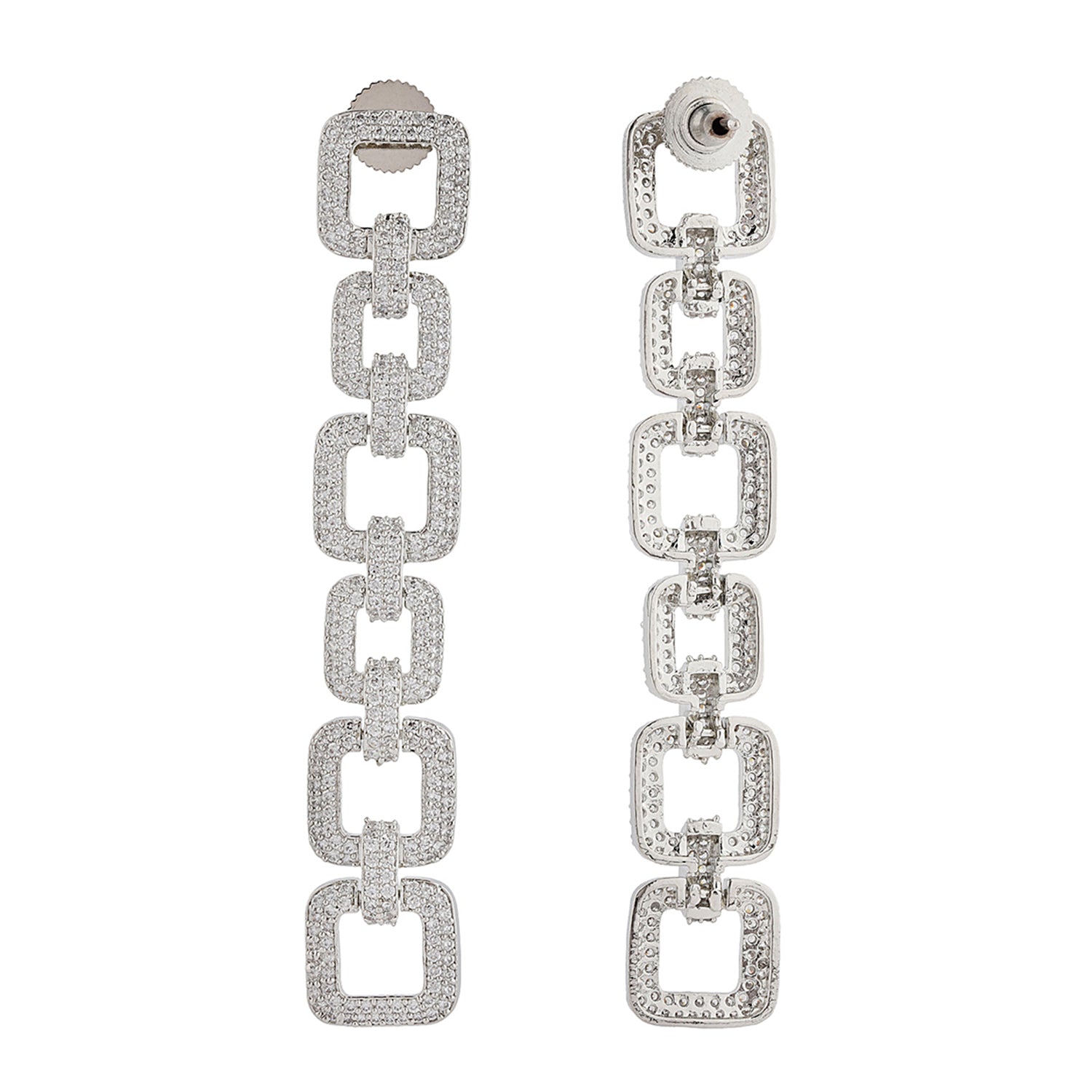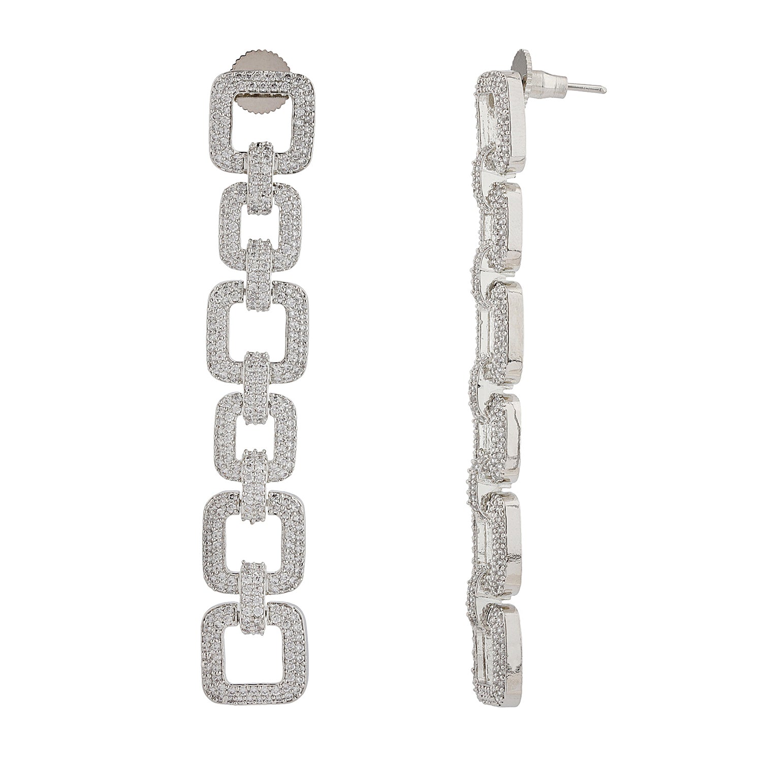 Step into the spotlight with the Radiant Harmony Dangler Earrings, a masterpiece from the Sparkling Elegance collection. Crafted meticulously from premium brass and finished with a dazzling white rhodium plating, these earrings combine timeless charm with modern flair. Featuring a chain-link design adorned with shimmering stones, they exude unparalleled grace, making them an exquisite choice for women seeking both elegance and versatility. Whether it’s a chic saree for Diwali, a graceful lehenga for Rakshabandhan, or even a cocktail gown for Valentine’s Day, these earrings complement every outfit effortlessly. Ideal for parties, vacations, or even elevating your office look, their white brilliance pairs beautifully with bold and pastel hues alike. Perfect as a thoughtful gift for your sister, wife, mother, or friend, or as a romantic gesture for your girlfriend or lover. Be it Christmas, New Year, or Rakhi celebrations, these earrings are a symbol of cherished memories and sparkling joy.