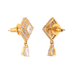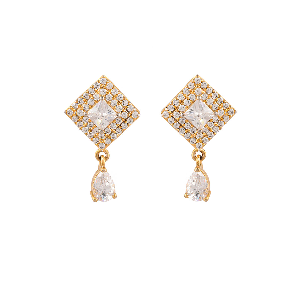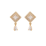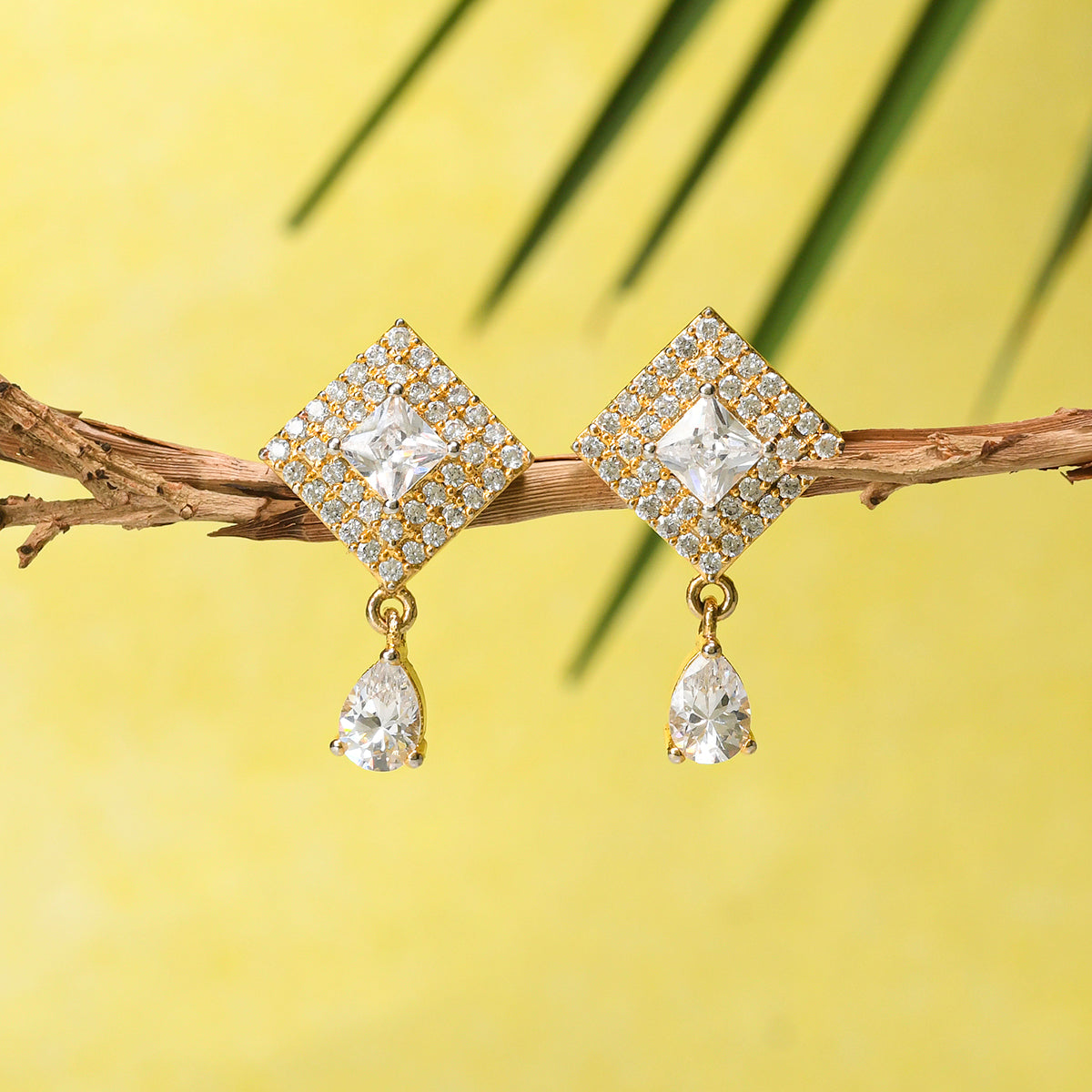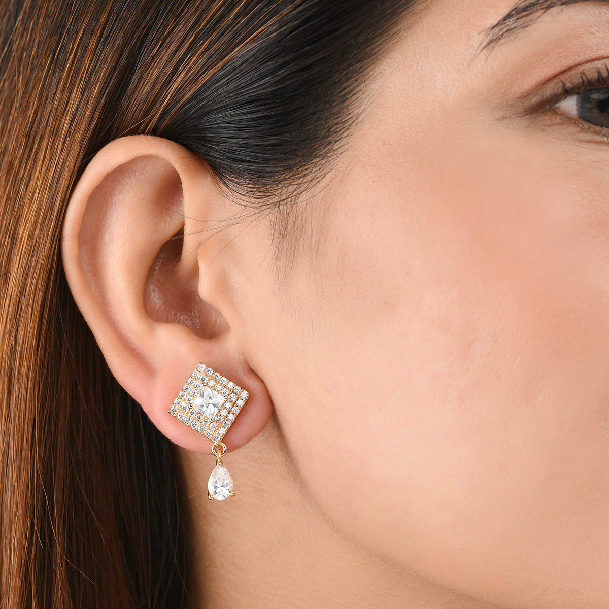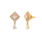 Sparkling Elegance Rectangle and Teardrop Zircons Adorned Gold Plated Brass Earrings