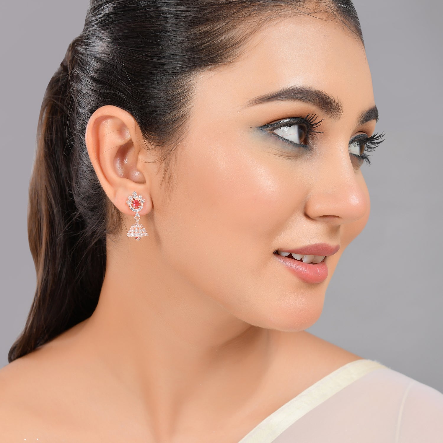 Sparkling Elegance Red And White Cz Casual Drop Earrings