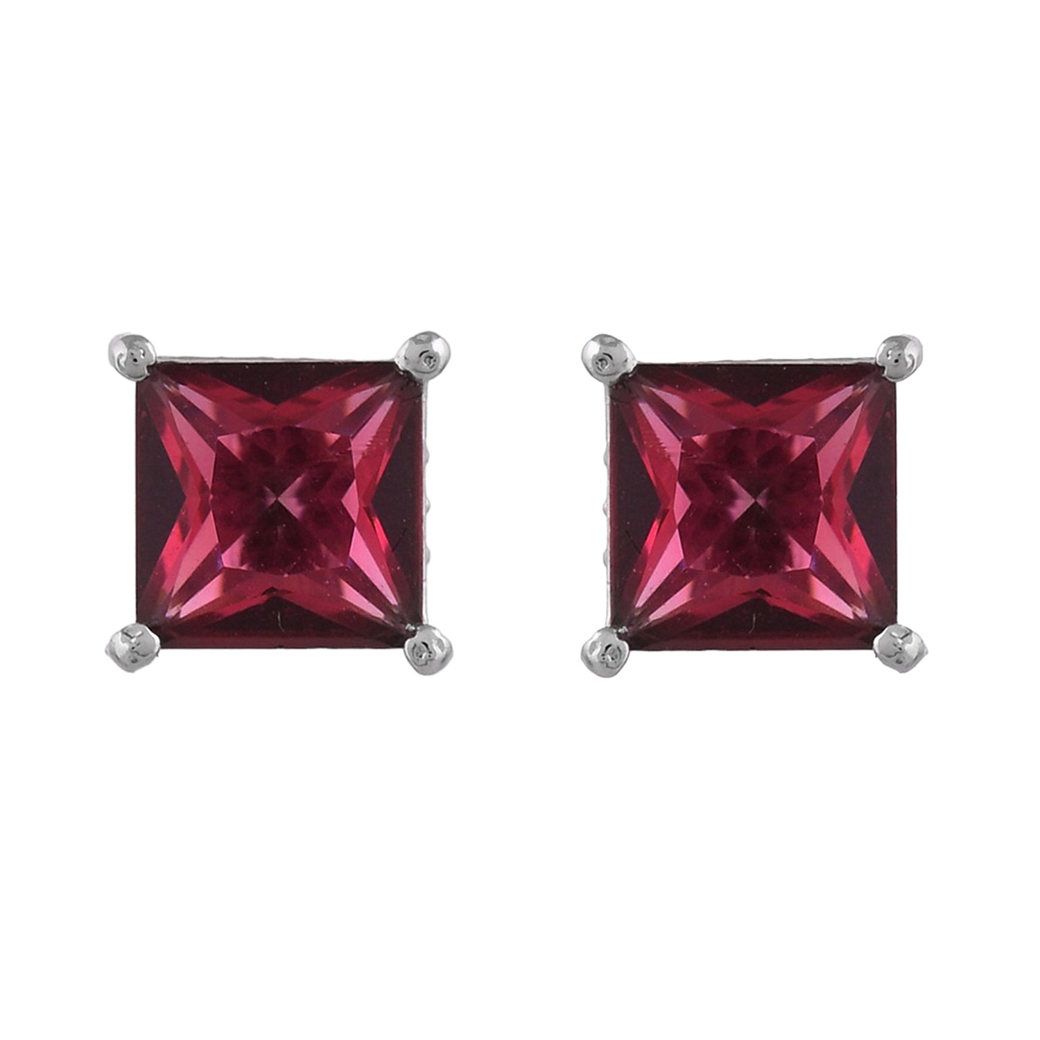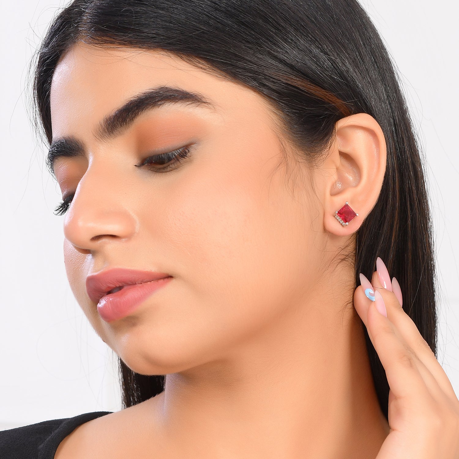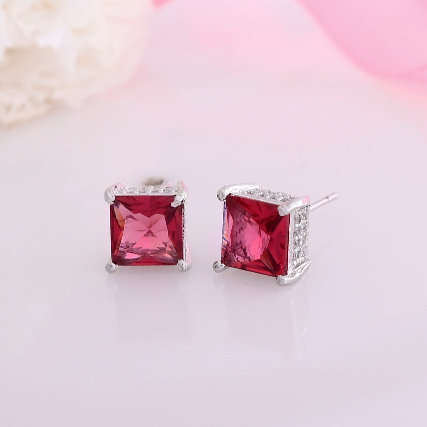 Sparkling Elegance Red Square Cut Cz Stud Earrings