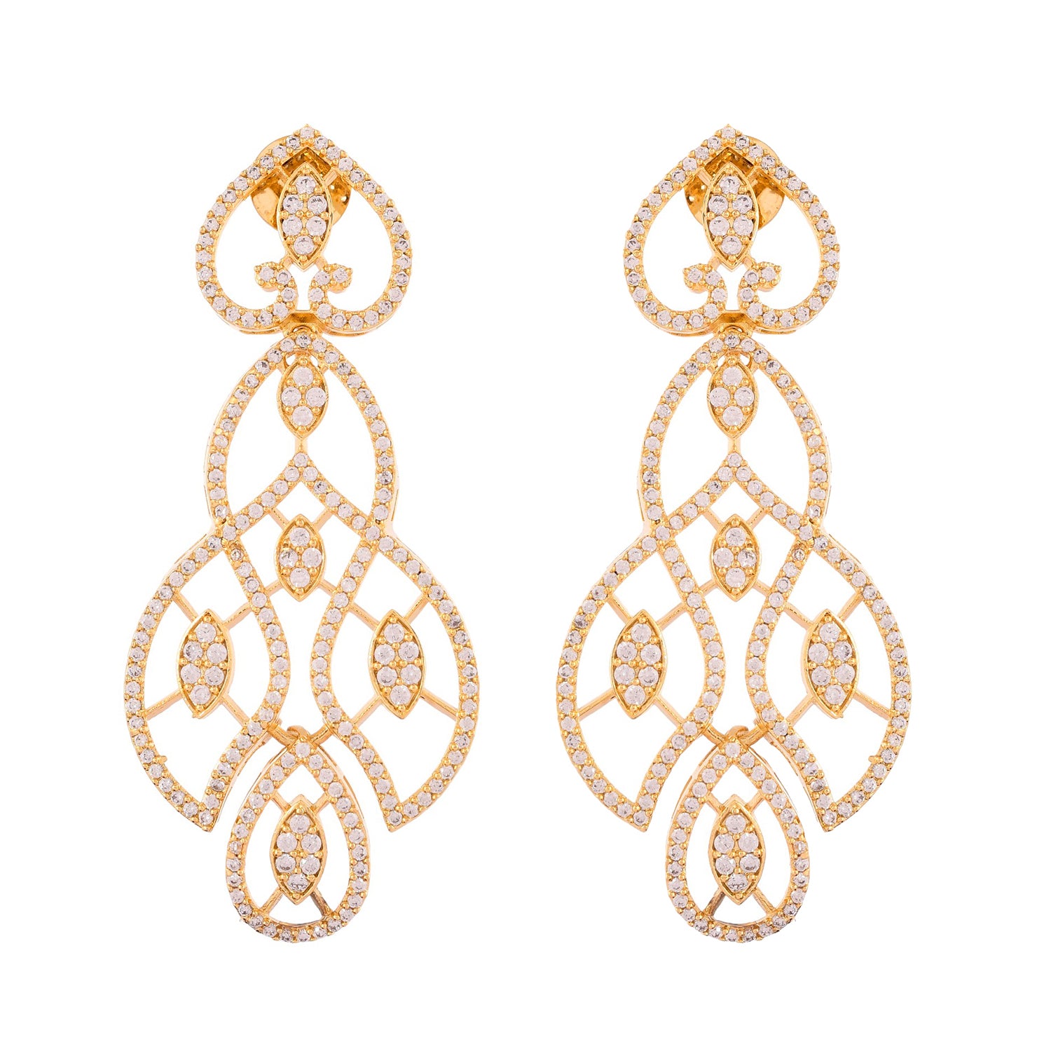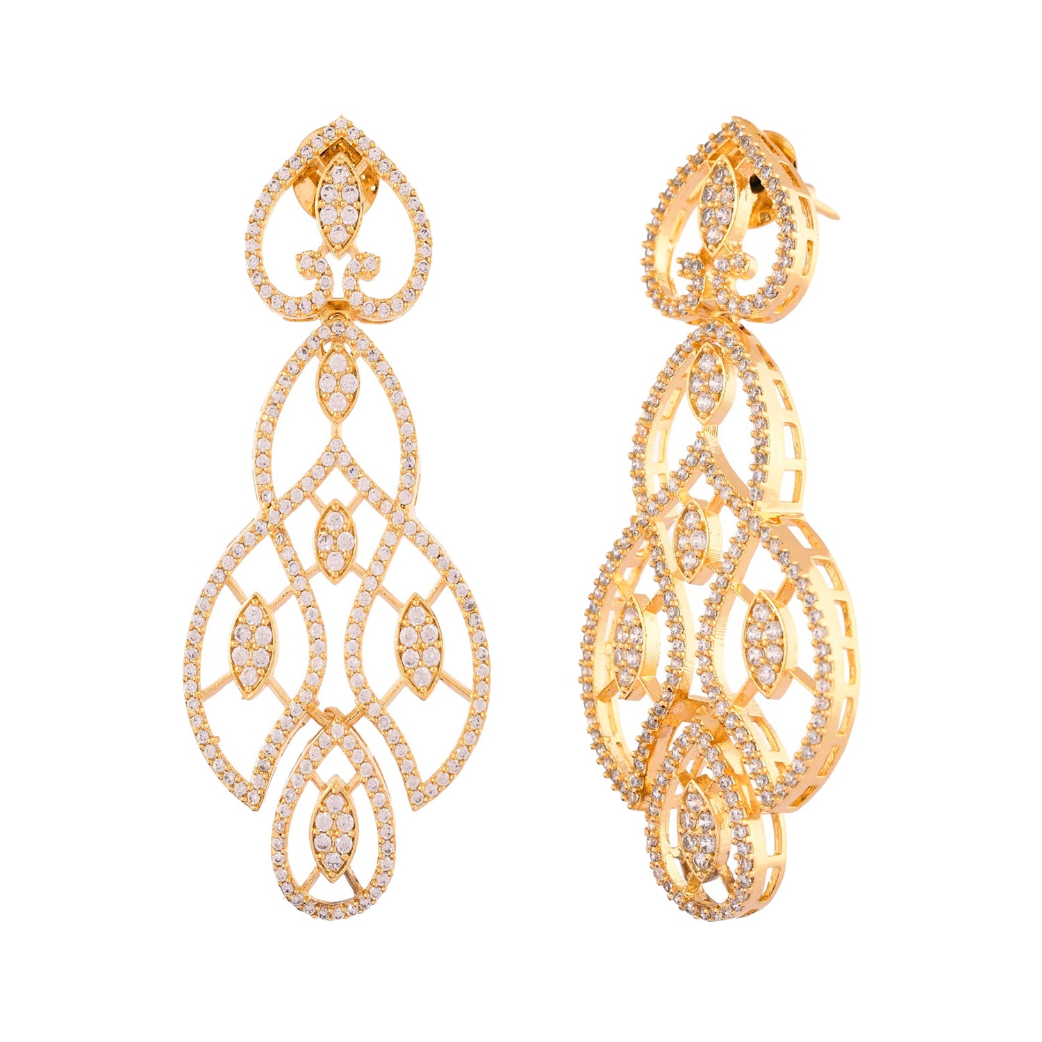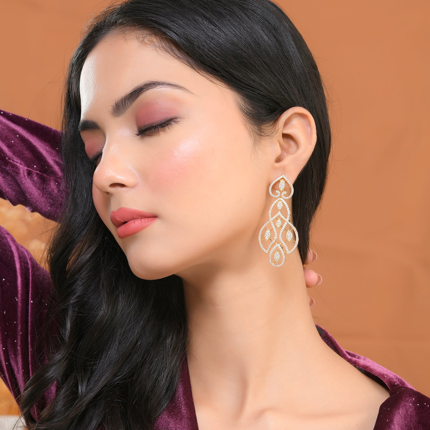 Sparkling Elegance Regal American Diamond Gold Dangler Earrings