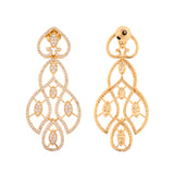 These stunning Dangler Earrings are crafted from high-quality brass and plated with lustrous Gold, ensuring both durability and a brilliant shine. The intricate design features a series of interconnected shapes, creating a sophisticated cascading effect that is perfect for Long Earrings for women.Each earring is adorned with beautifully textured surfaces, reminiscent of clustered American Diamonds that catch the light with every movement.