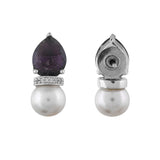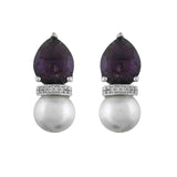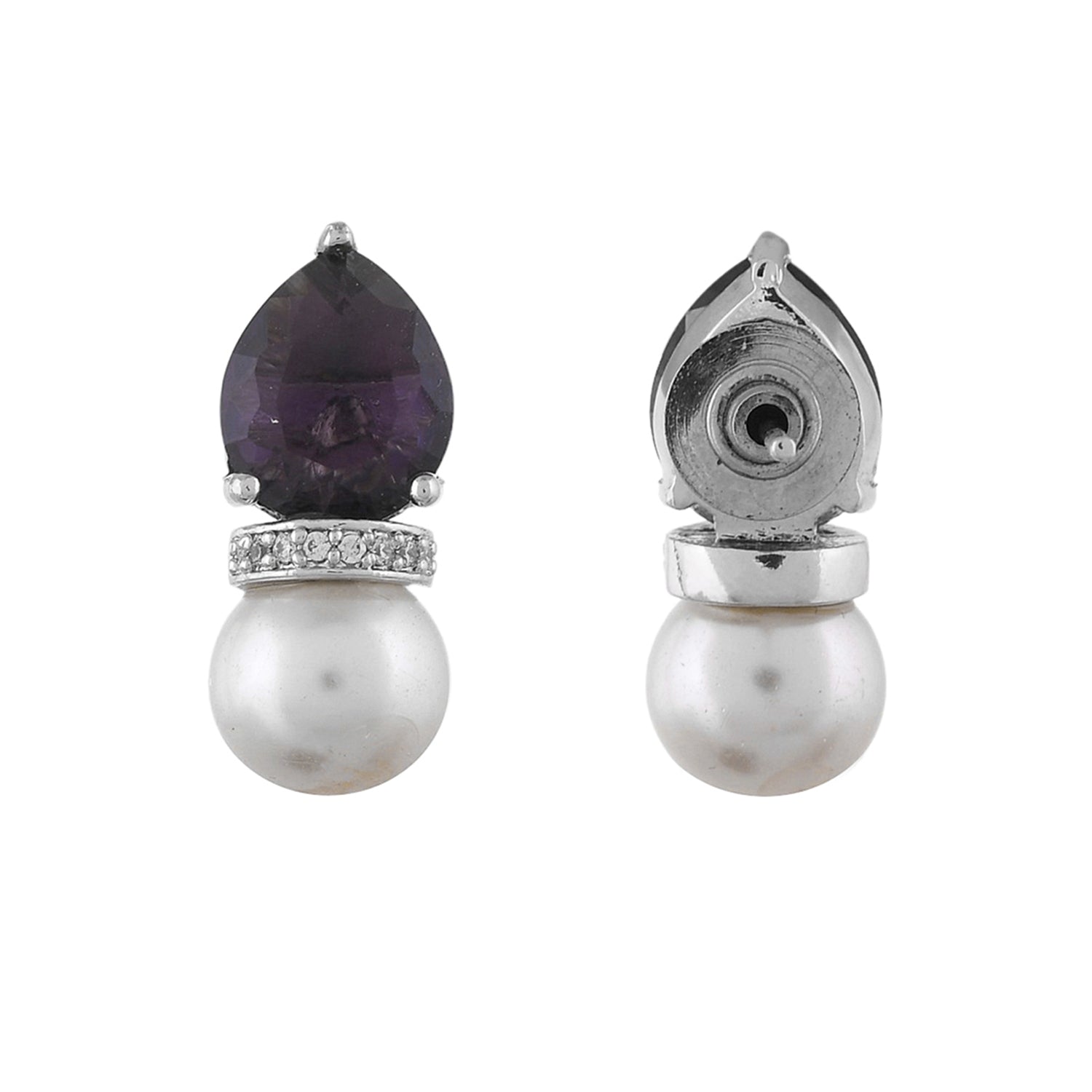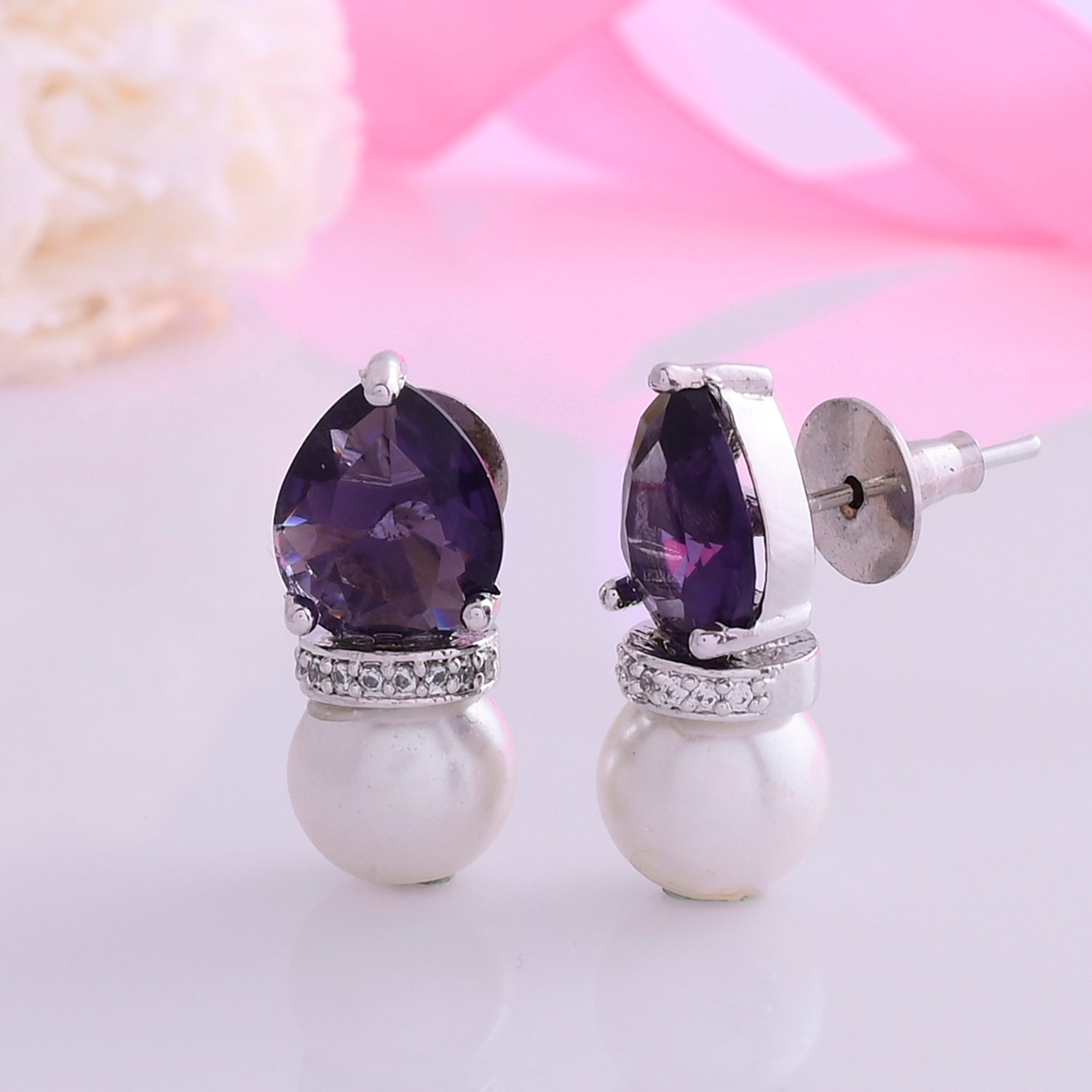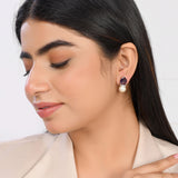 These earrings feature a captivating marquise-cut purple gemstone that exudes nobility and charm. The brass material, plated with rhodium, ensures a durable and brilliant finish that mirrors the night sky’s deepest hues. Suspended below is a pearl of the purest sheen, adding an element of classic elegance to the ensemble. Whether it’s a grand event or an intimate gathering, these earrings are designed to make a statement and celebrate the essence of modern royalty.