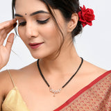 Traditional beaded mangalsutra made from brass and embellished with CZ gems. Rose gold plated and a perfect match for formal attire.