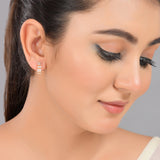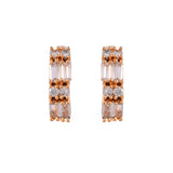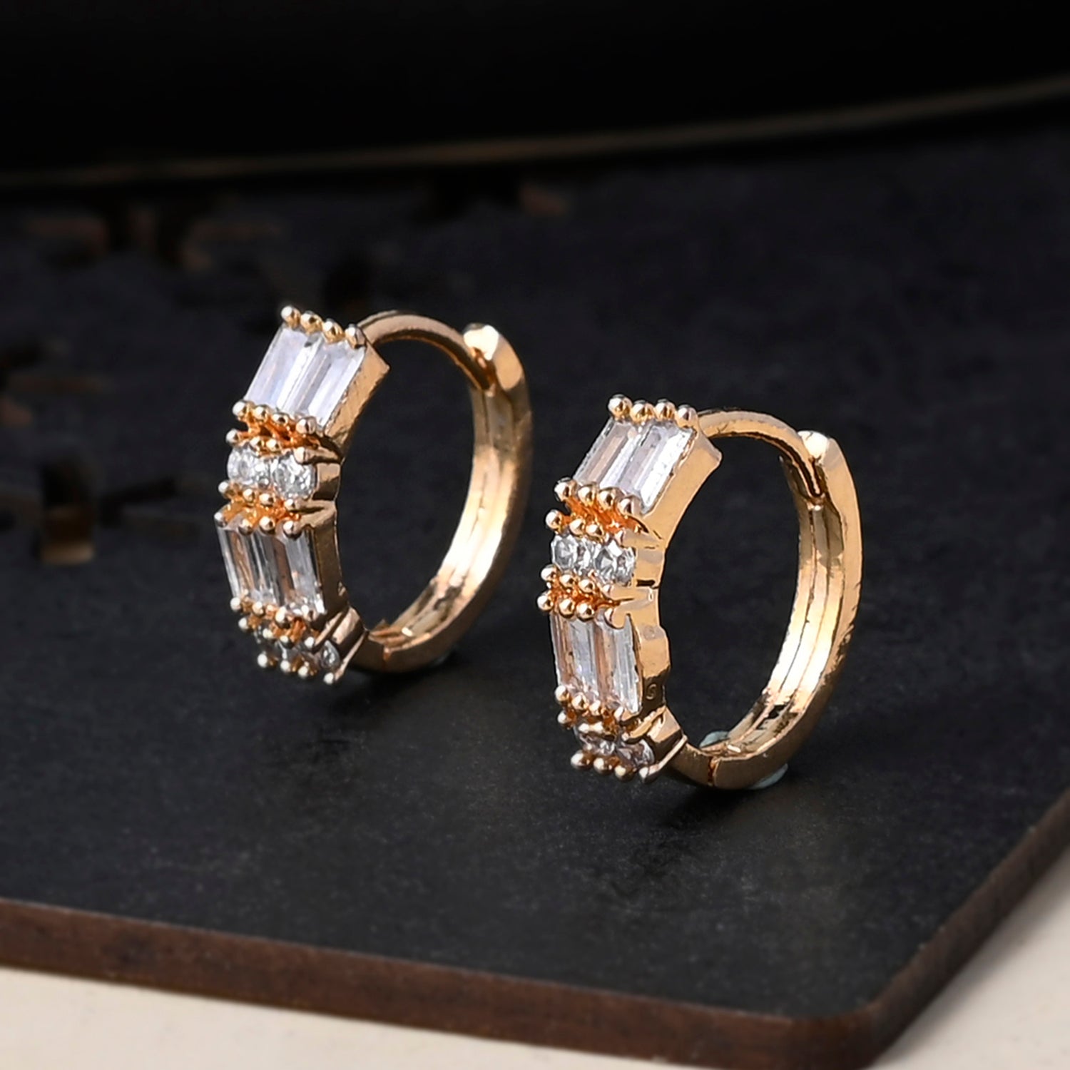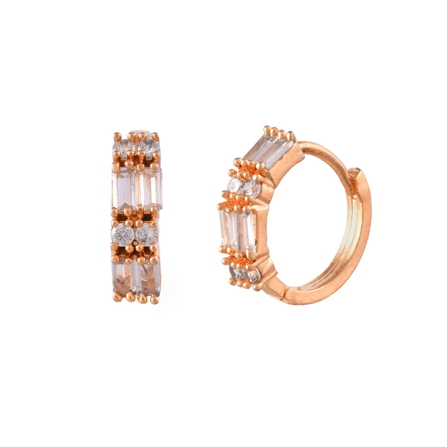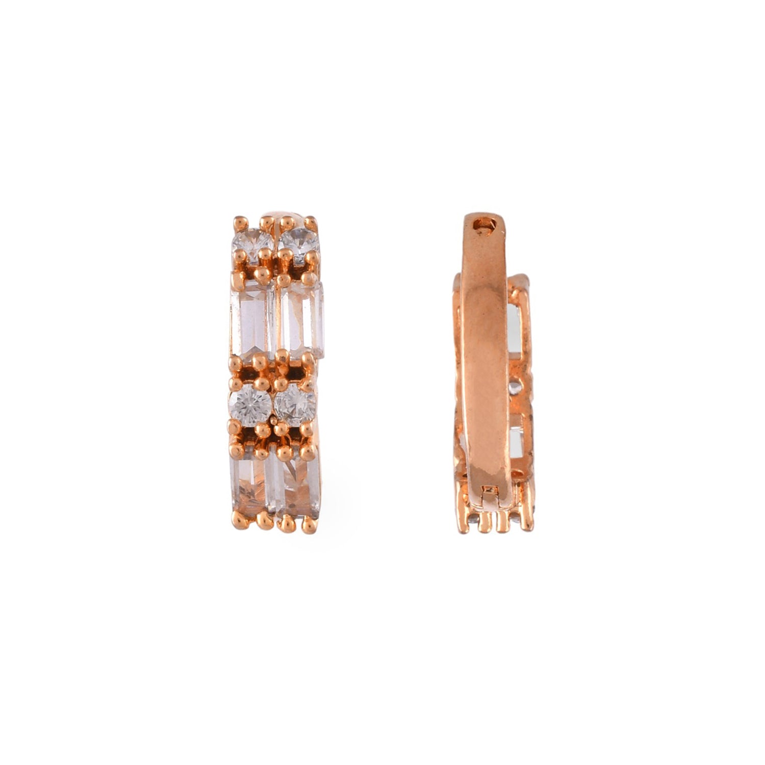 Classic half-hoop earrings made from brass and gold plated. Embellished with round cut white CZ gemstones. Perfect for casual and everyday wear.