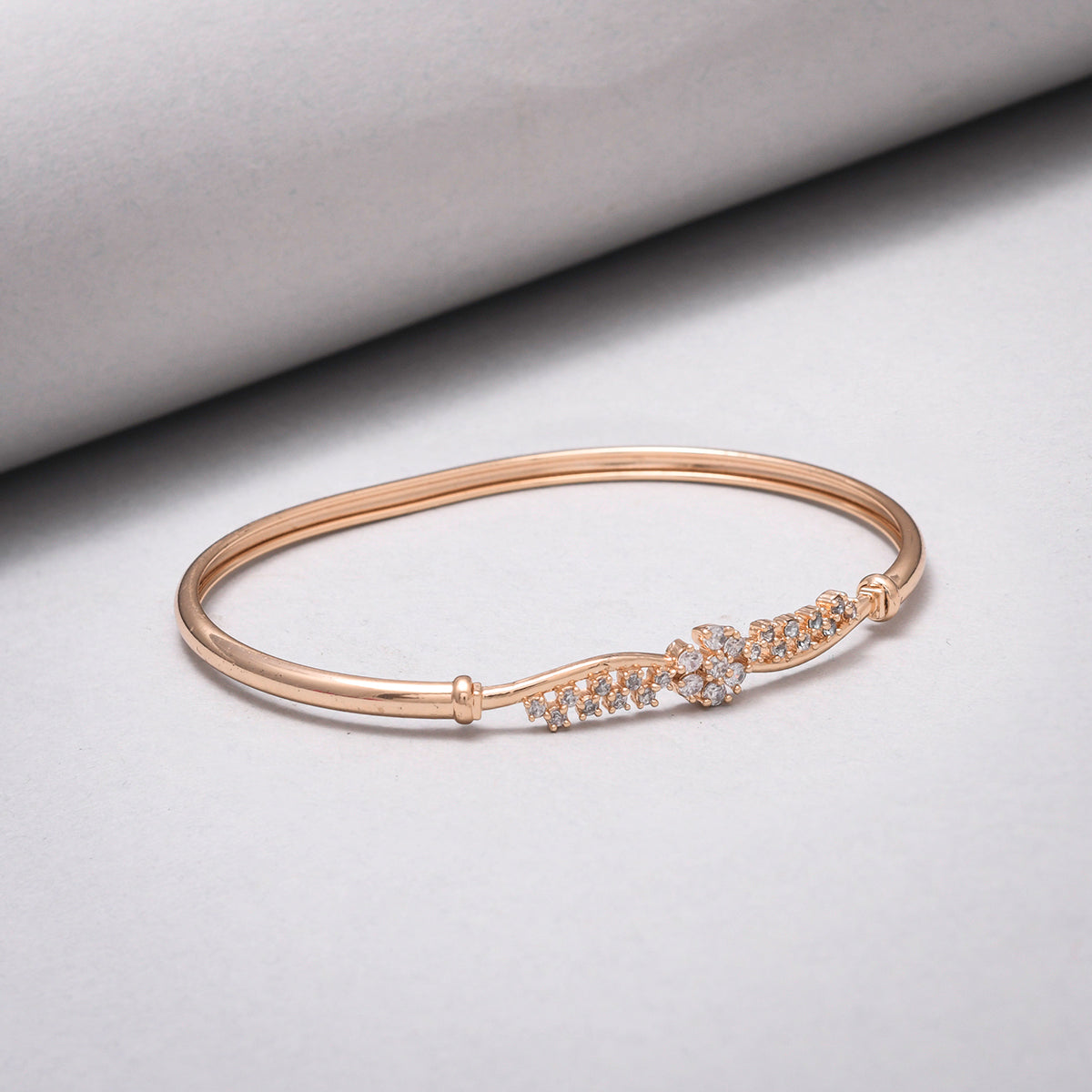 Sparkling Elegance Round Cut Zircons Floral Brass Rose Gold Plated Bracelet
