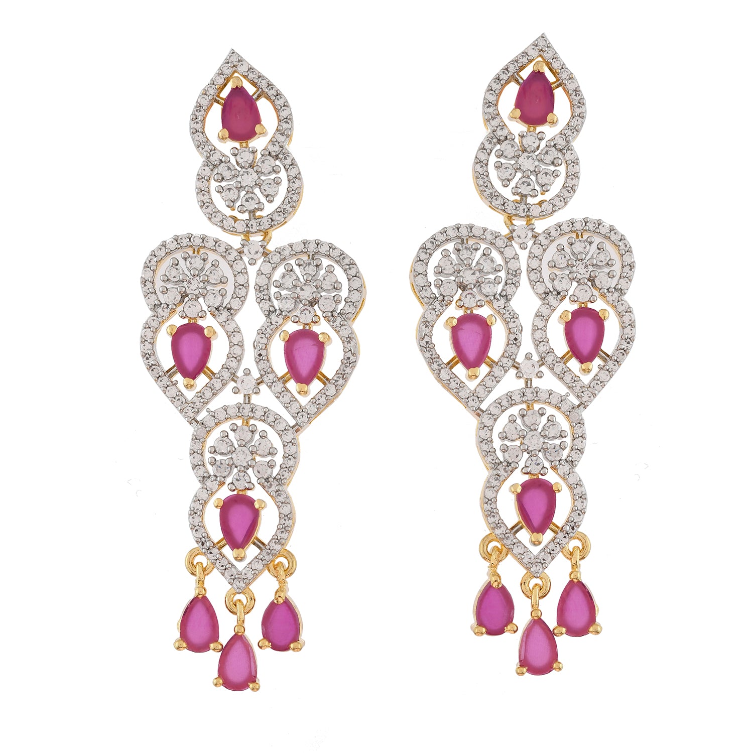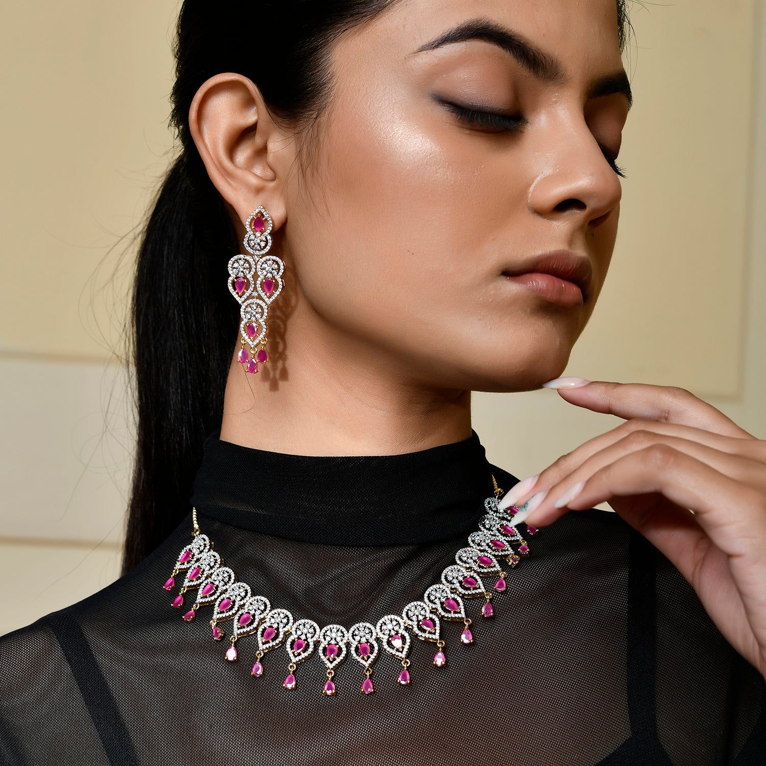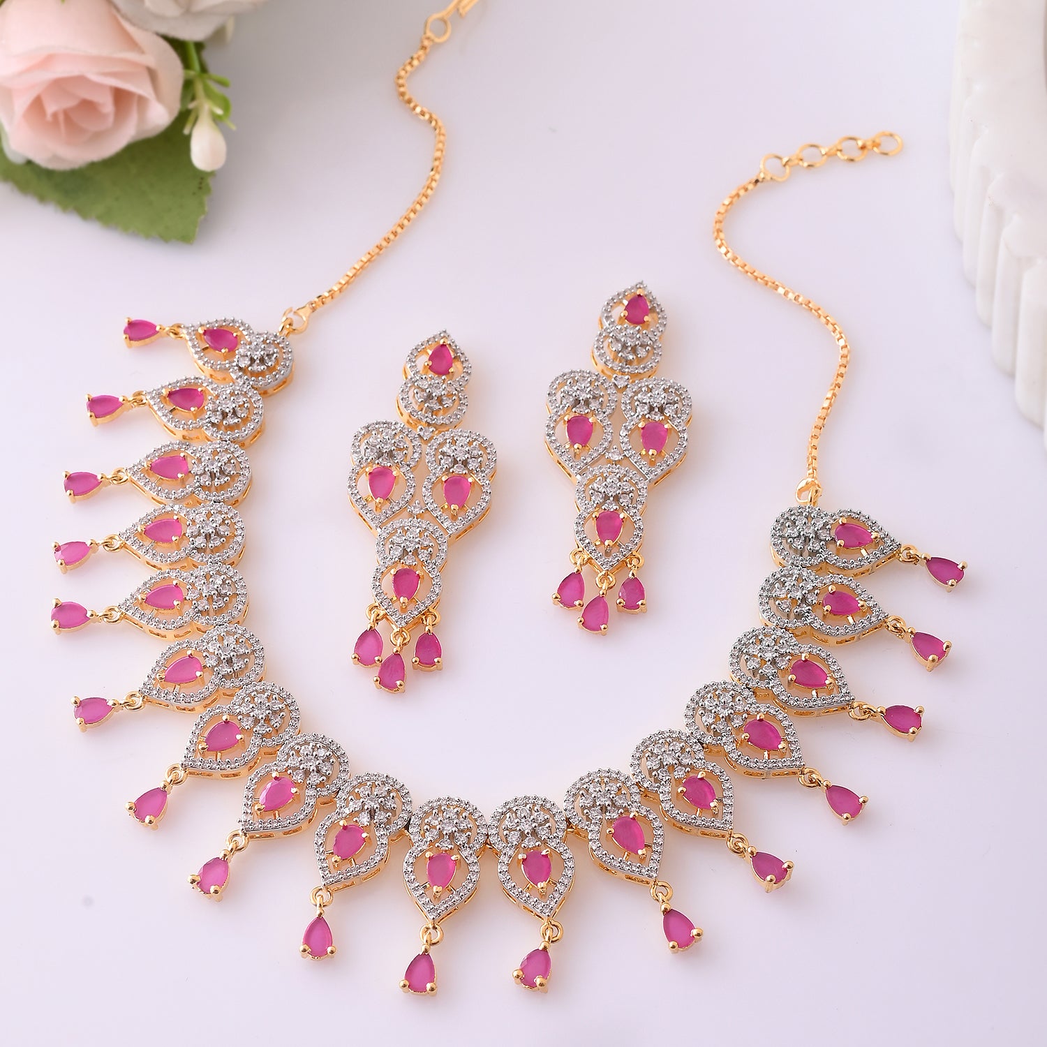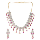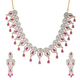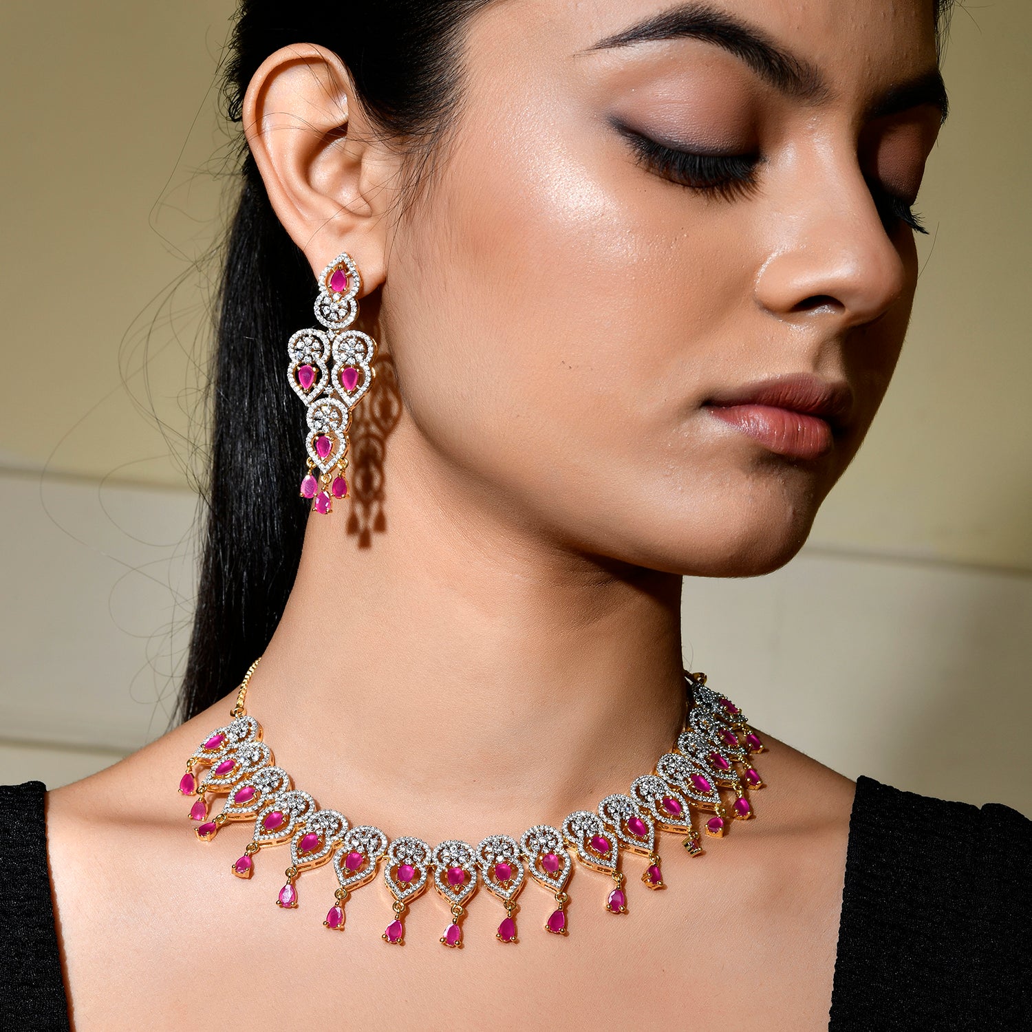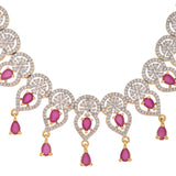 Sparkling Elegance Ruby Glimmer American Diamond Gold Necklace Set