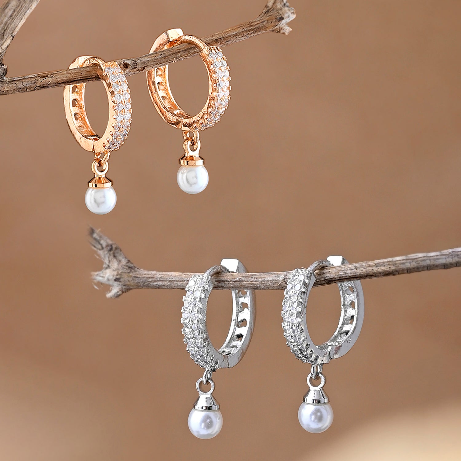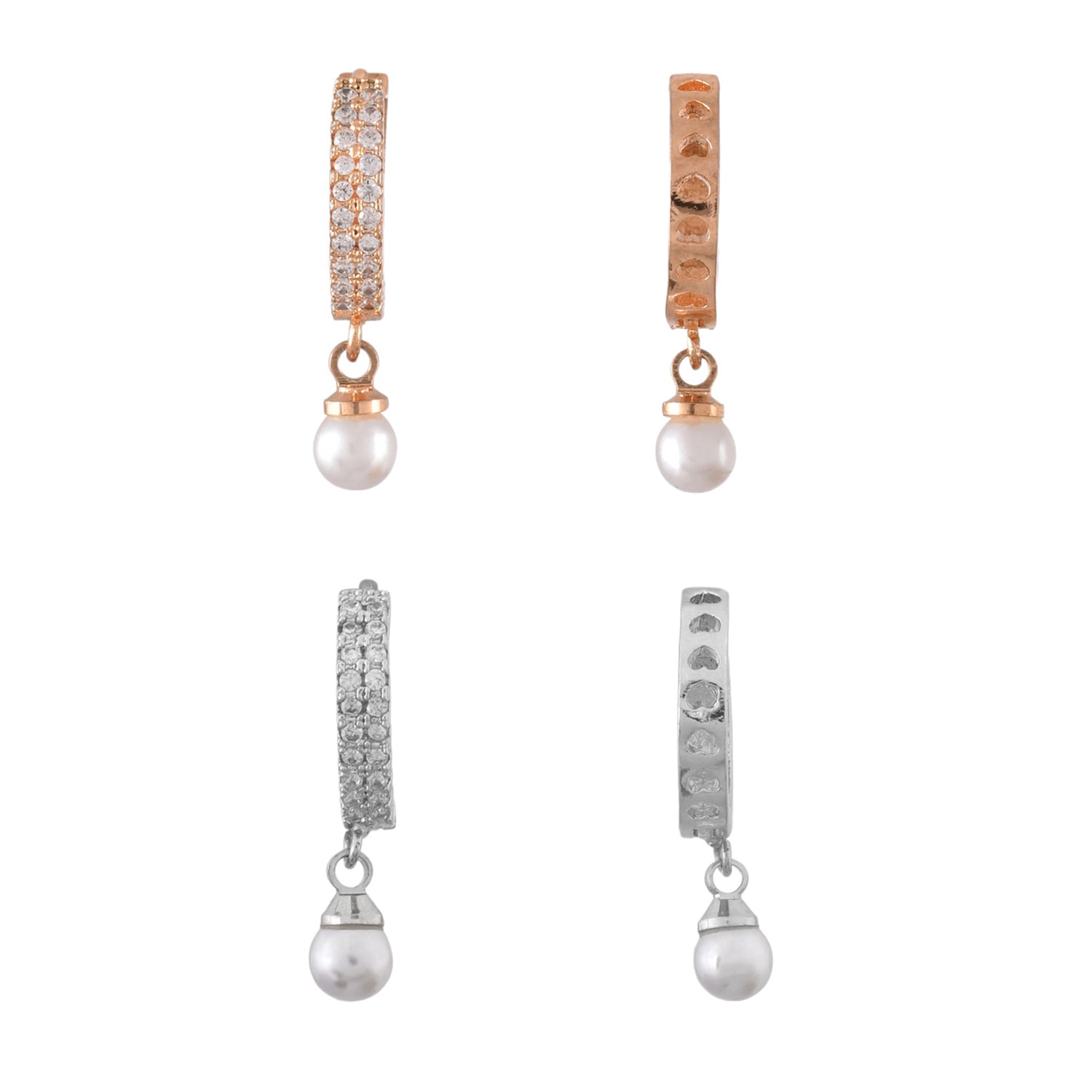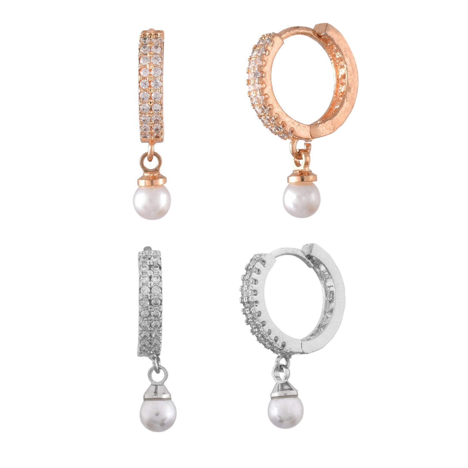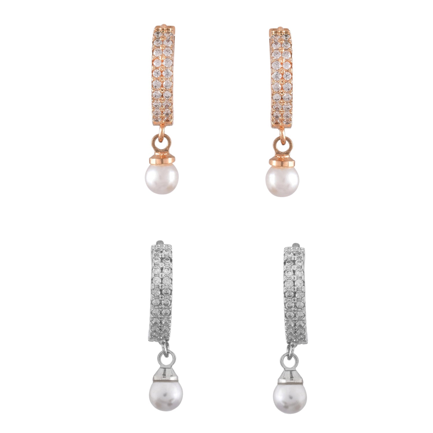 Sparkling Elegance Silver and Gold Pearls Cz Casual Earrings Combo