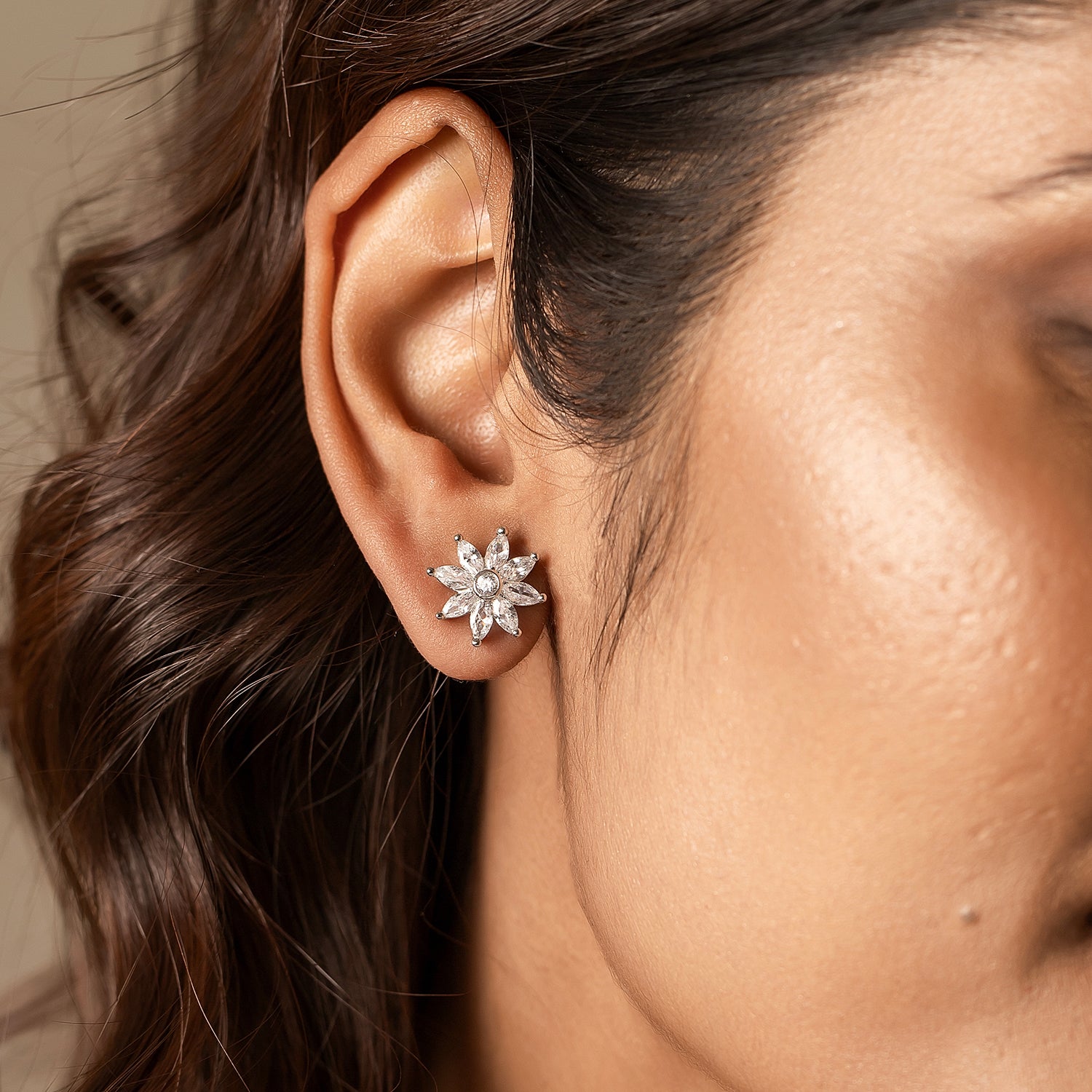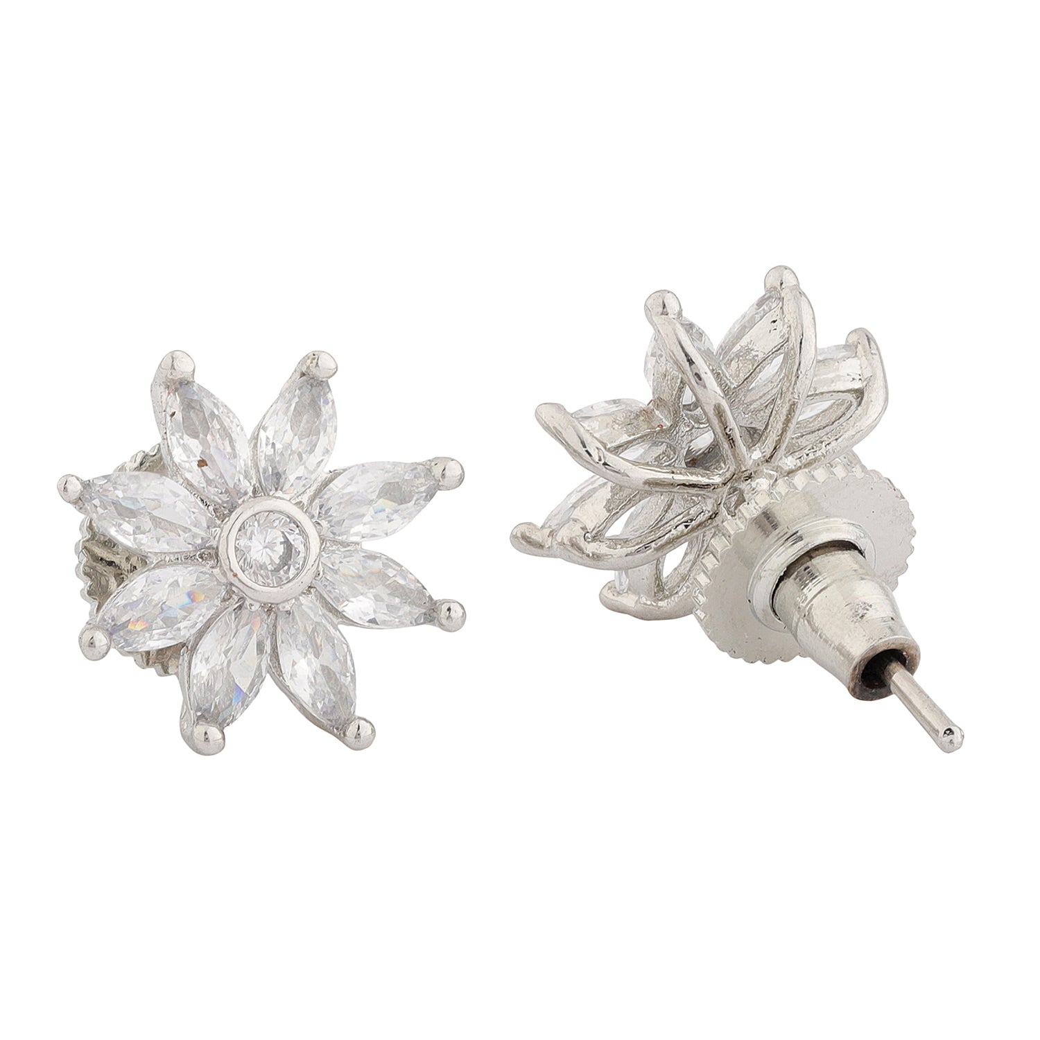 Step into the world of timeless beauty with these dazzling American Diamond Stud Earrings, crafted from high-quality brass with a white rhodium plating for an ultra-luxurious shine. Inspired by the celestial beauty of stars, these earrings feature a stunning floral burst design with intricately set American diamonds, ensuring a radiant sparkle from every angle. A must-have from our Sparkling Elegance Collection, these statement earrings are perfect for parties, weddings, festive celebrations like Diwali and Raksha Bandhan, and even daily office or vacation wear. The versatile silver-white tone complements both Indian and Western outfits, making them the ultimate women’s gift for birthdays, Valentine’s Day, Christmas, New Year, or a special Rakhi gift for your sister. Whether you’re dressing up for a grand celebration or adding a subtle shine to your everyday look, these chic stud earrings are the perfect touch of elegance and sophistication.