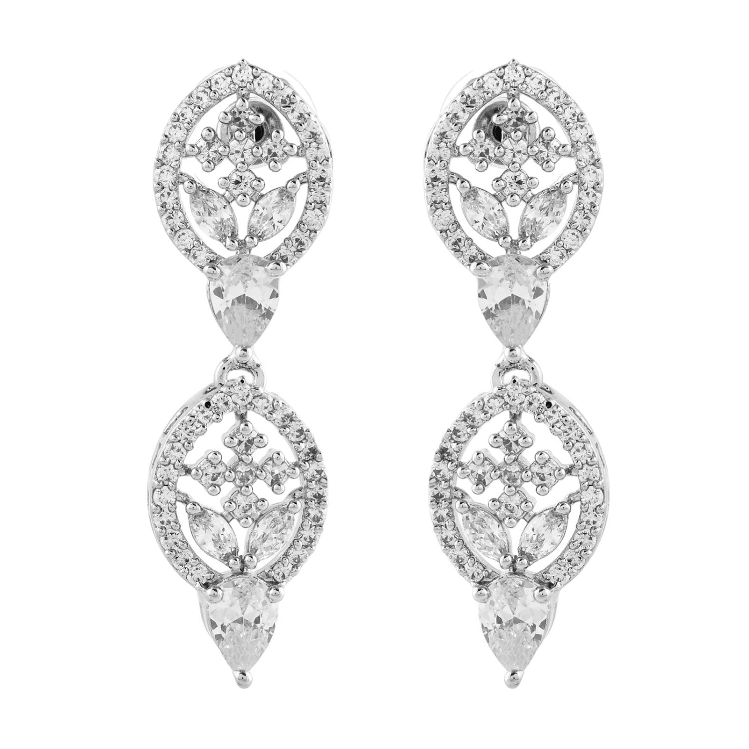 This captivating Voylla necklace set seamlessly marries timeless elegance with contemporary design, making it an irresistible choice for discerning women. Crafted meticulously from high-quality brass, the necklace and earrings feature a lustrous white rhodium plating that exudes sophistication.The intricate arrangement of these brilliant stones forms a harmonious pattern, reminiscent of celestial constellations. Each stone sparkles with an intensity that rivals the stars, creating an ethereal aura around the wearer. The necklace gracefully adorns the neckline, while the matching earrings dangle delicately, catching every glimmer of light. Whether you’re attending a wedding, celebrating a festive occasion, or simply want to elevate your everyday style, this American diamond necklace set is your perfect companion. Its versatility extends beyond aesthetics; it’s a thoughtful gift for sisters, mothers, or any woman who appreciates fine craftsmanship.