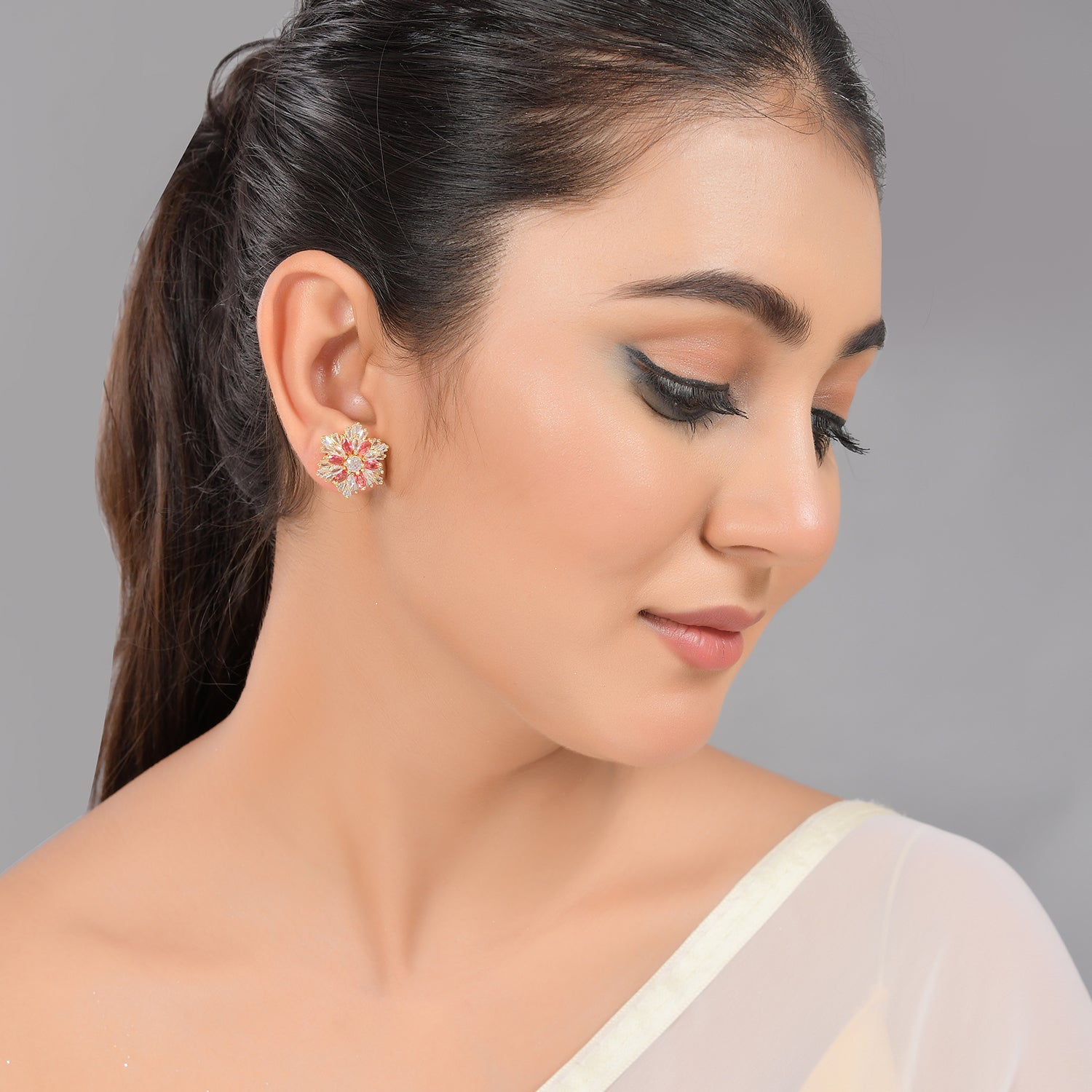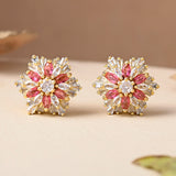 Sparkling Elegance Statement Pink Floral Stud Earrings