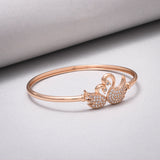 Sparkling Elegance Swans Zircons Adorned Rose Gold Plated Brass Bracelet