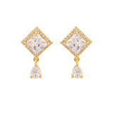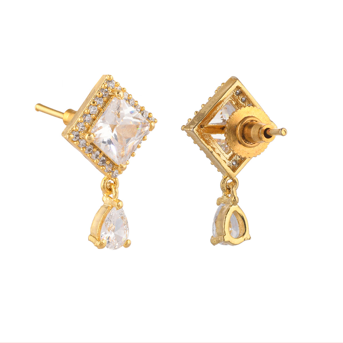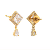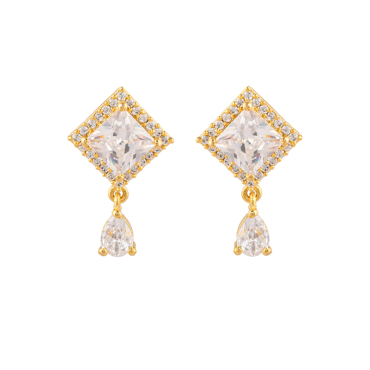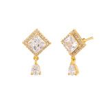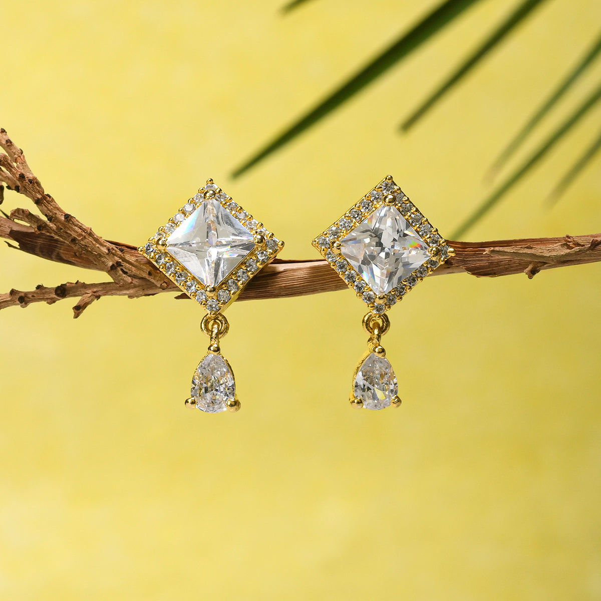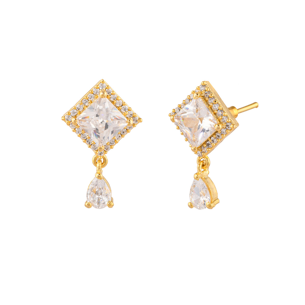 Sparkling Elegance Teardrop and Rectangle Cut Zircons Brass Gold Plated Earrings