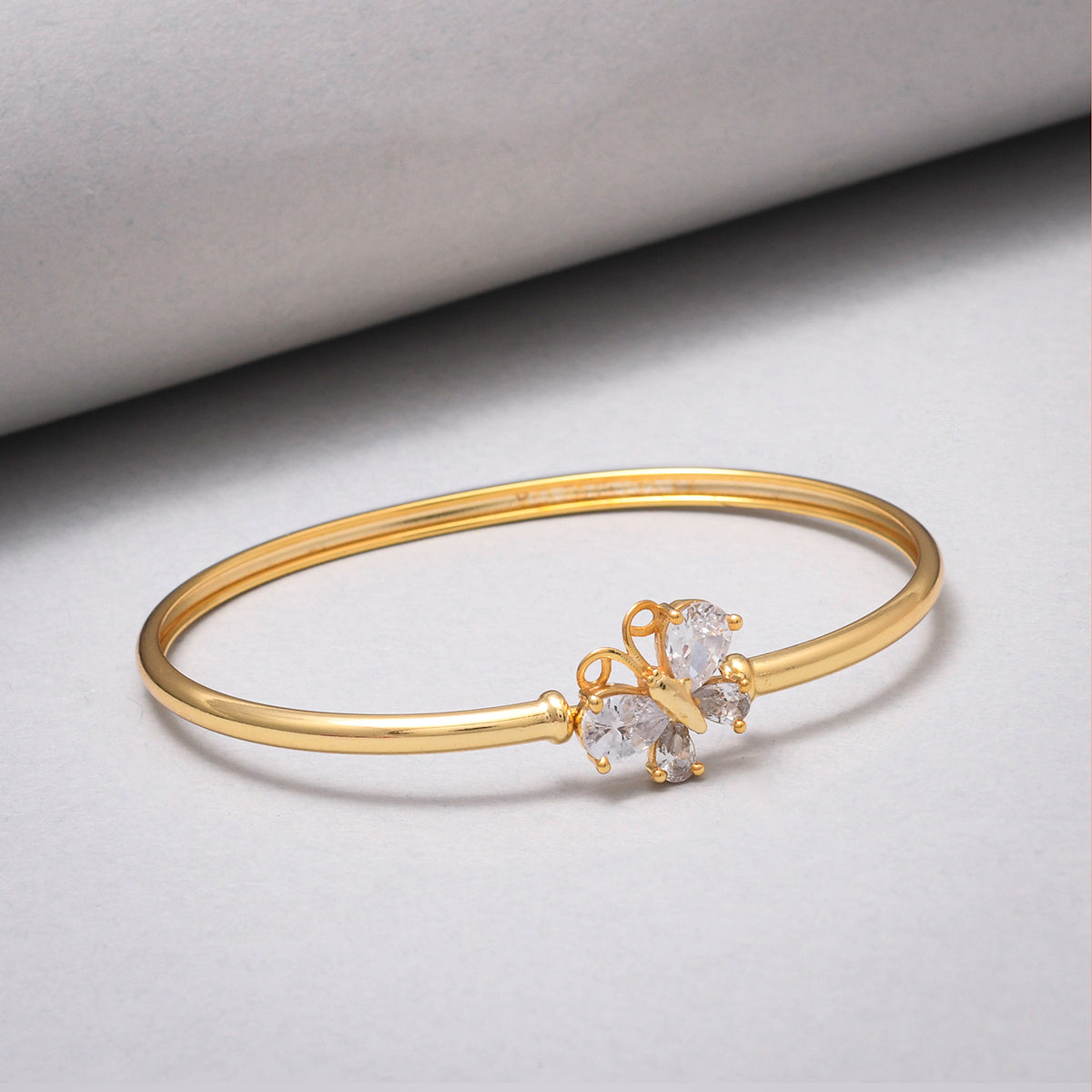 Sparkling Elegance Teardrop Cut CZ Butterfly Motif Brass Gold Plated Bracelet