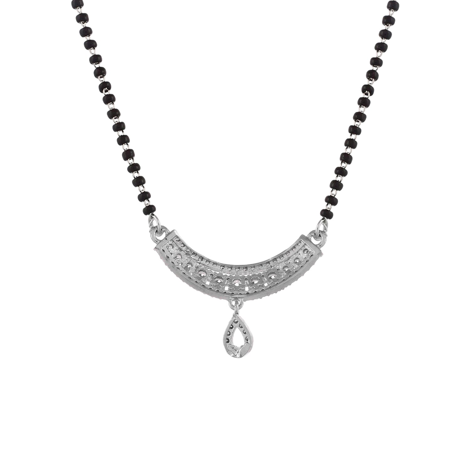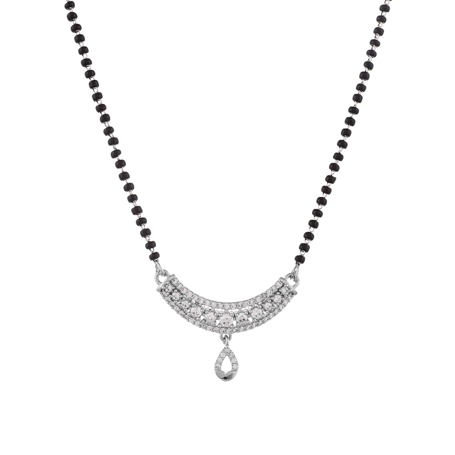 Teardrop cut zirconia embellished traditional beaded mangalsutra, made from brass and silver plated. Lightweight, comfortable and versatile.