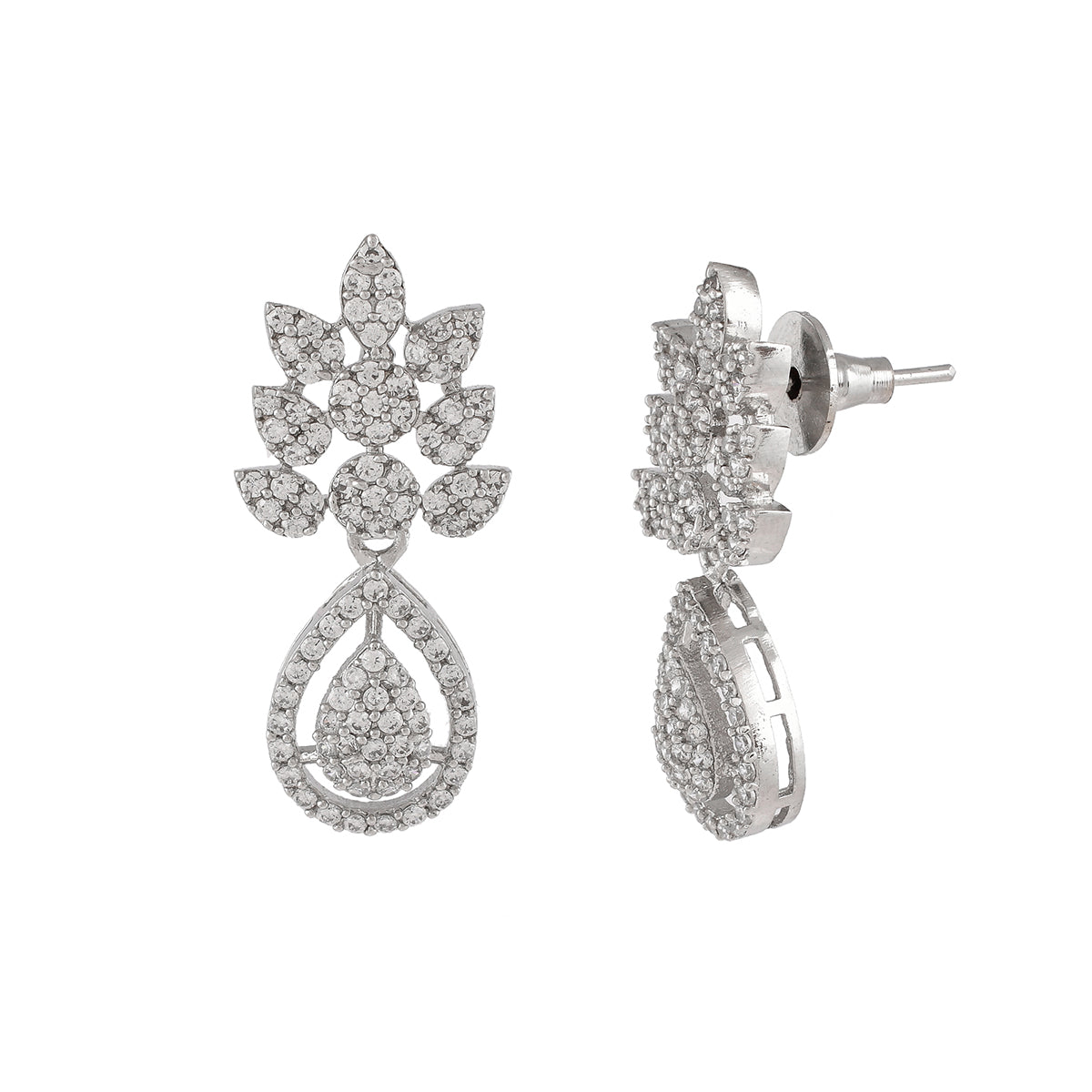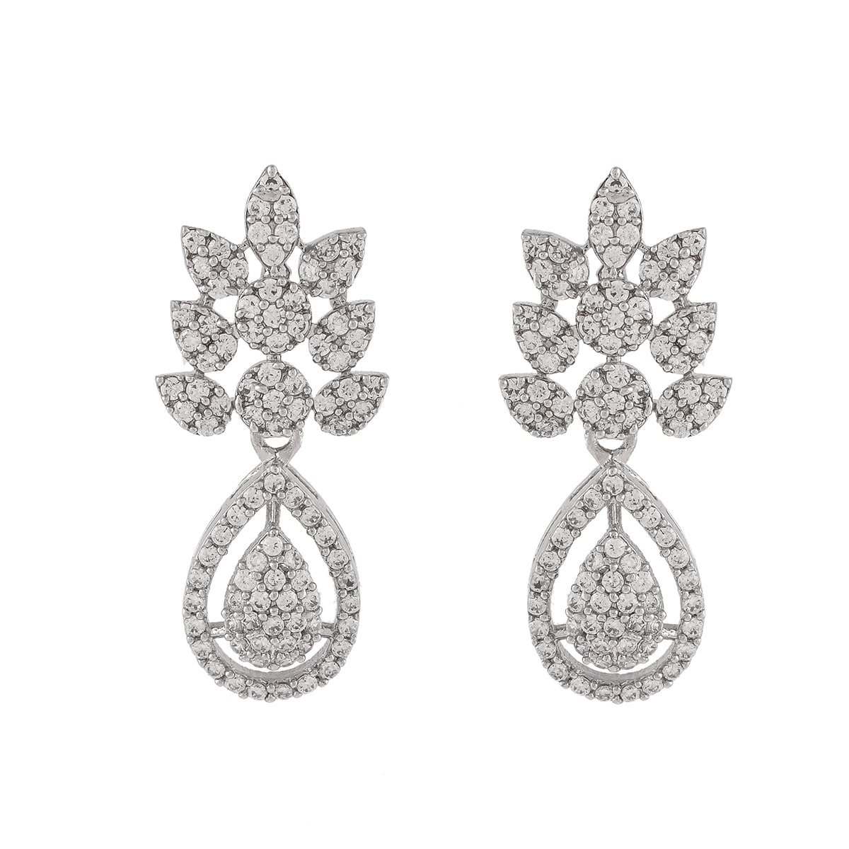 Delicate dangler earrings made from brass and white rhodium plated. Featuring a high polish finish and embellished with teardrop cut CZ gemstones. Good for formal and even everyday wear.