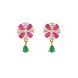 Sparkling Elegance Teardrop Cut Zircons Floral Gold Plated Brass Earrings