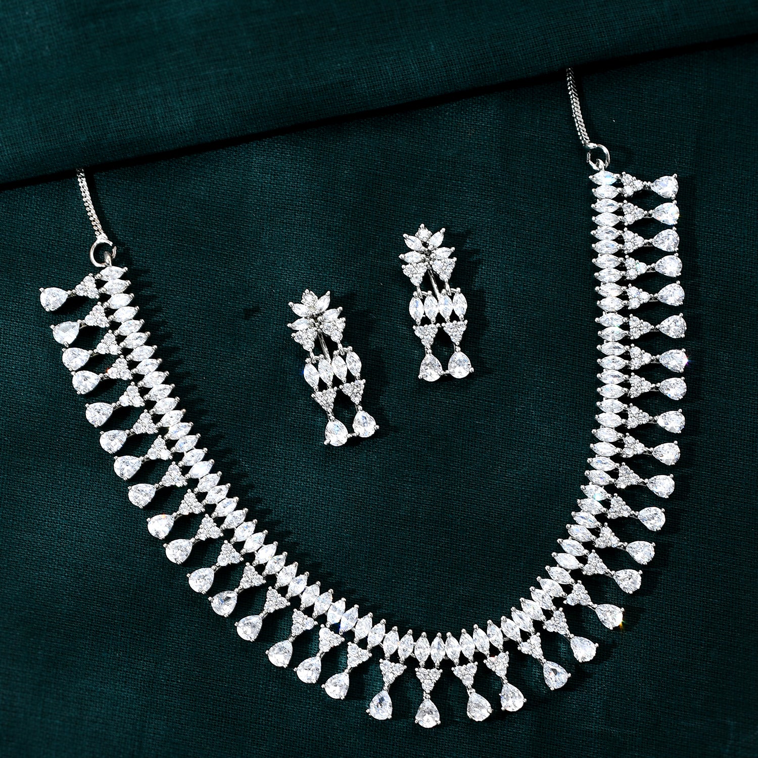Sparkling Elegance Teardrop Treasure American Diamond Necklace