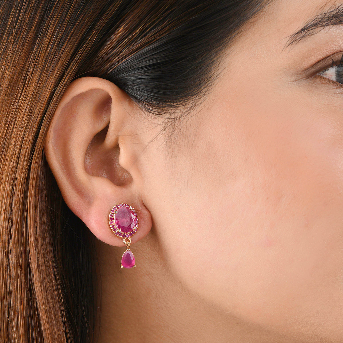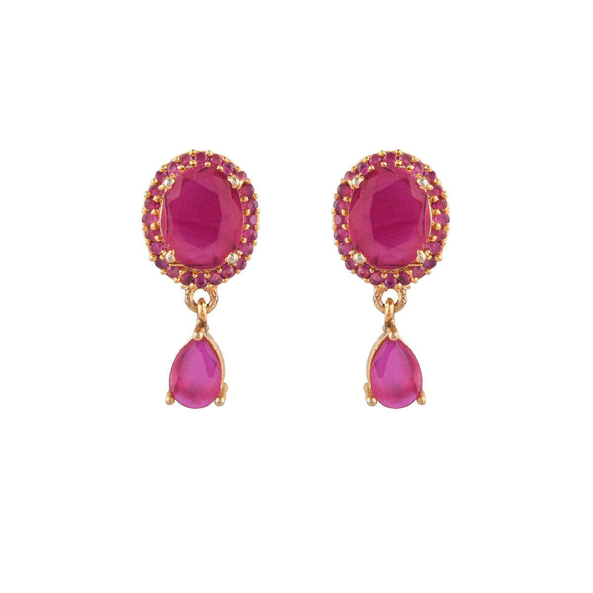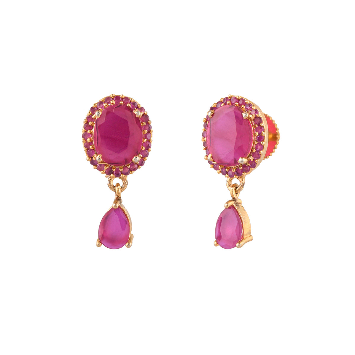 Embellished with teardrop and oval cut zirconia gemstones, these earrings have been fashioned out of brass. The gold plated pair promises to be a comfortable wear at all times. Wear with any of your favourite outfits to add an instant bling to the whole look.