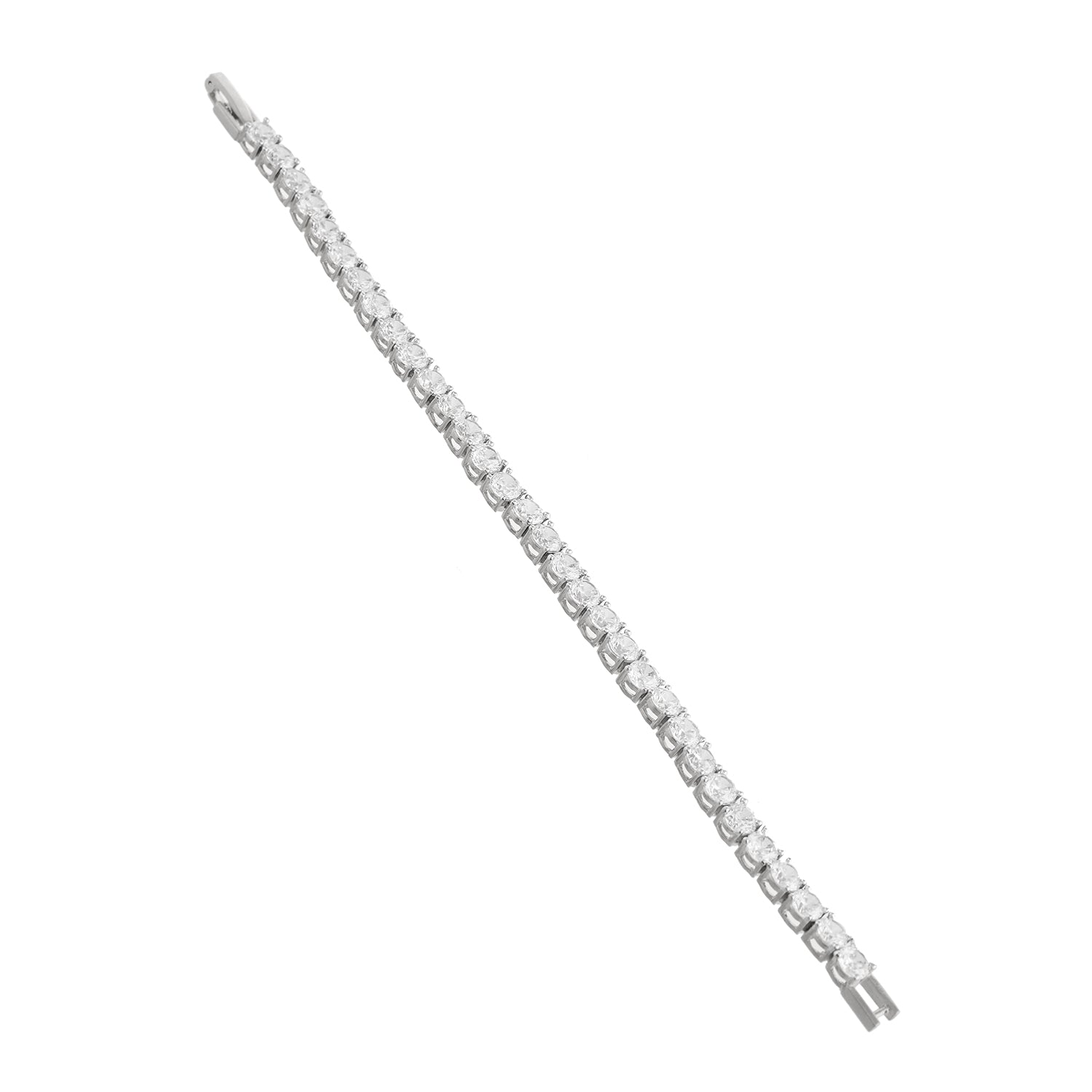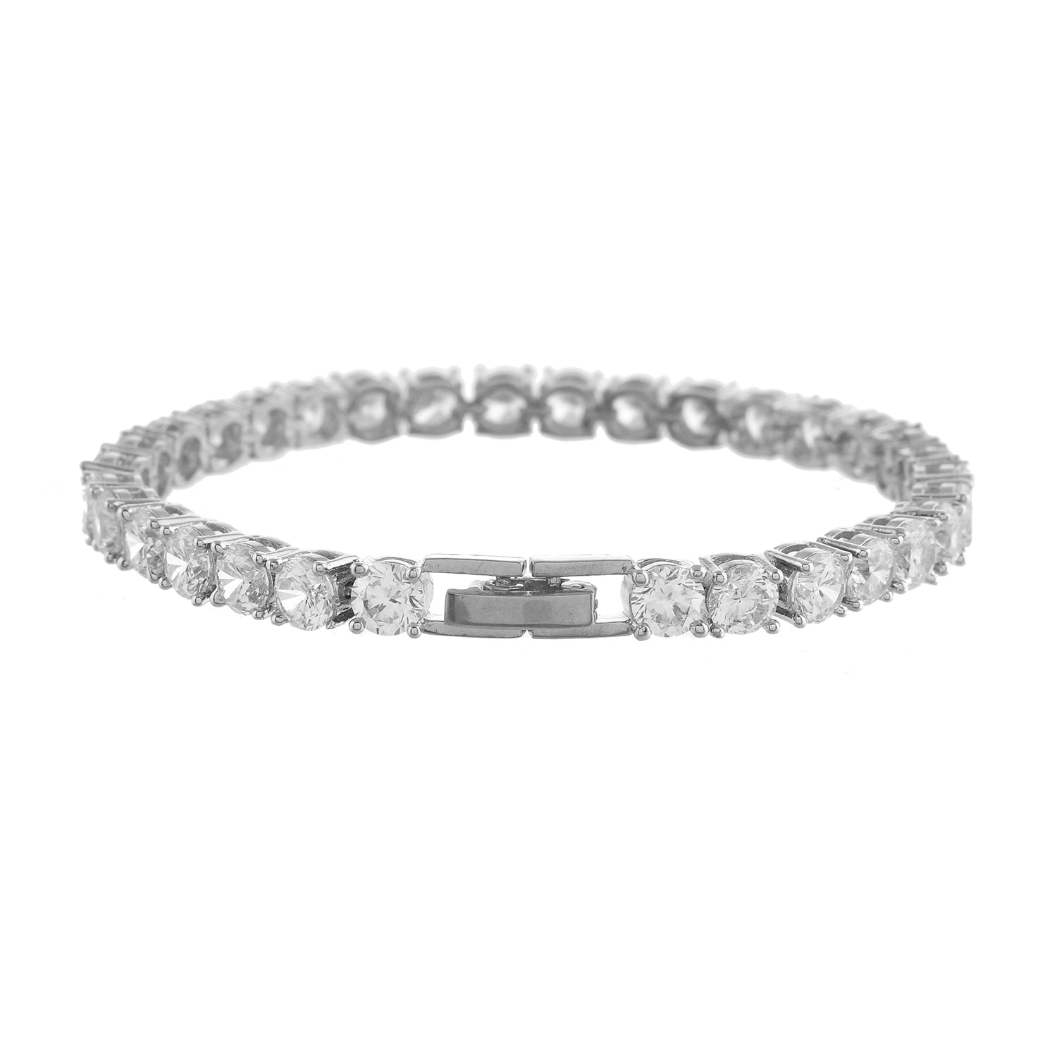 Drape your wrist in pure sophistication with our Sparkling Elegance White Rhodium Tennis Bracelet, designed for the modern woman who loves a mix of classic charm and contemporary chic. Crafted from high-quality brass and finished with a luxurious white rhodium plating, this bracelet is adorned with shimmering stones that exude a radiant sparkle, perfect for adding an elegant touch to any outfit. Whether you're dressing up for a party, a romantic date, or a formal office meeting, this statement bracelet seamlessly complements both Western and ethnic ensembles. Its versatile design makes it a must-have for everyday wear, vacations, and festive occasions like Diwali, Raksha Bandhan, Christmas, and New Year. This tennis bracelet is the ultimate gift for women, be it your sister, girlfriend, wife, mother, or best friend—a perfect choice for Valentine’s Day, anniversaries, and birthdays. Elevate your jewelry collection with this chic and sophisticated piece, ensuring you shine with effortless grace wherever you go.