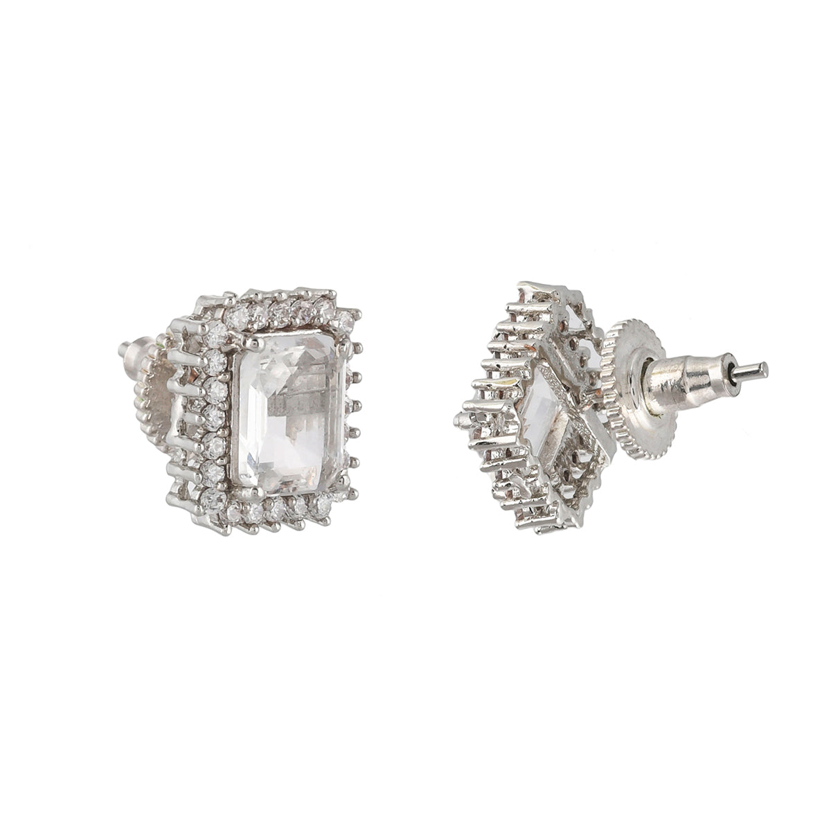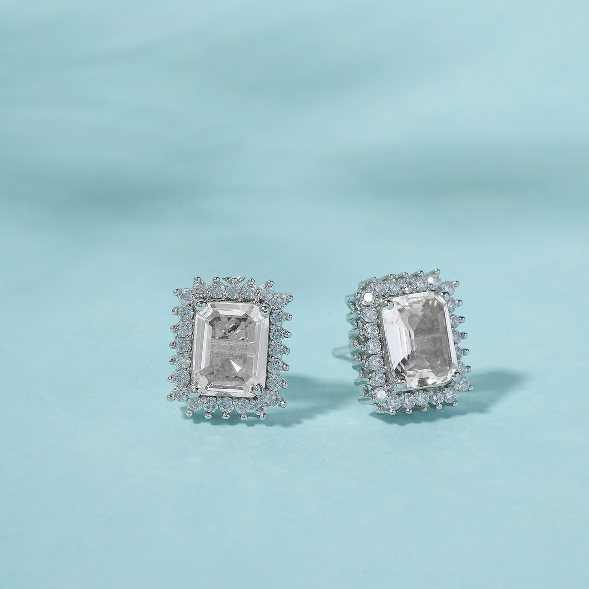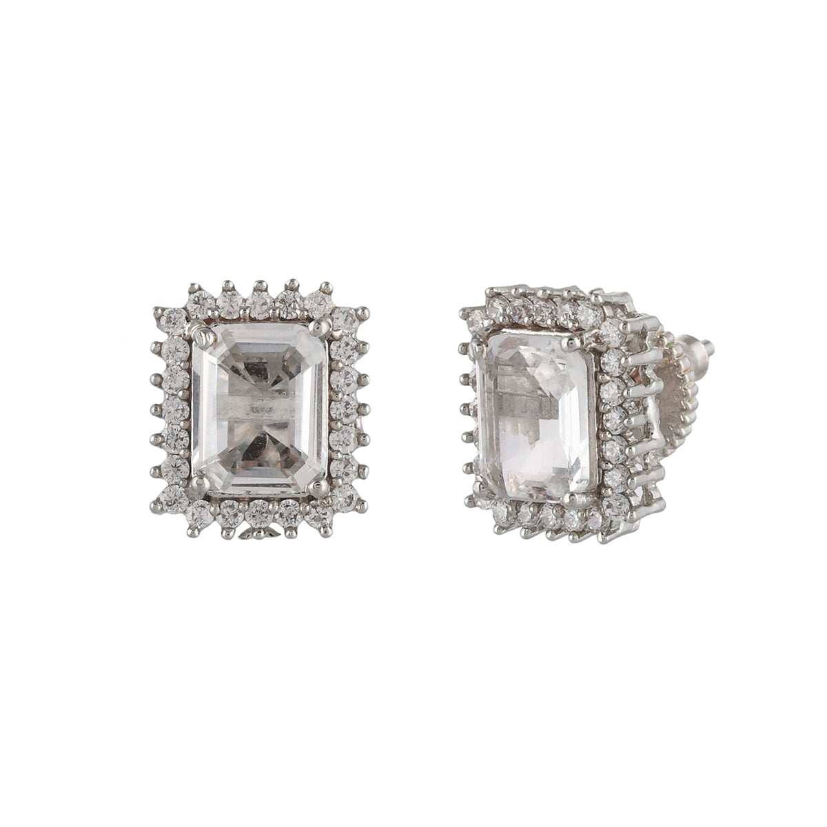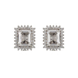 Sparkling Elegance Victorian Inspired Brass Emerald Cut Zircons Silver Plated Earrings
