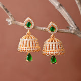 Sparkling Elegance White And Green Cz Jhumka Drop Earrings