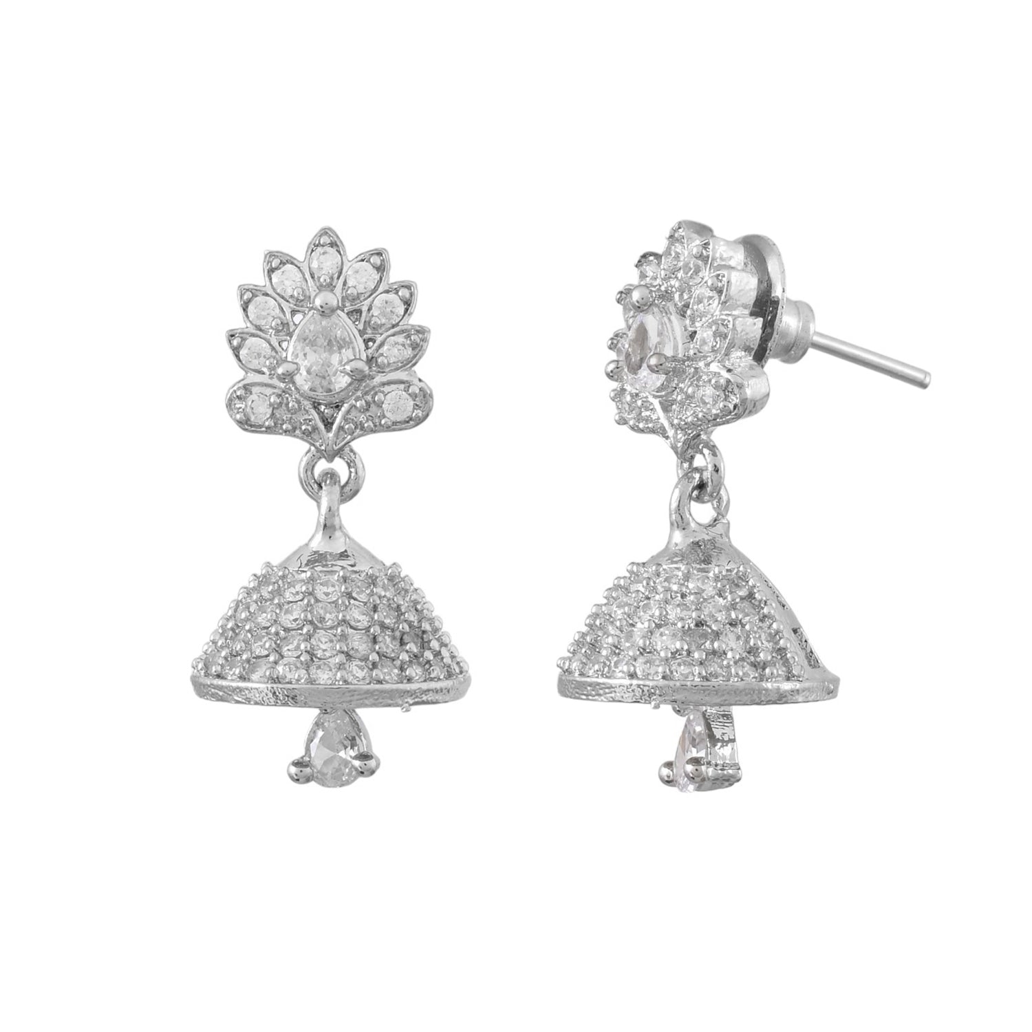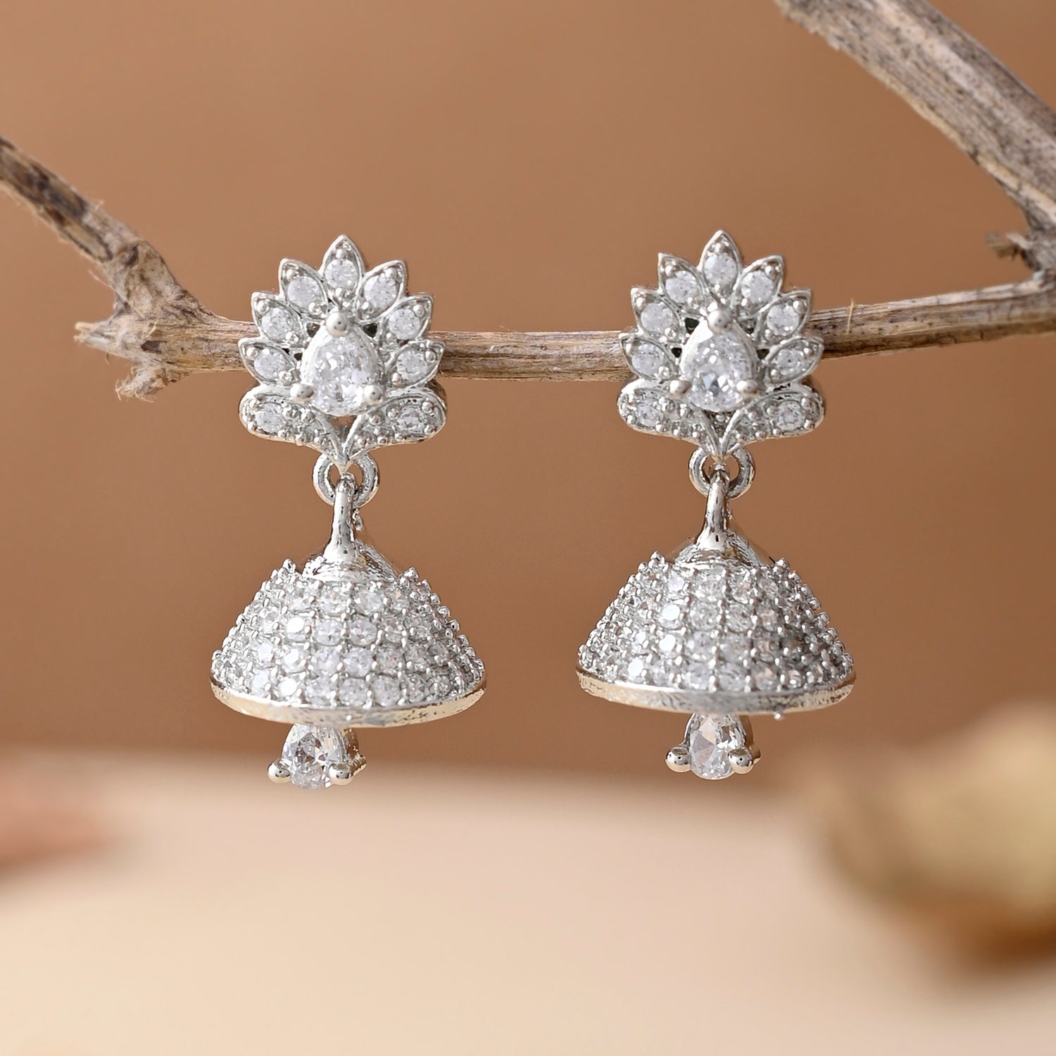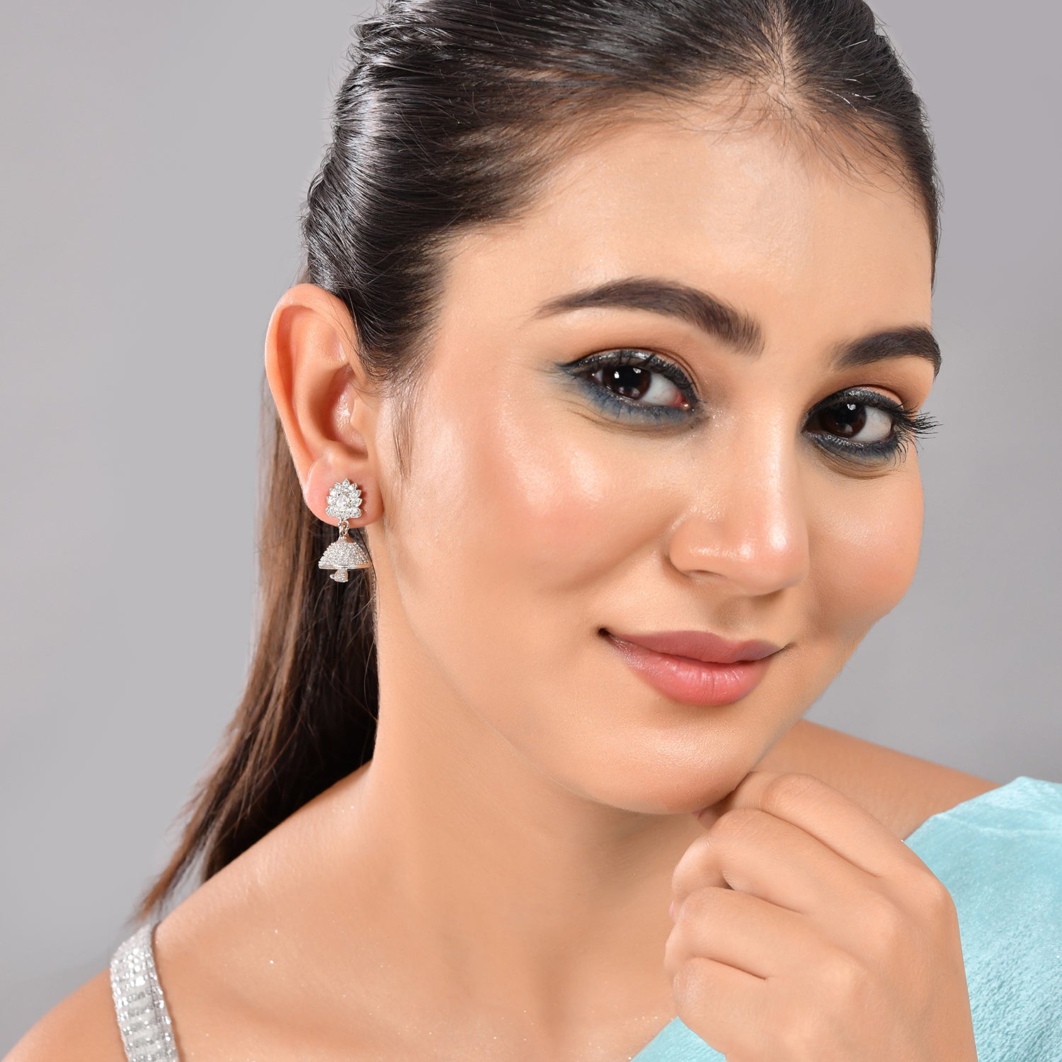 Sparkly drop earrings, perfect for casual wear. Made from brass and silver plated, the pair has been embellished with white CZ gemstones. Versatile and comfortable.
