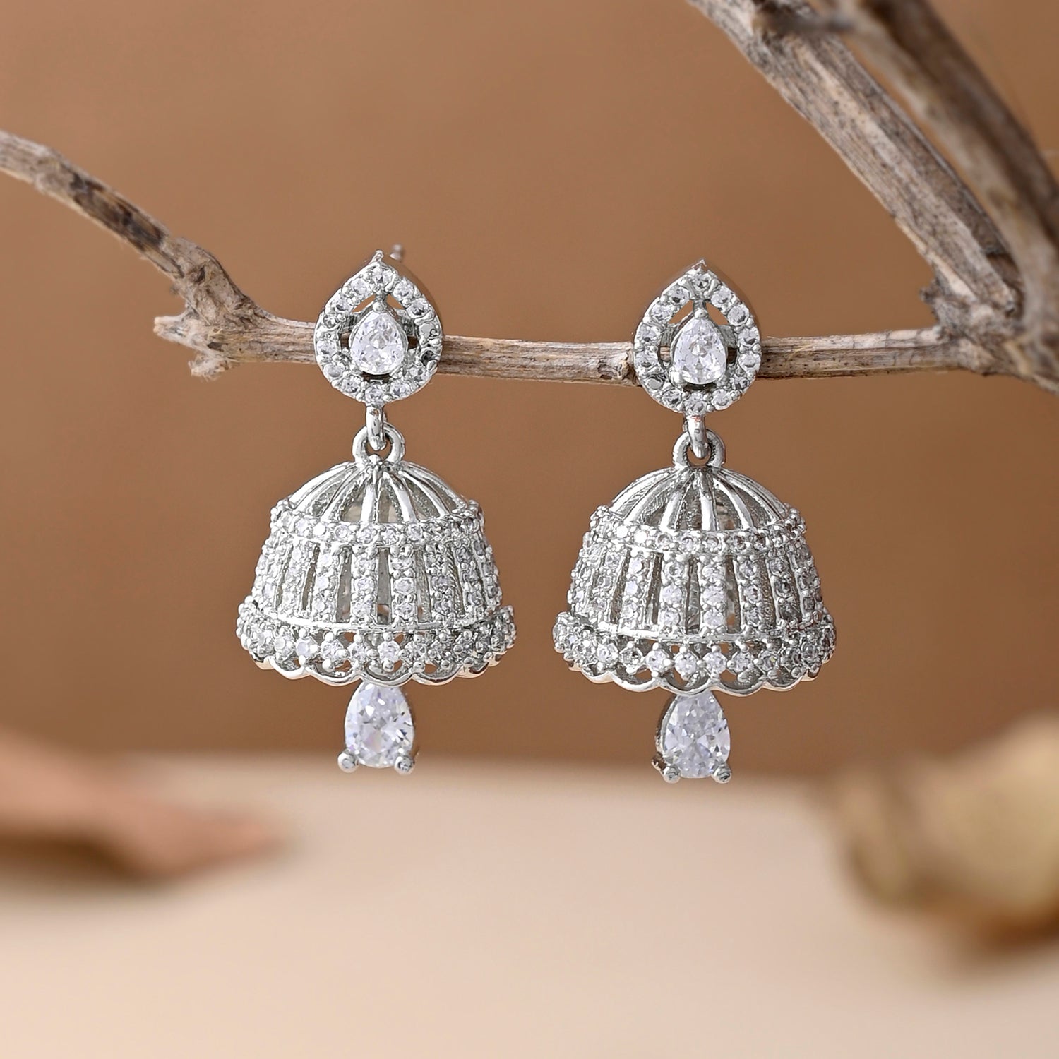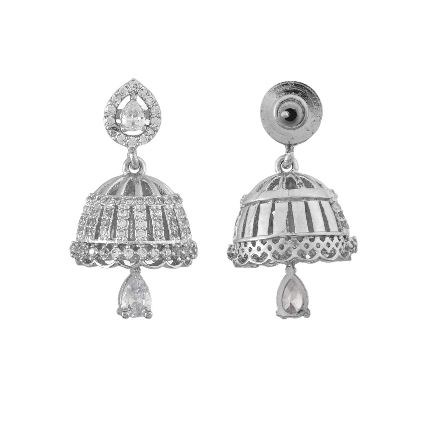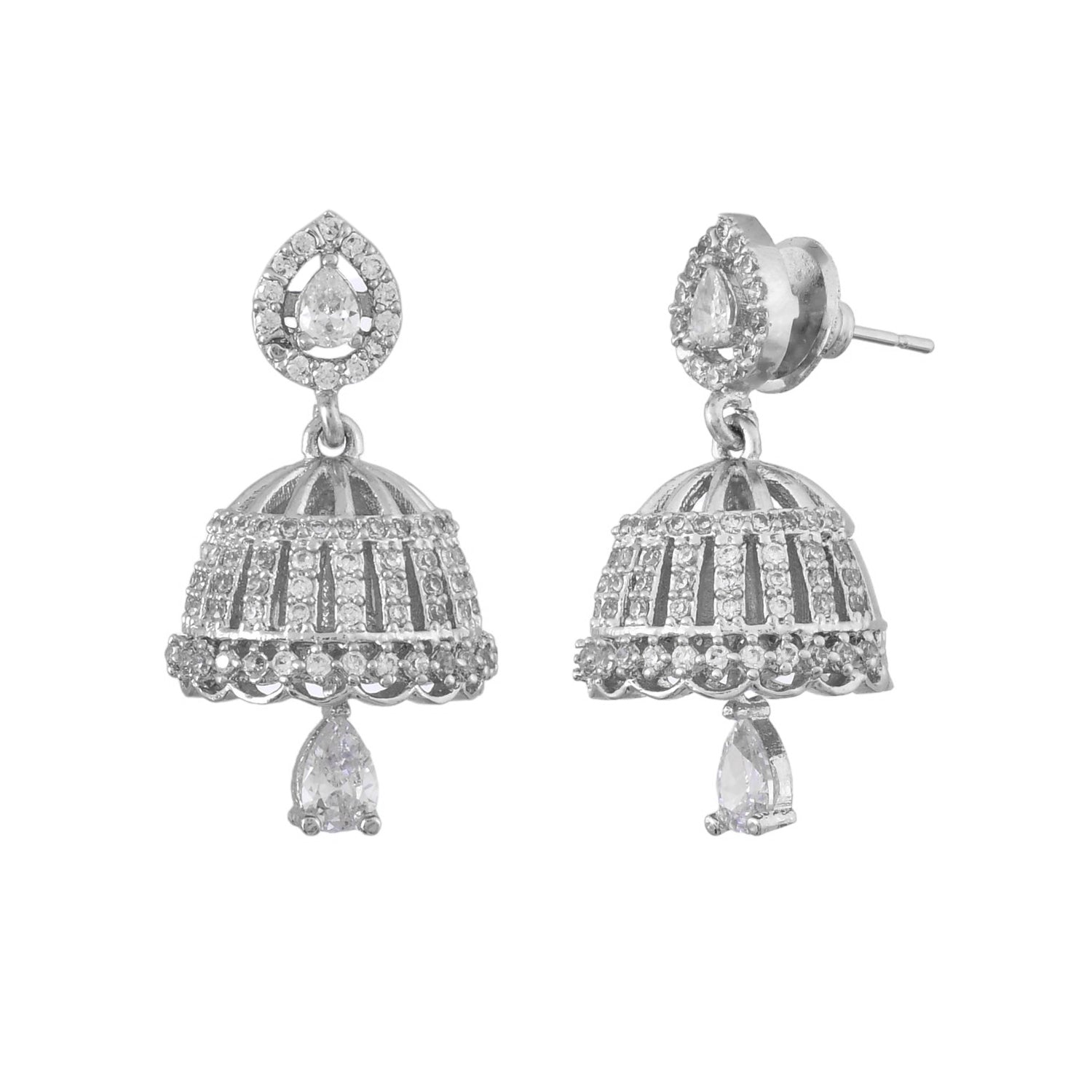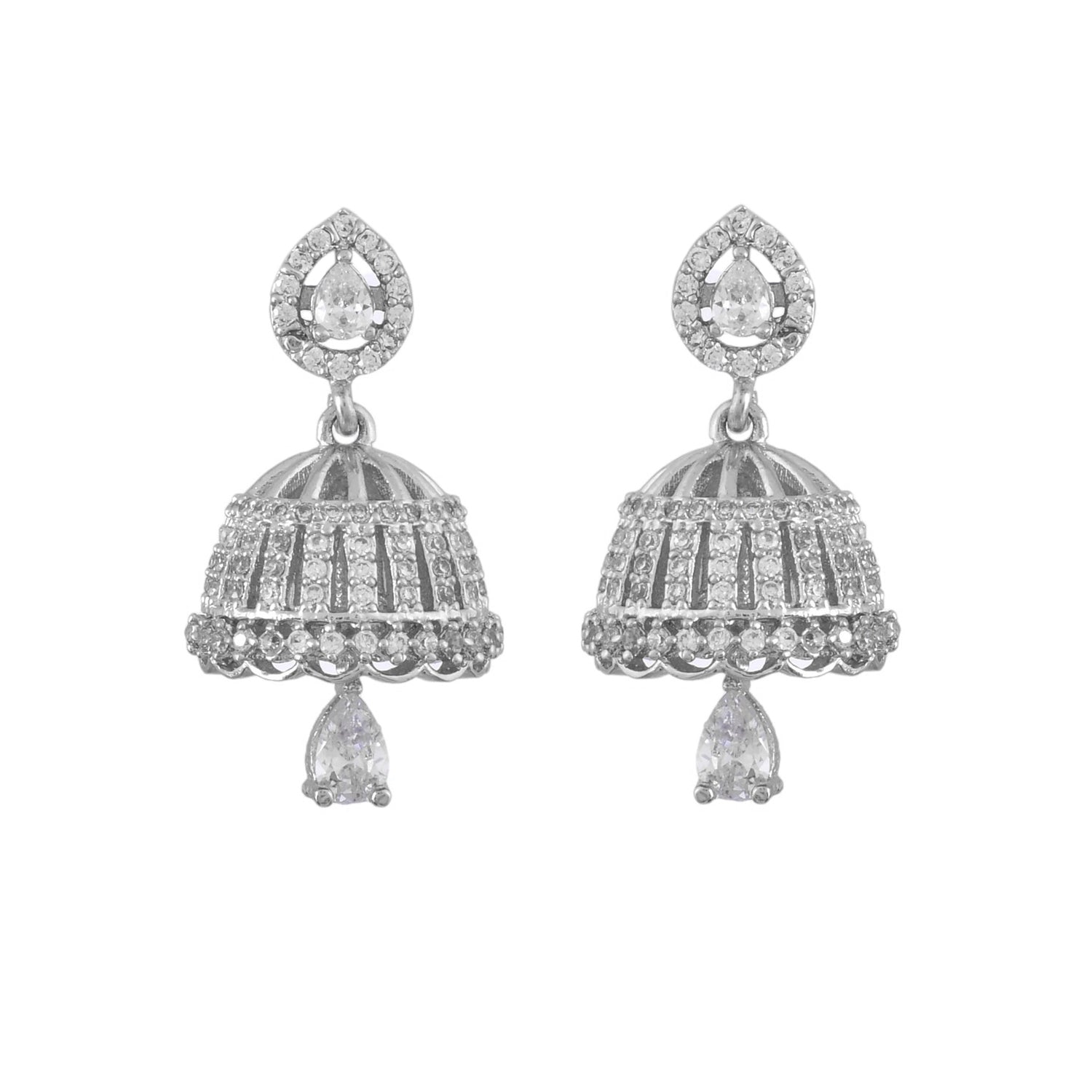 Sparkling Elegance White Cz Jhumka Drop Earrings