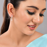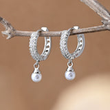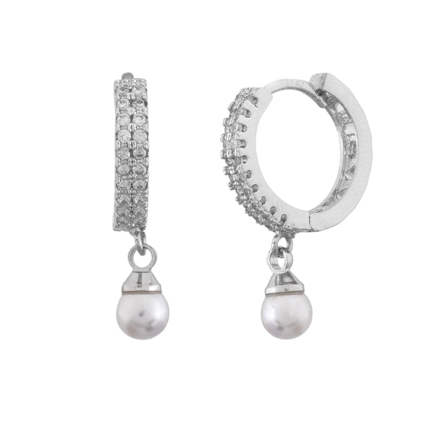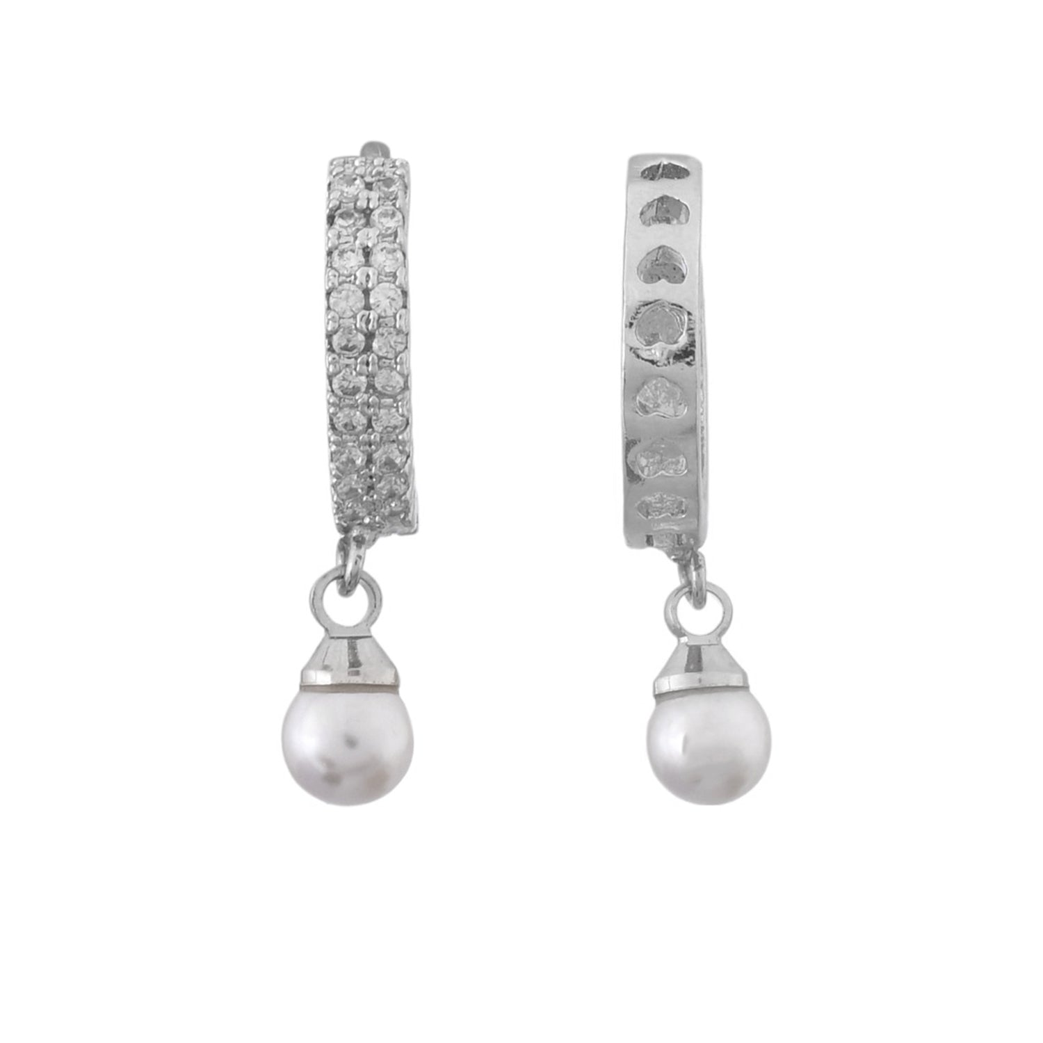 White pearls and zirconia gemstones adorned casual half-hoop earrings. Made from brass and silver plated. Pair with any of your favourite outfits.