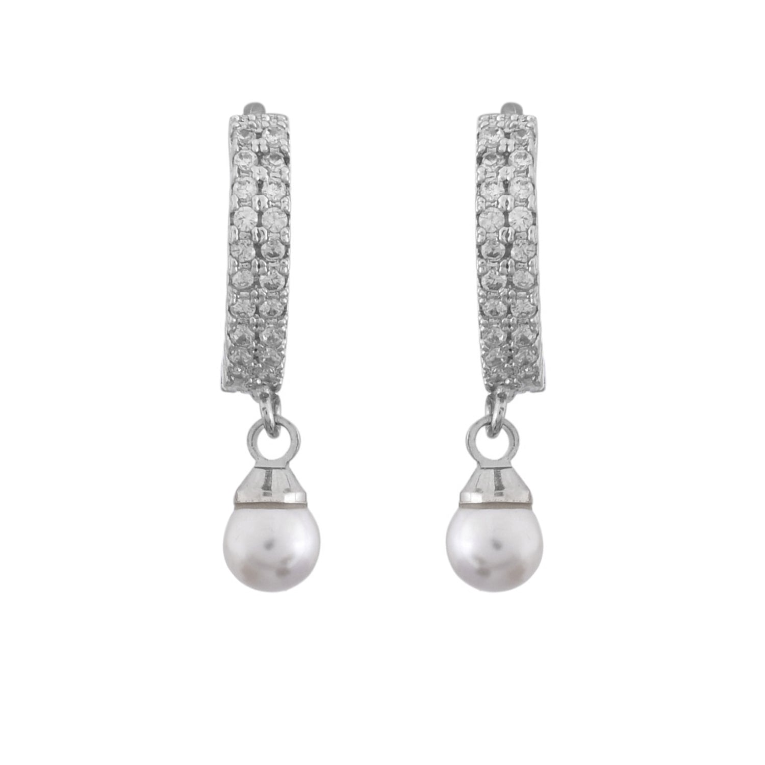Sparkling Elegance White Pearls And Cz Casual Earrings