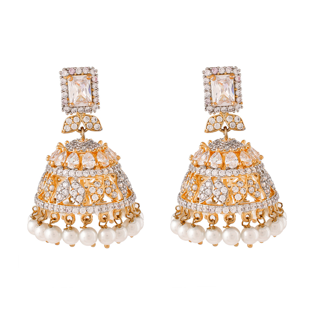 Sparkling Elegance Zirconia Two Tone Plated Jhumki Earrings