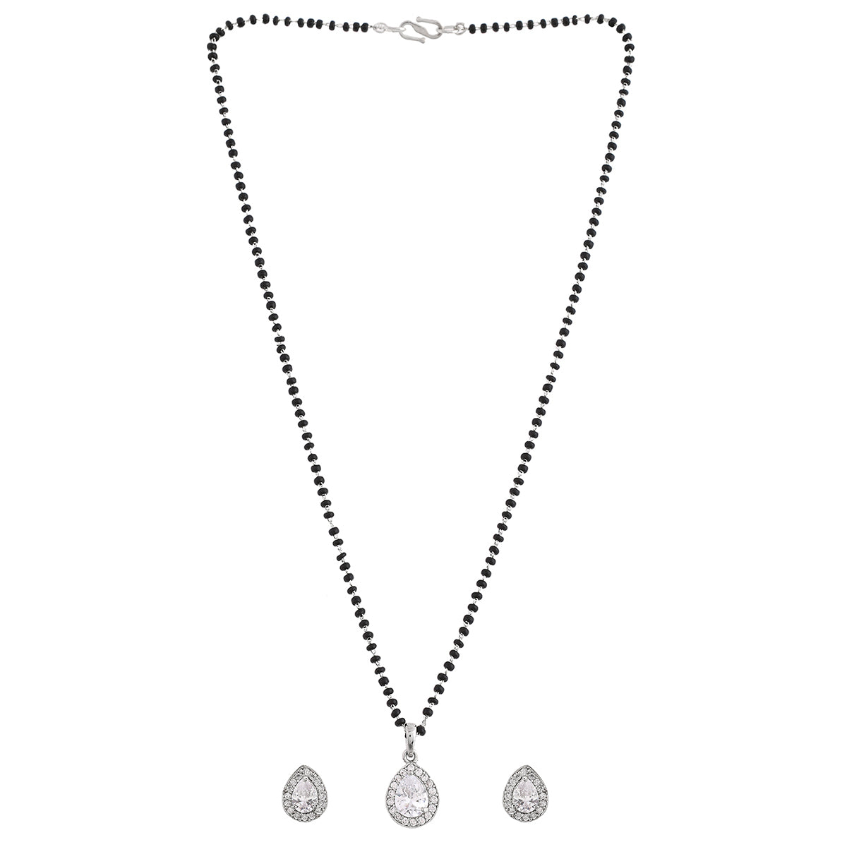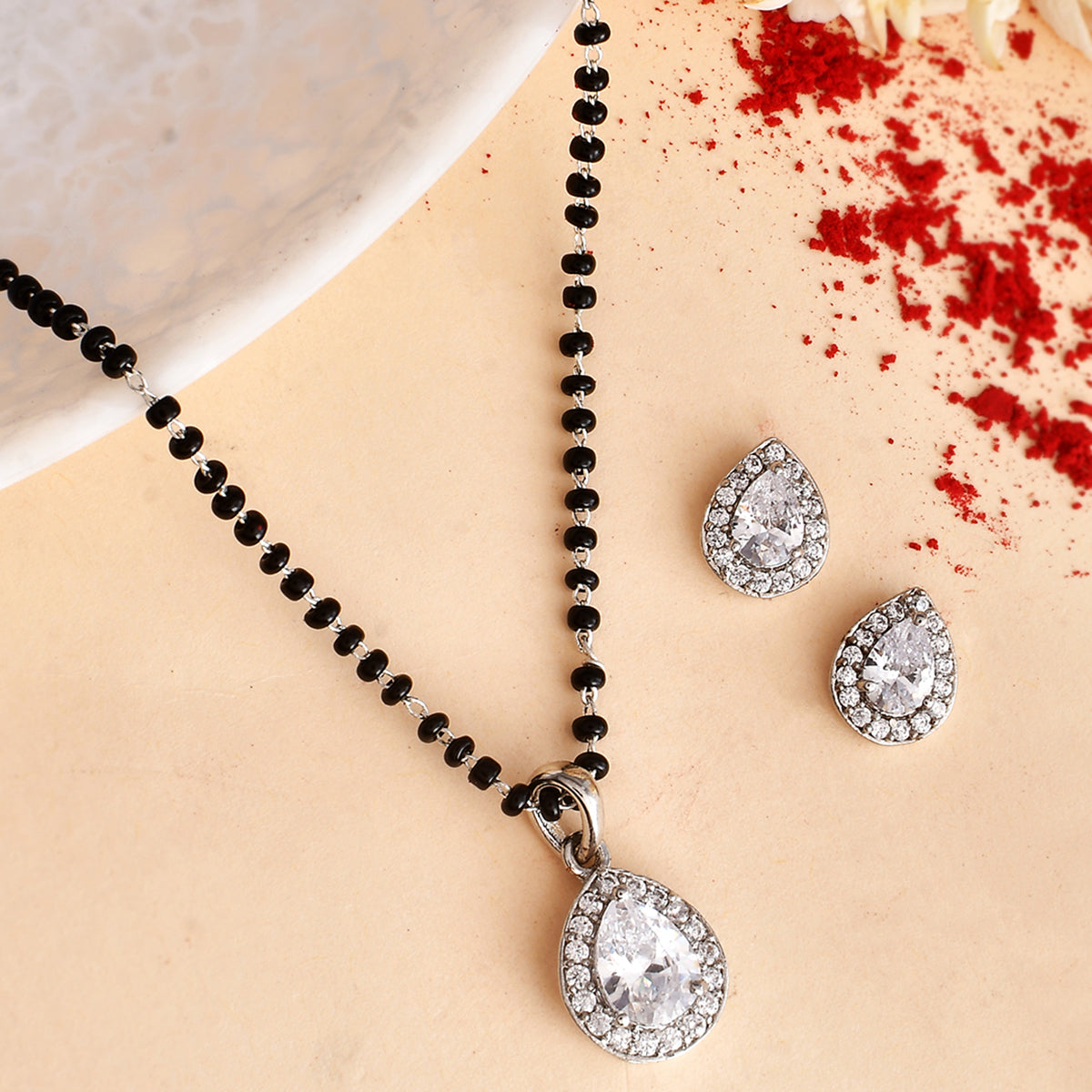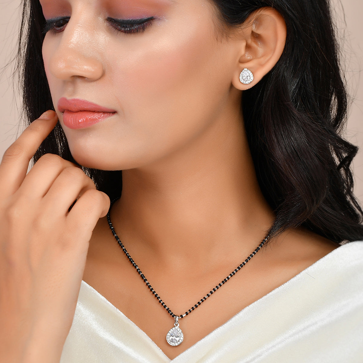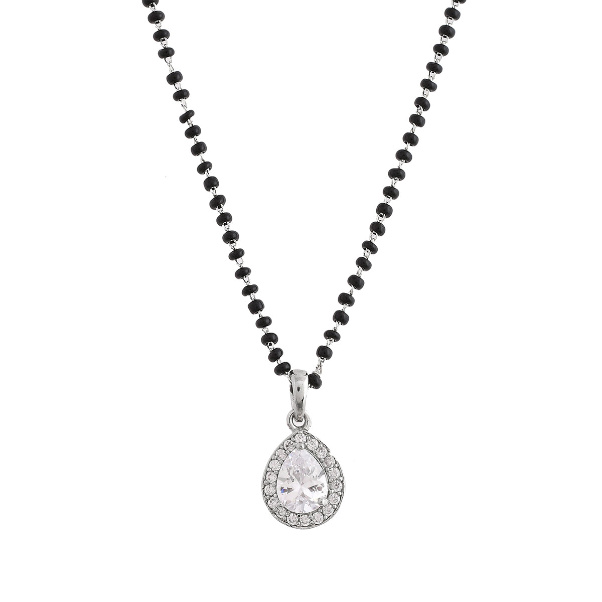 Sparkling Essential White Teardrop Shaped Silver Managalsutra Set