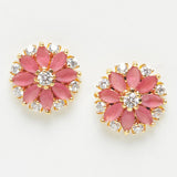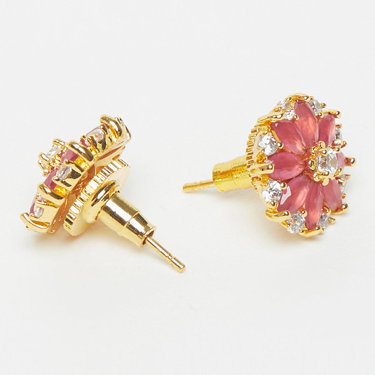 Floral earrings made from brass and gems embellished. Wear the yellow gold plated stud earrings with an ethnic outfit.